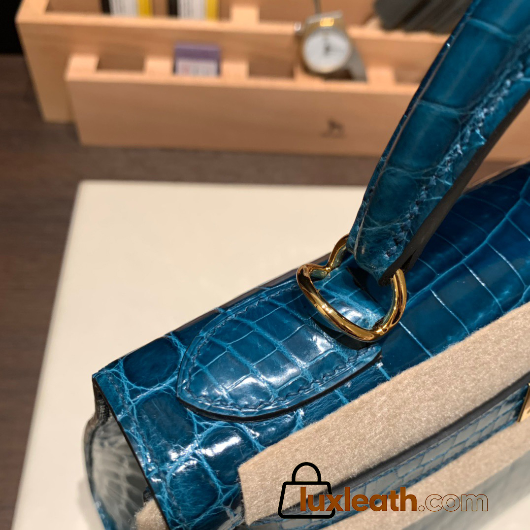 Hermes Kelly 28CM Crocodile Niloticus W0 /Vert Bosphore GoldHardware    FullHandmade 010