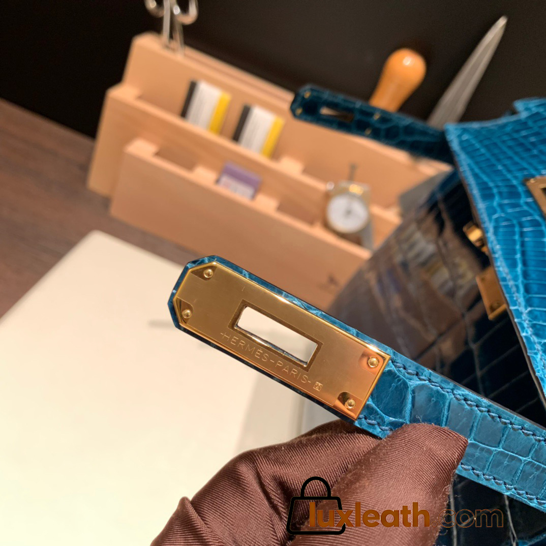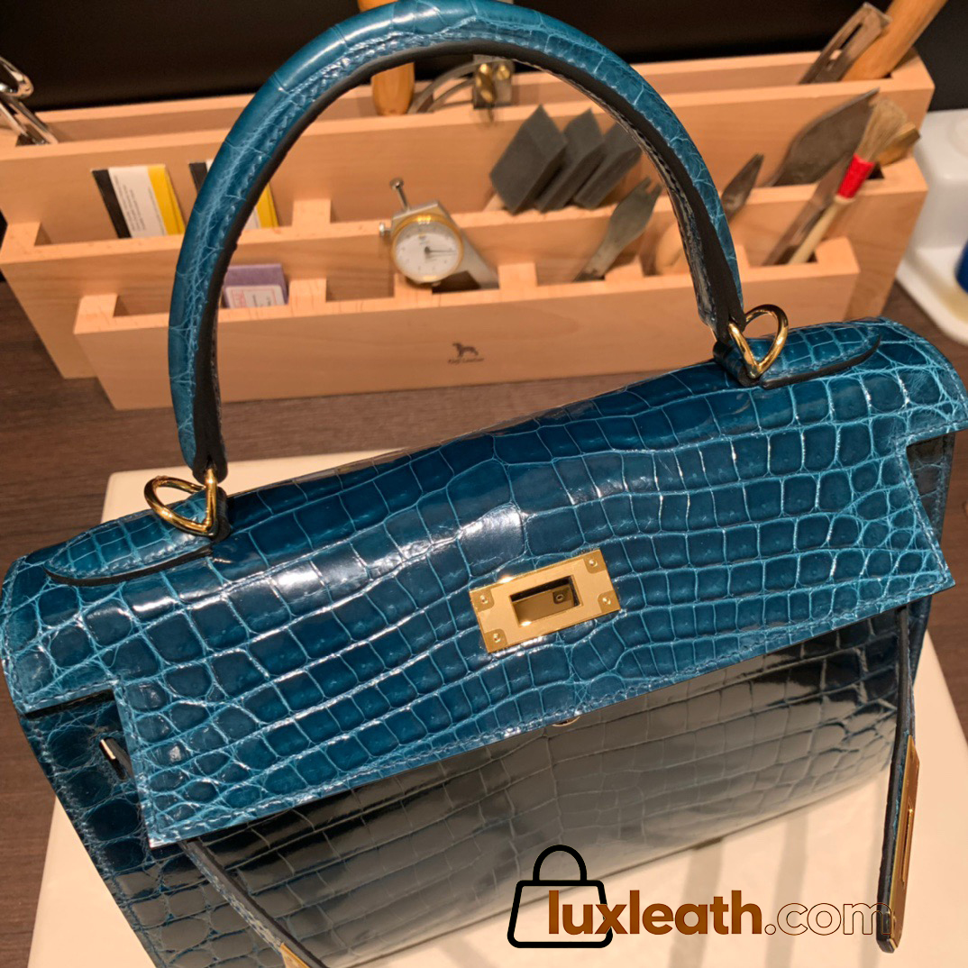 Hermes Kelly 28CM Crocodile Niloticus W0 /Vert Bosphore GoldHardware FullHandmade