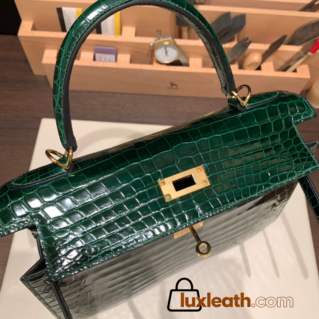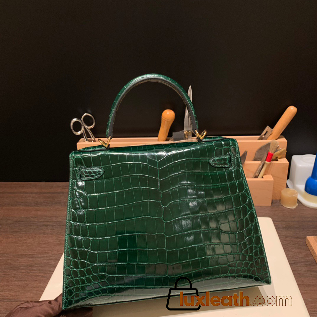 Hermes Kelly 28CM Crocodile Niloticus W0 /Vert Bosphore GoldHardware FullHandmade