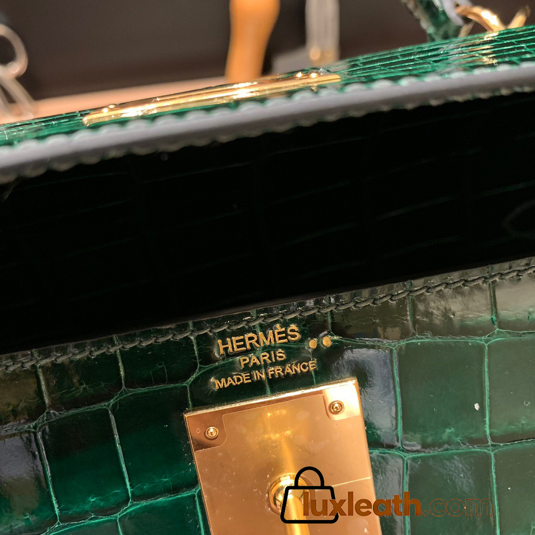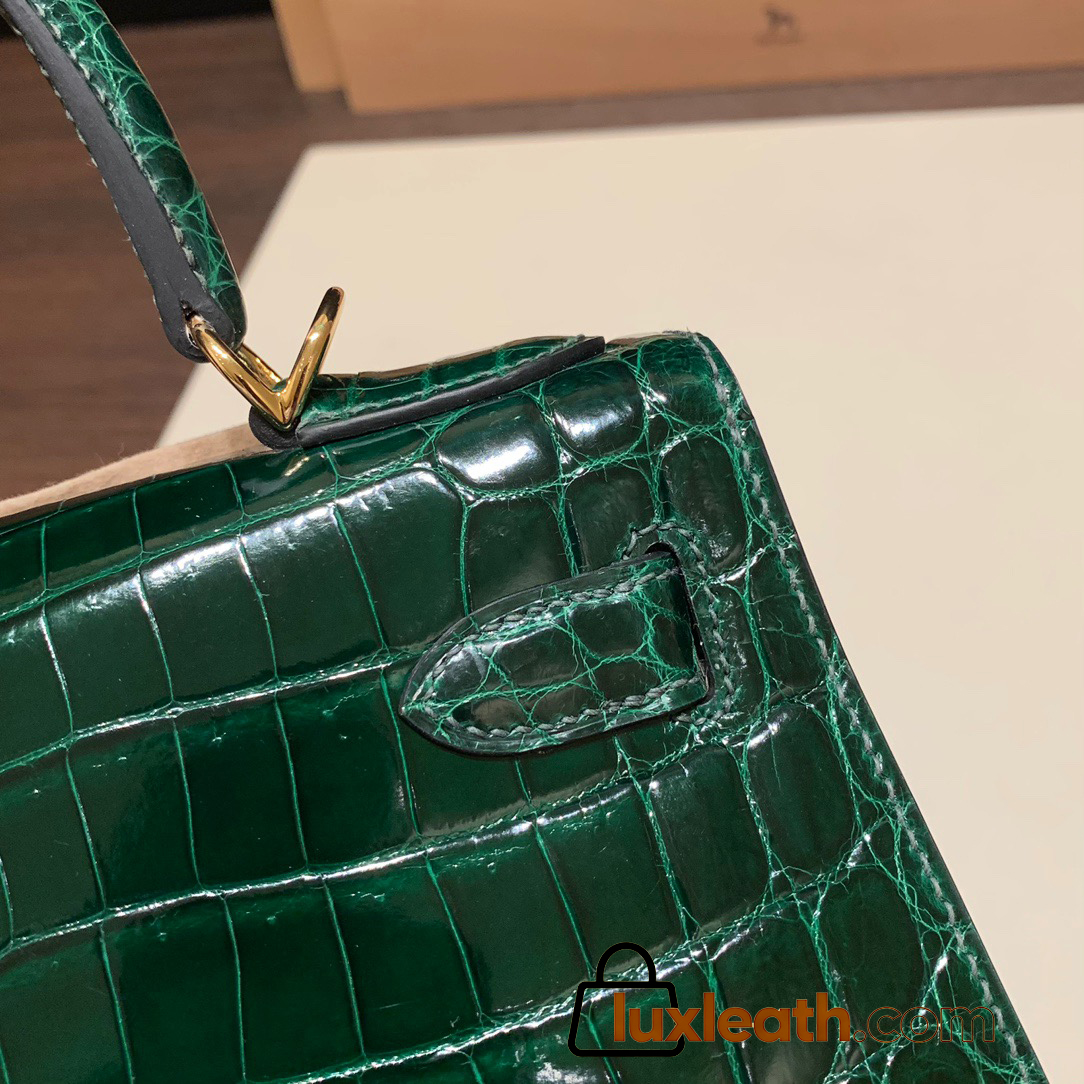 Hermes Kelly 28CM Crocodile Niloticus W0 /Vert Bosphore GoldHardware    FullHandmade 011