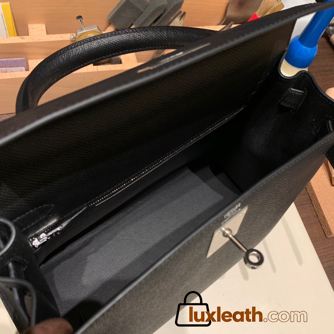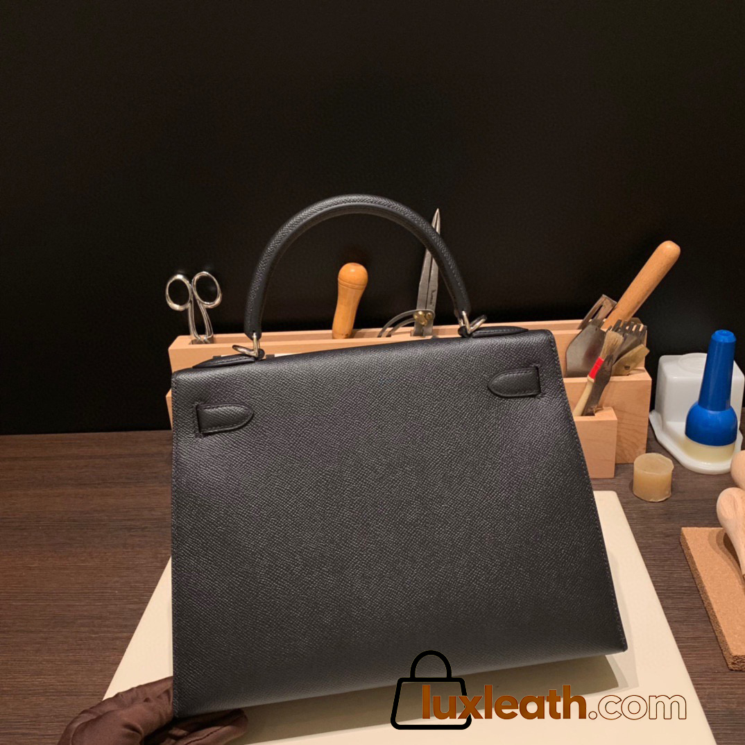Hermes Kelly 28CM Epsom 89 /Black (Noir) SilverHardware  FullHandmade 026