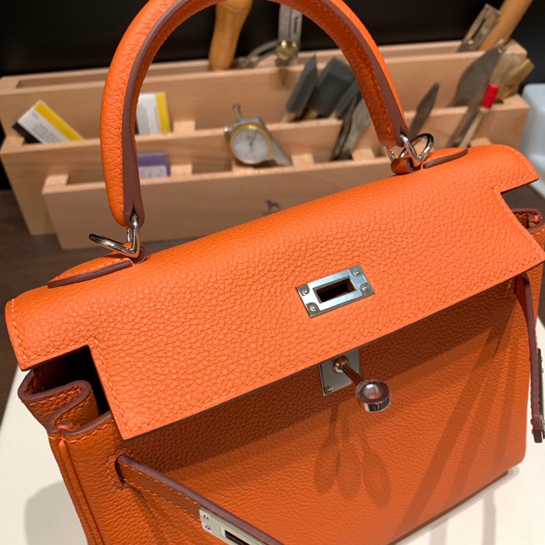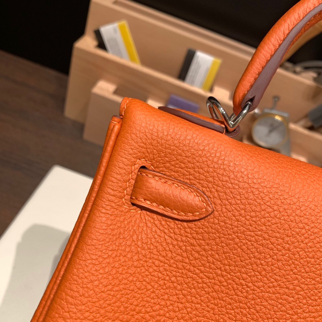 25cmTogo kelly 25cm togo 93 /Orange Silver Hardware Full Handmade