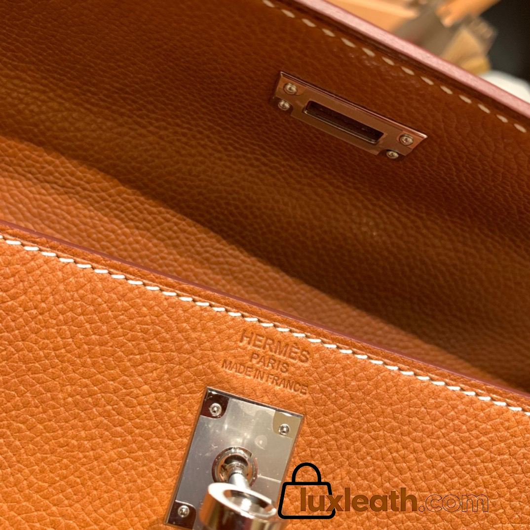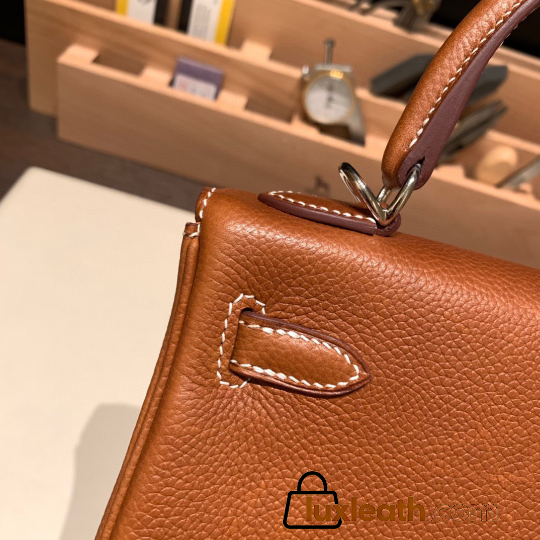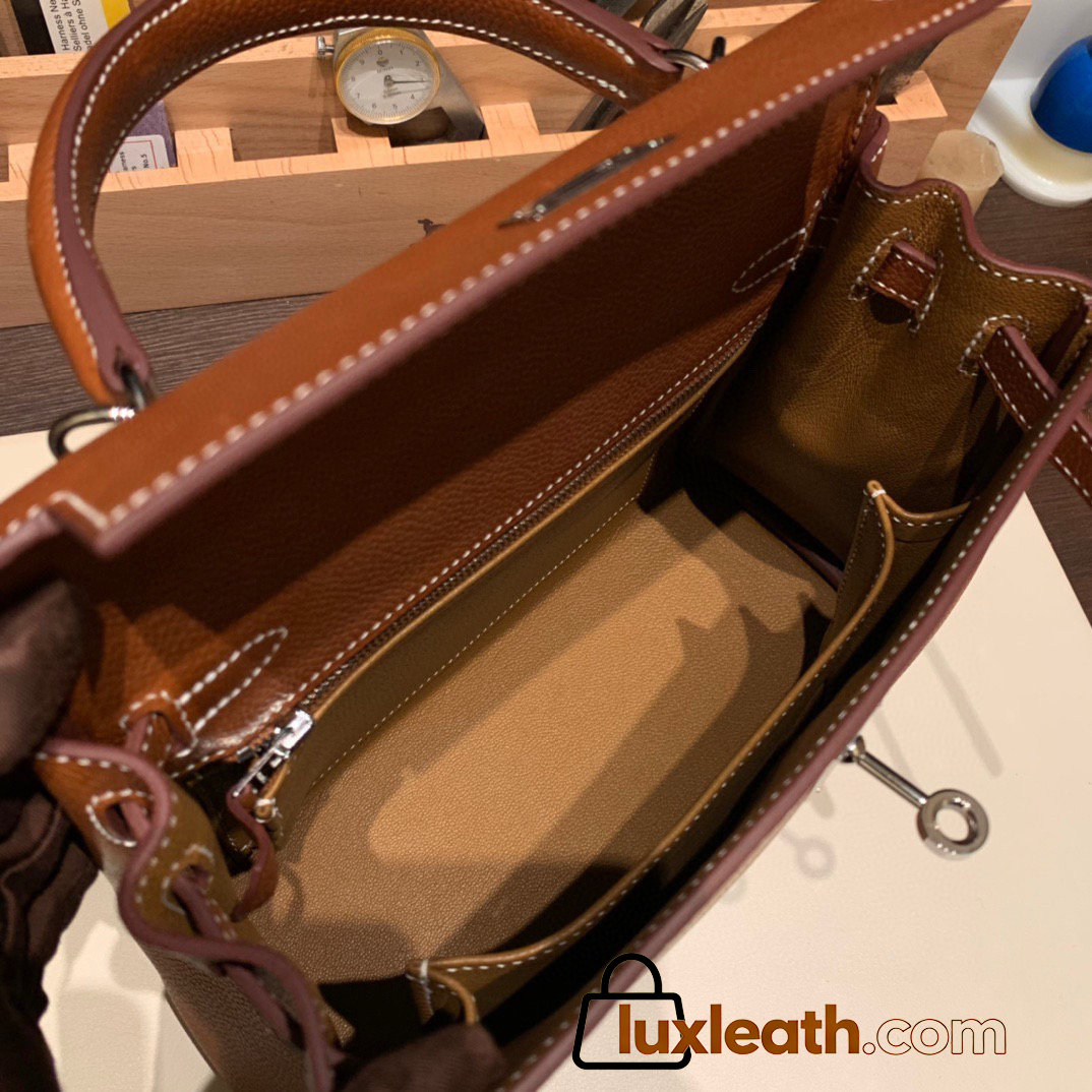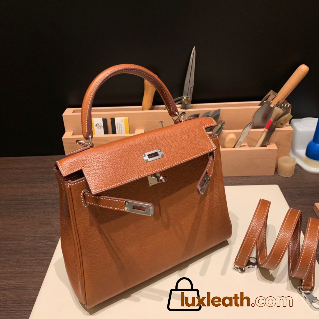 Hermes Kelly 25cm Barenia 34 /Fauve Silver Hardware Full Handmade 015