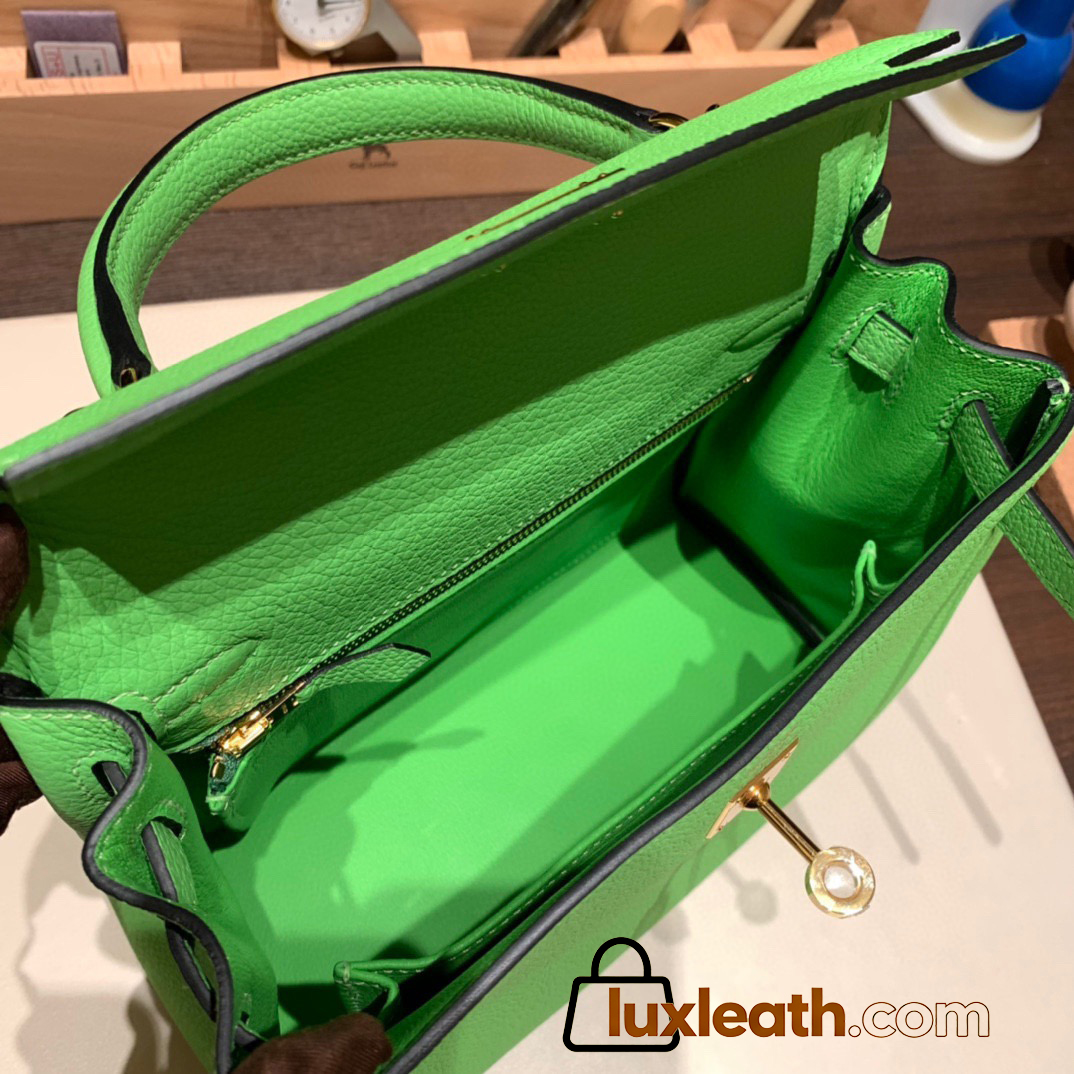 Hermes Kelly 25cm togo 6R/ Kiwi Gold Hardware Full Handmade 035