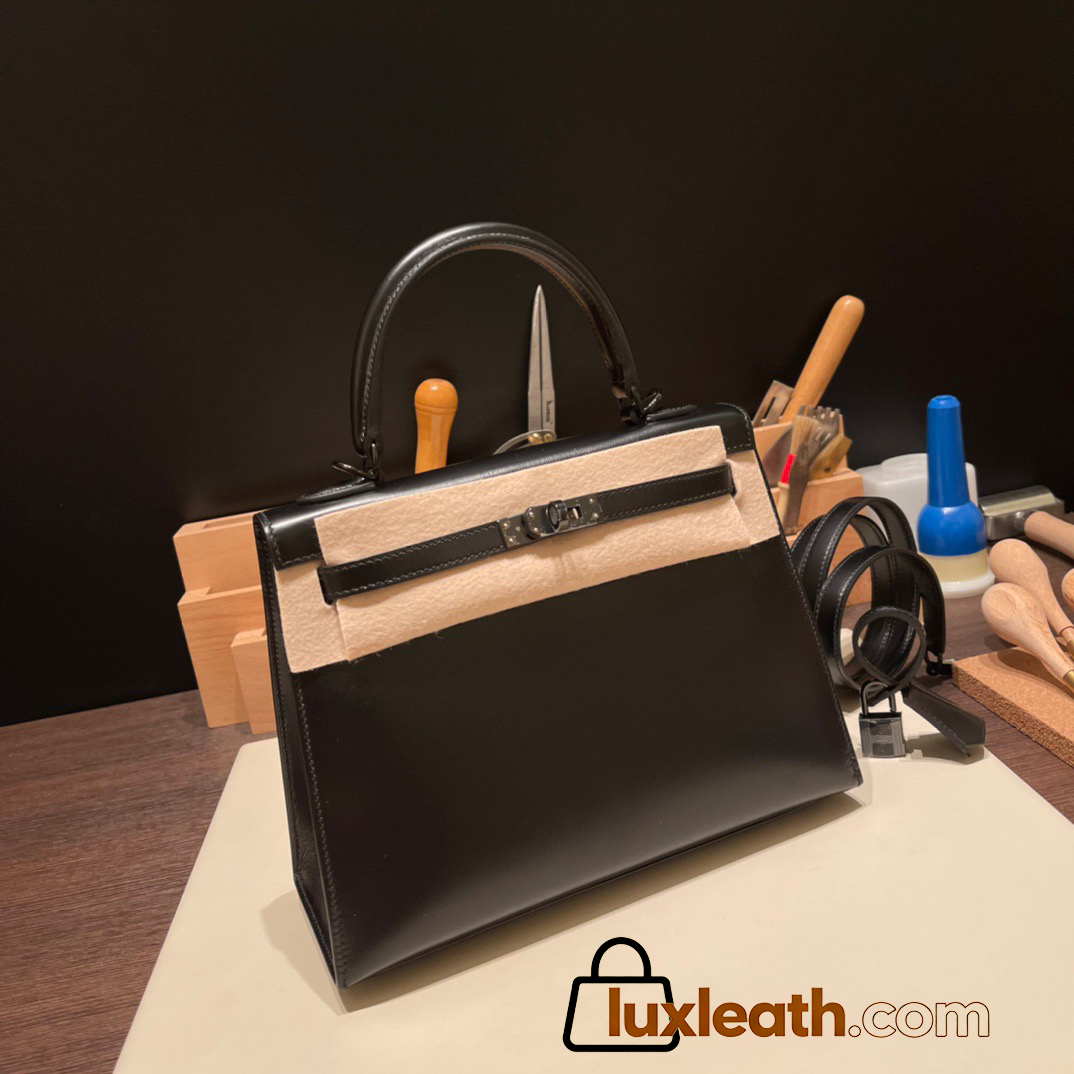 Hermes Kelly 25cm sellier box 89 /Black (Noir) Gold Hardware Full Handmade 043