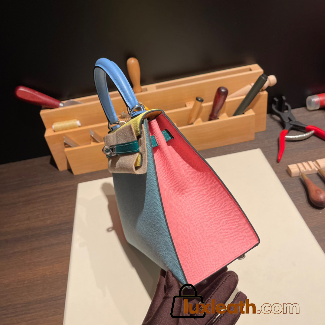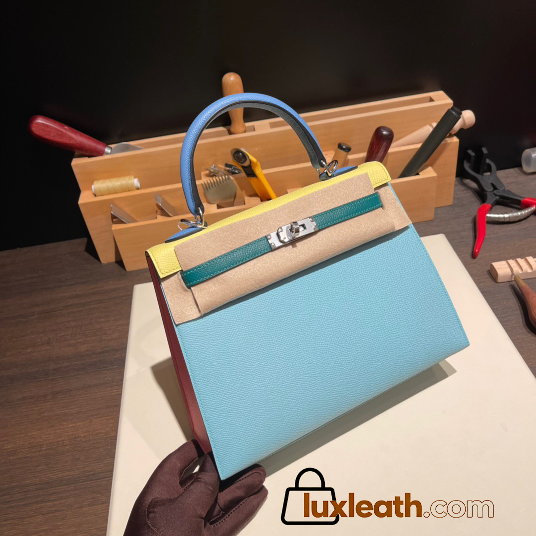 Hermes Kelly 25cm sellier Epsom Silver Hardware Full Handmade 051