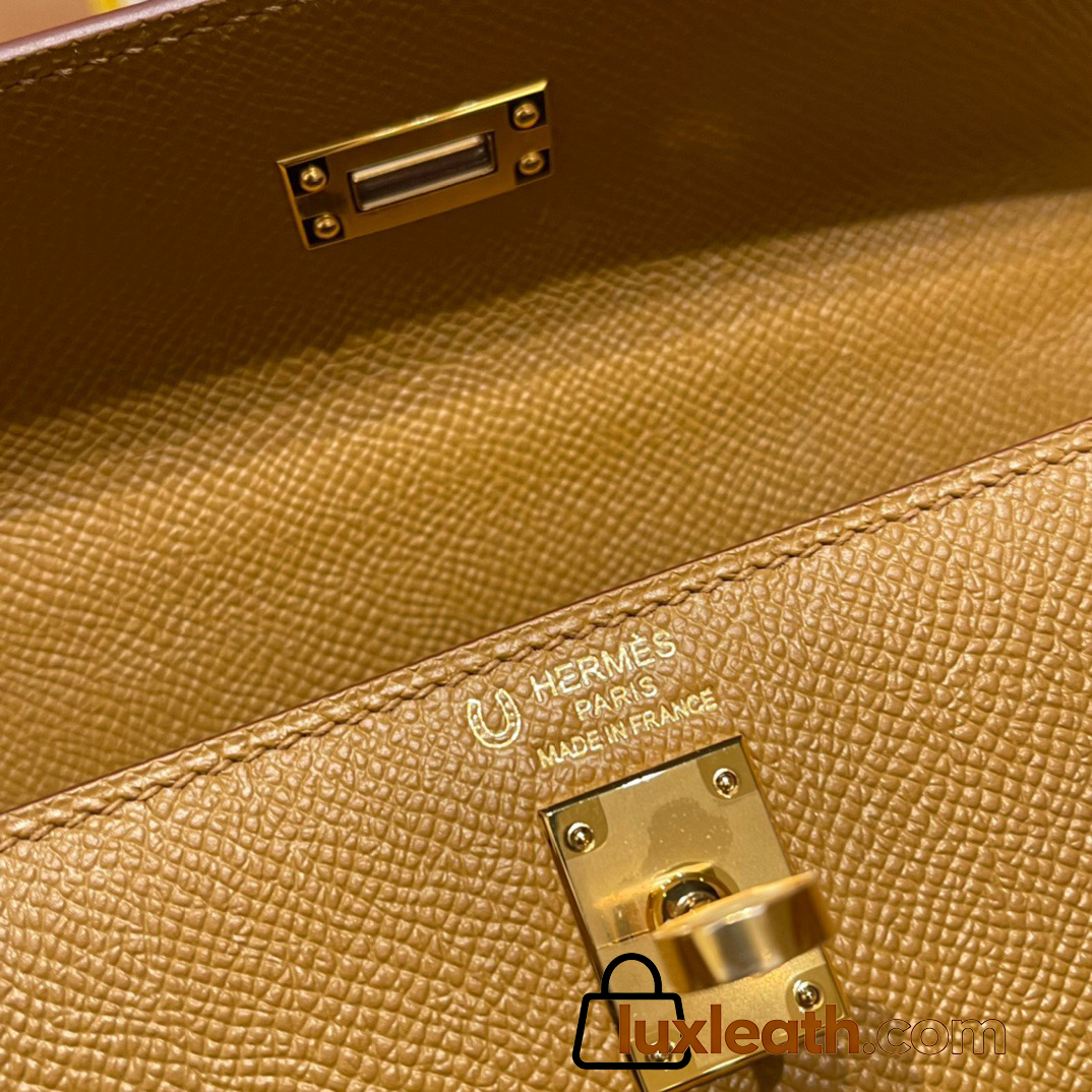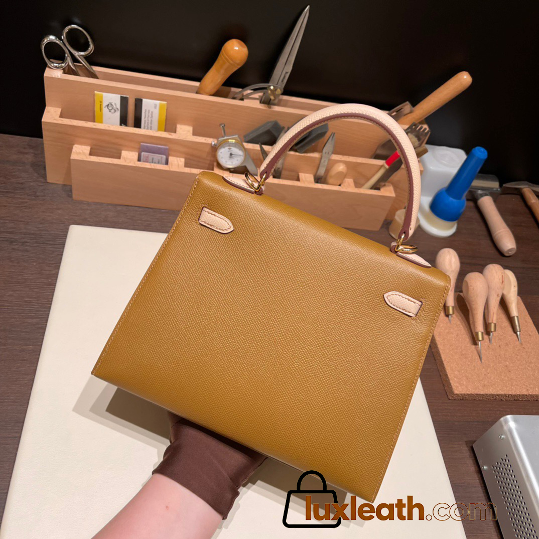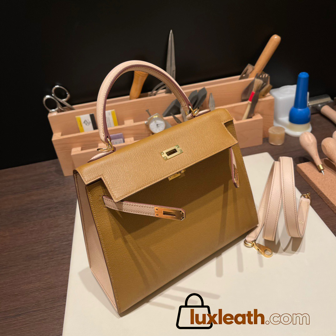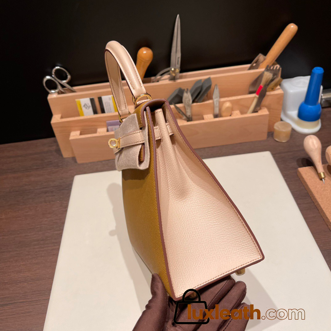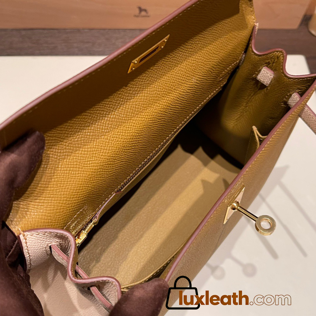 Hermes Kelly 25cm sellier Epsom touch U8 /Bronze Dore & P1 /Rose Eglantine Gold Hardware Full Handmade 053
