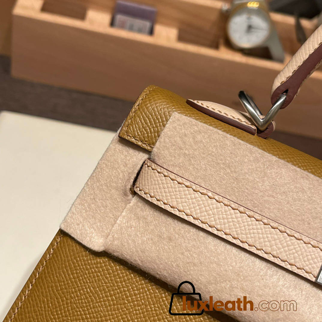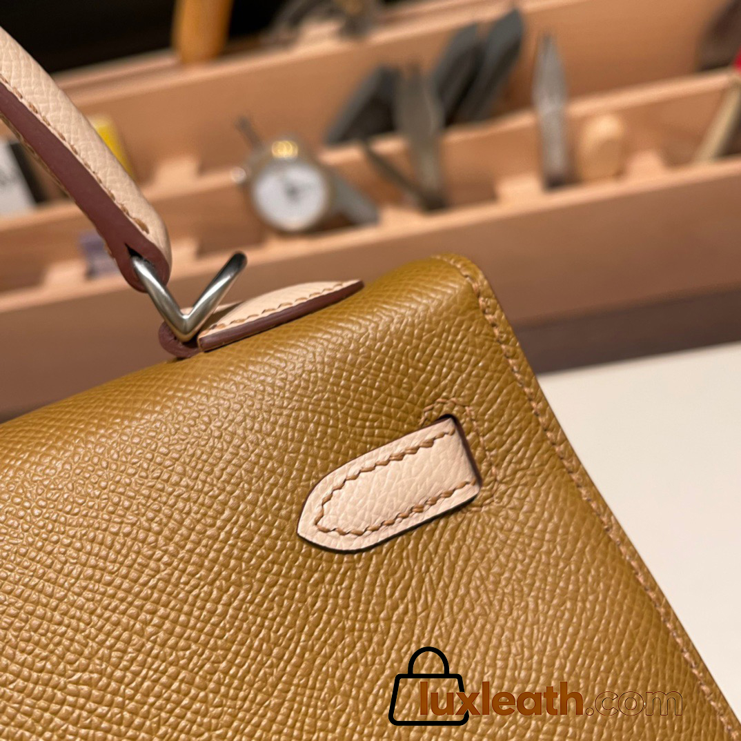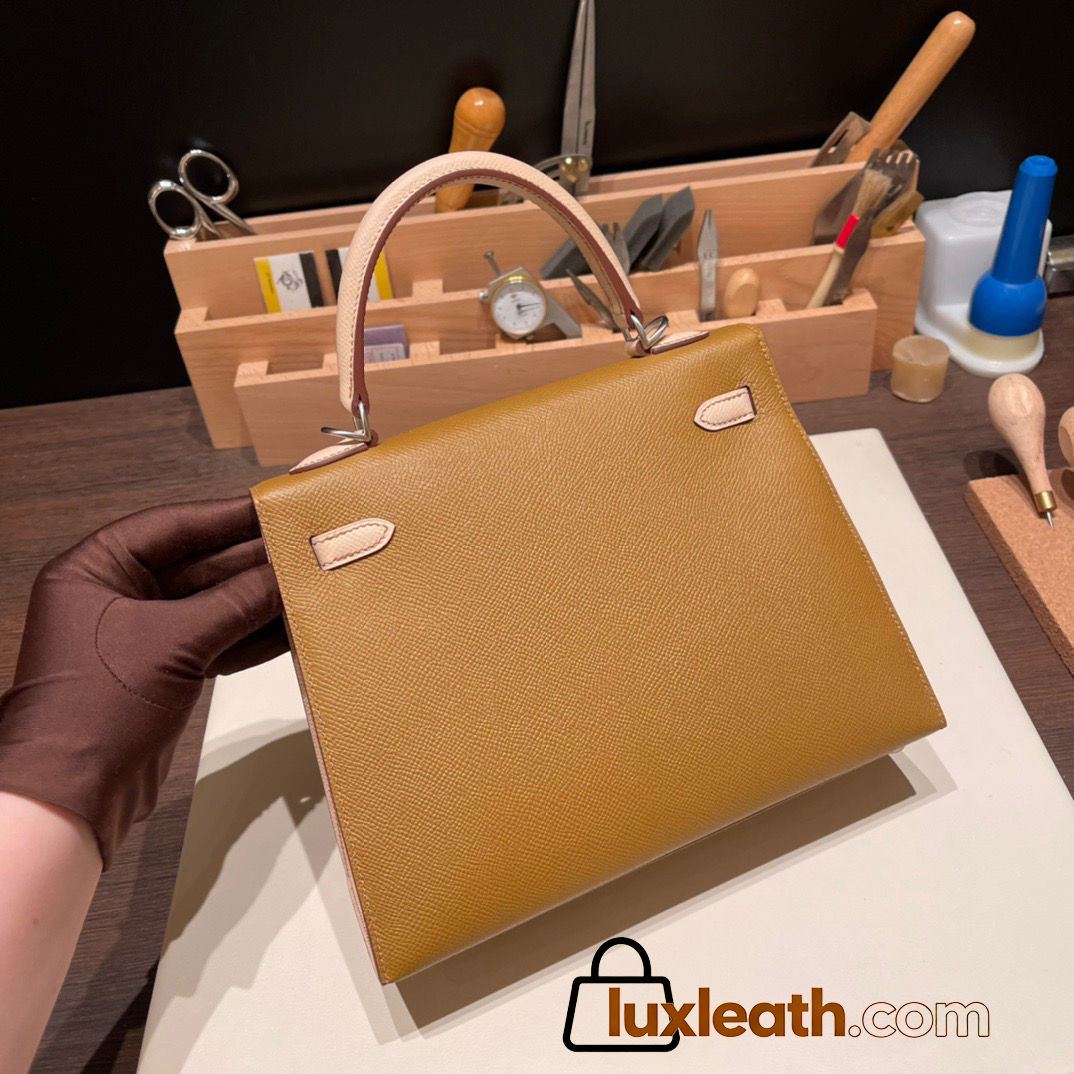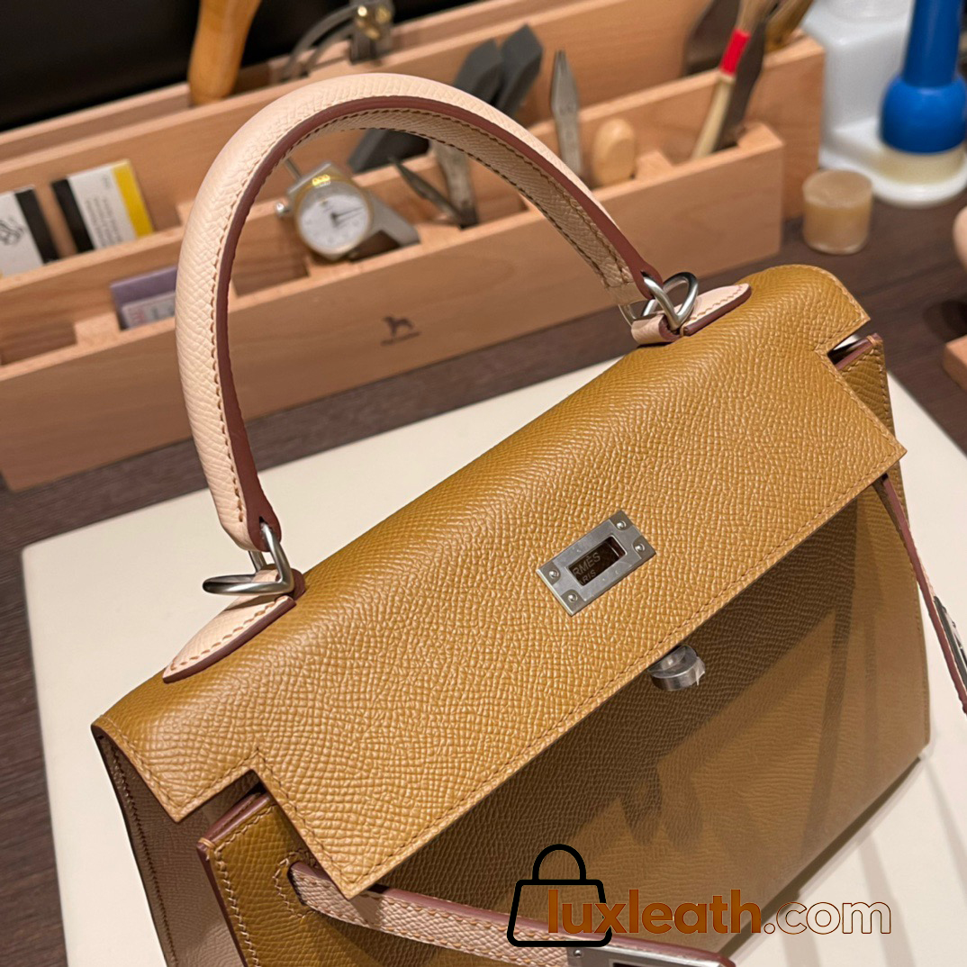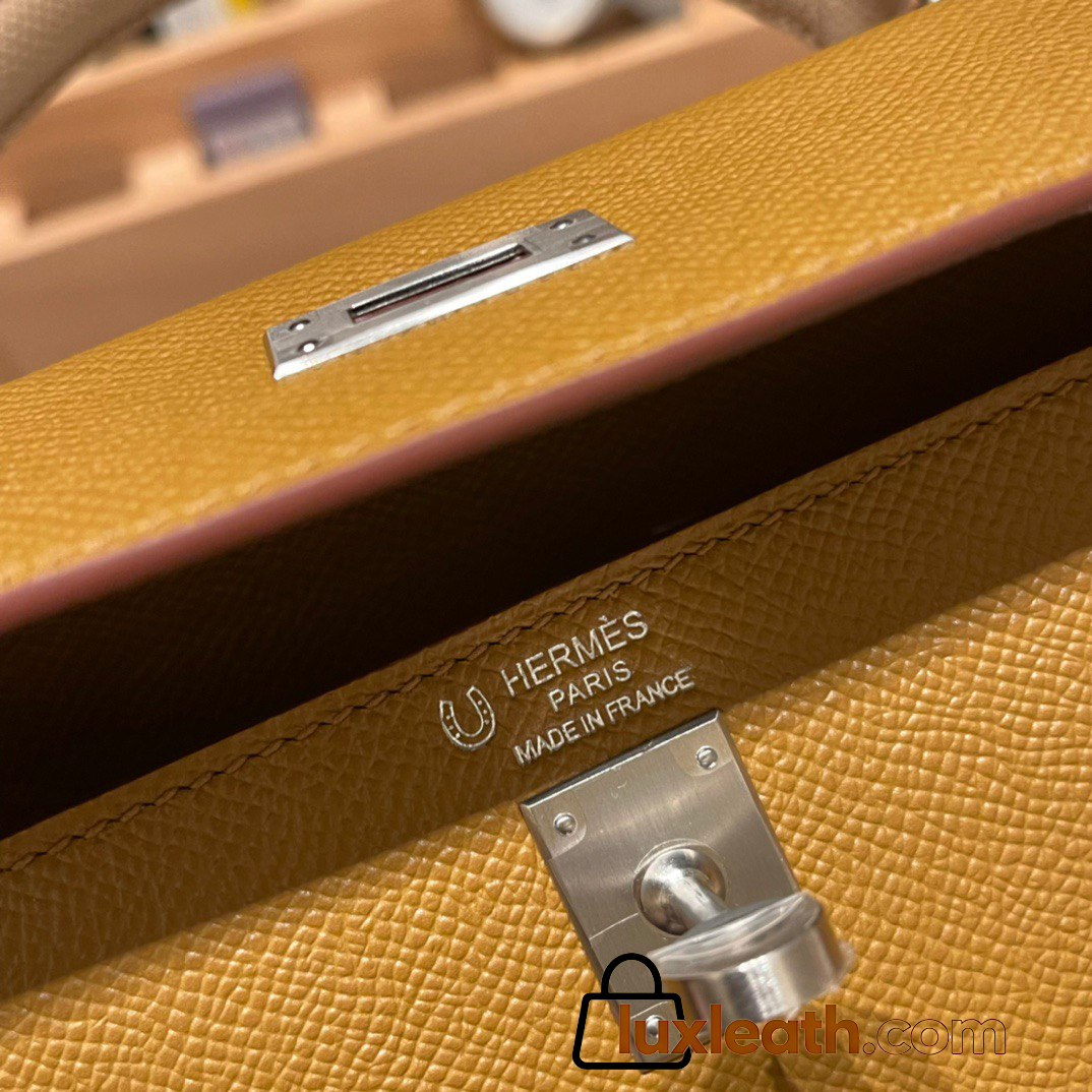Hermes Kelly 25cm sellier Epsom touch U8 /Bronze Dore & P1 /Rose Eglantine Silver Hardware Full Handmade 054