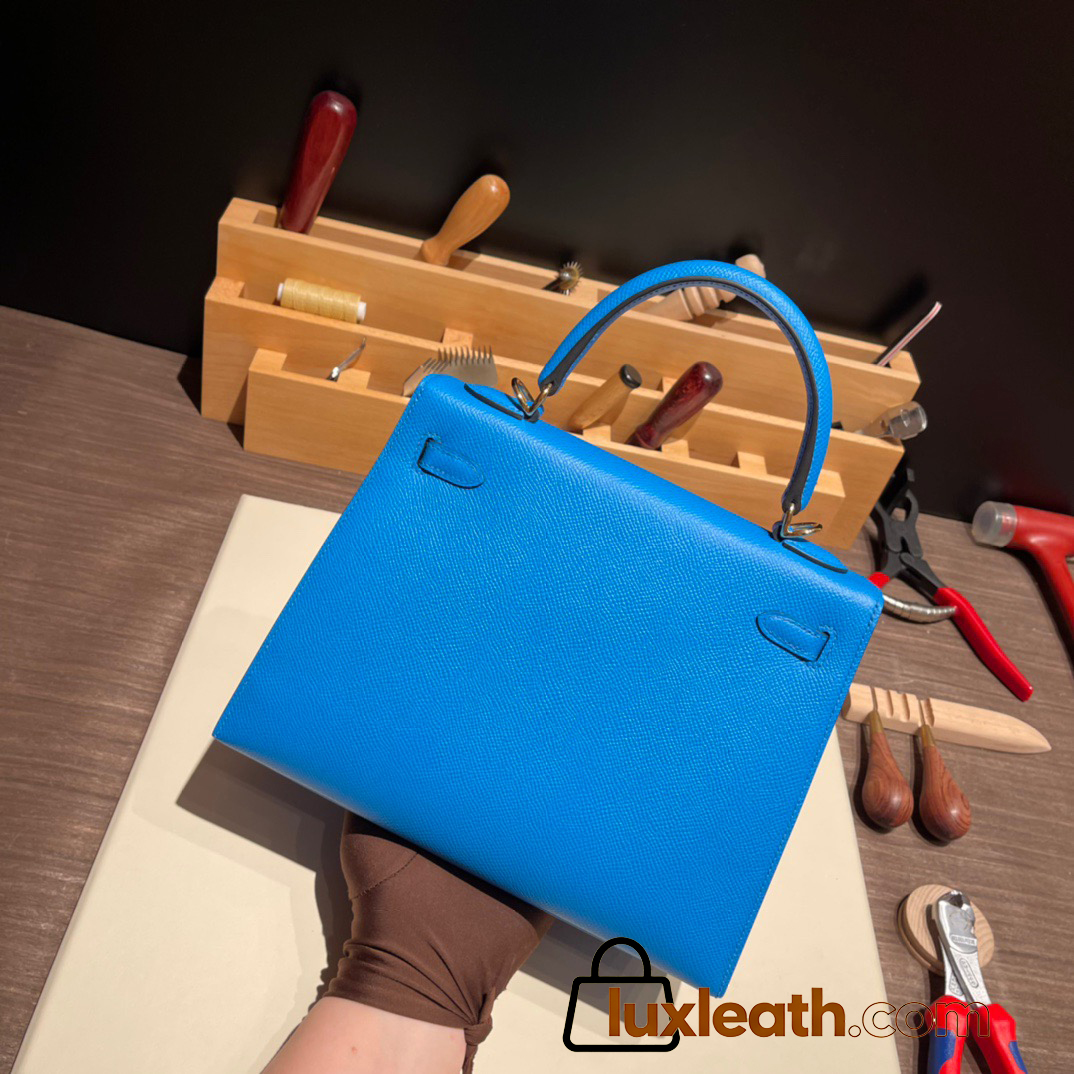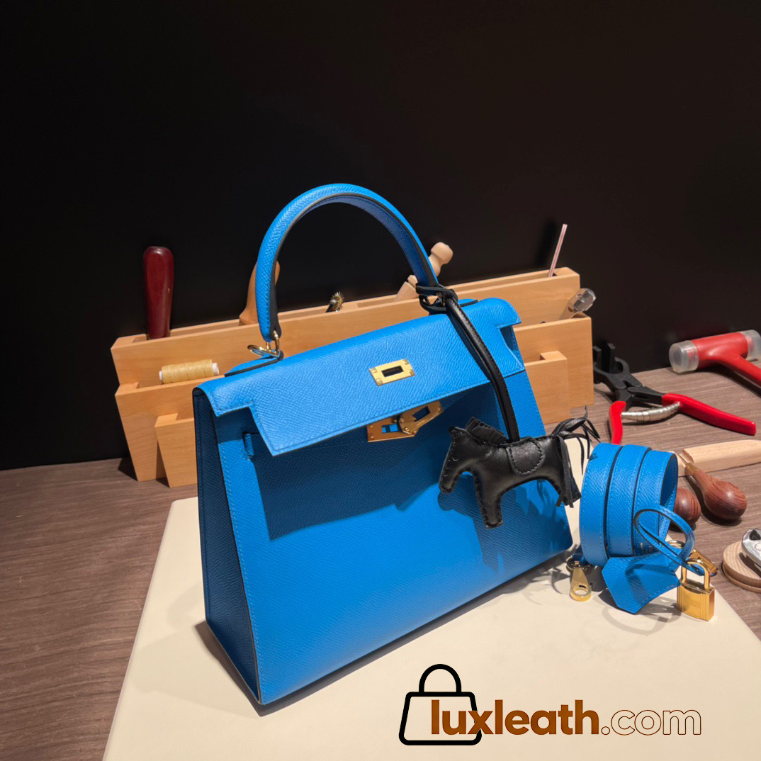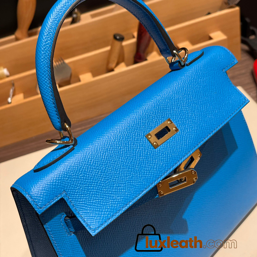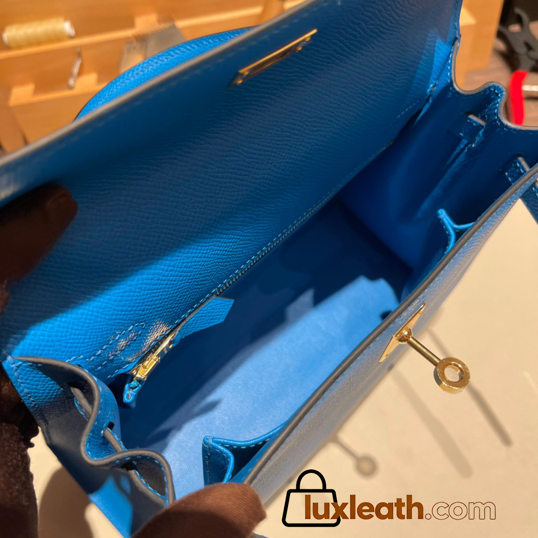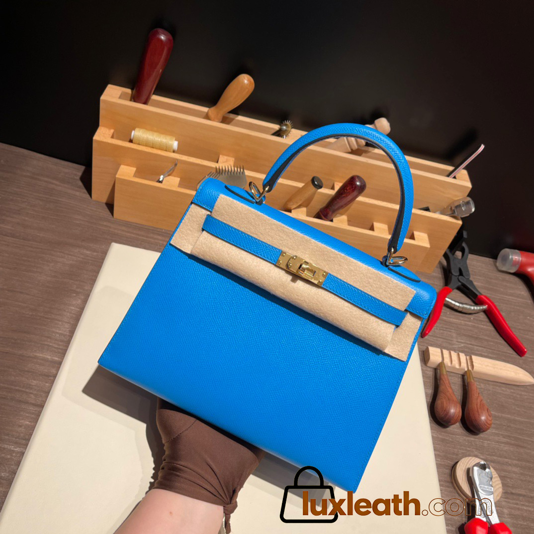 Hermes Kelly 25cm sellier Epsom 0F /Blue Frida Gold Hardware Full Handmade 077