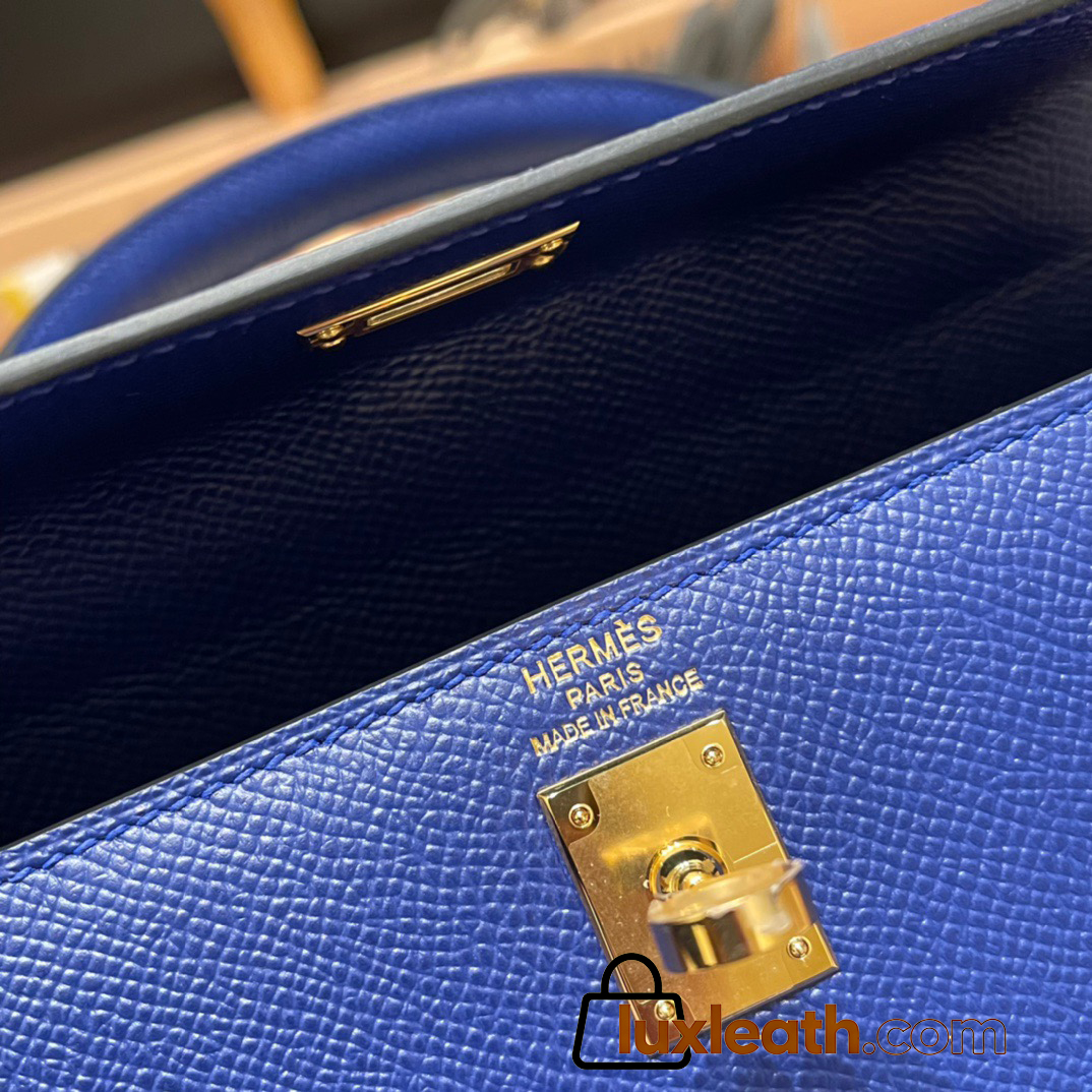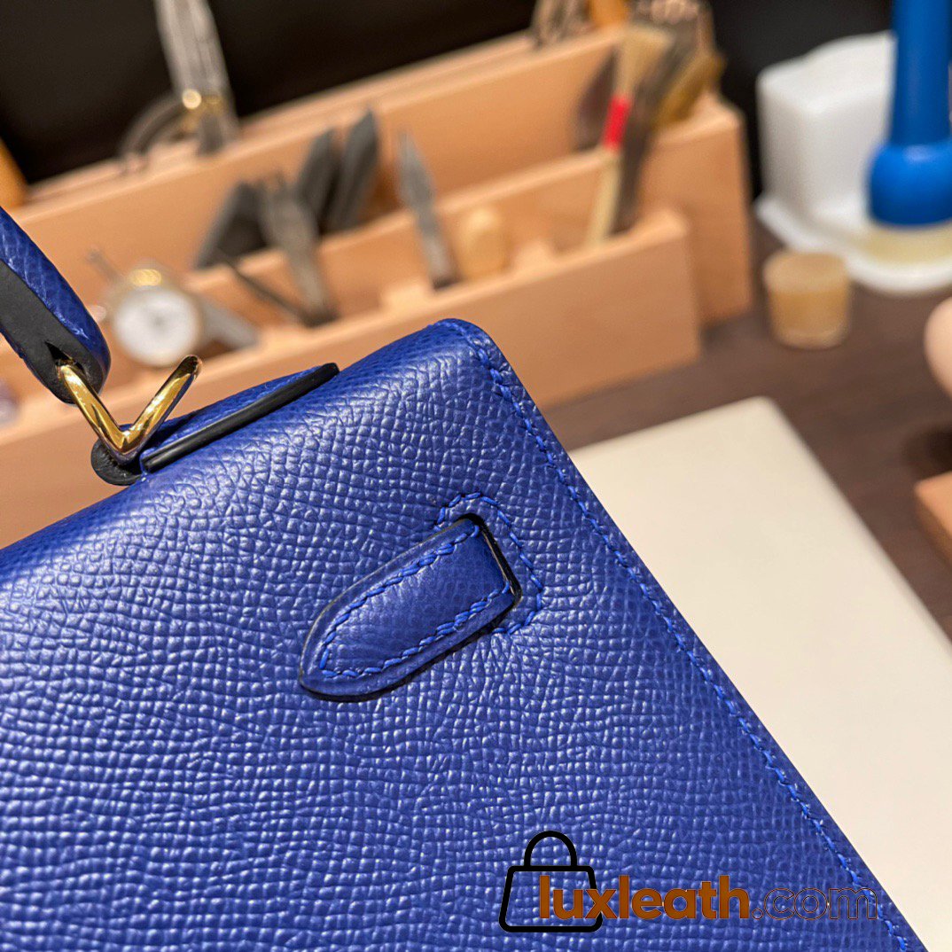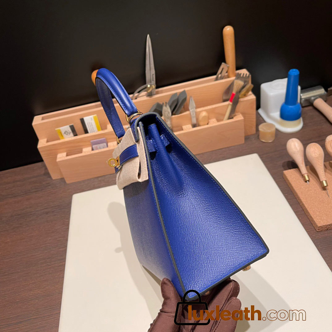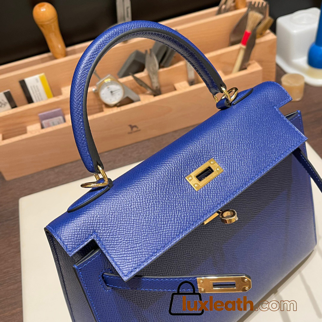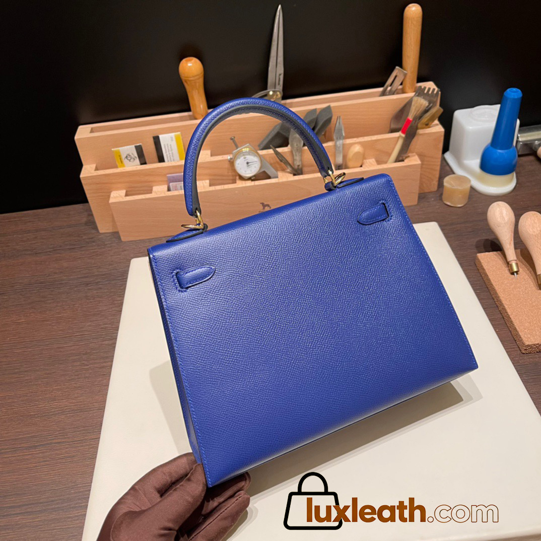 Hermes Kelly 25cm sellier Epsom 7T /Blue Electric Gold Hardware Full Handmade 087
