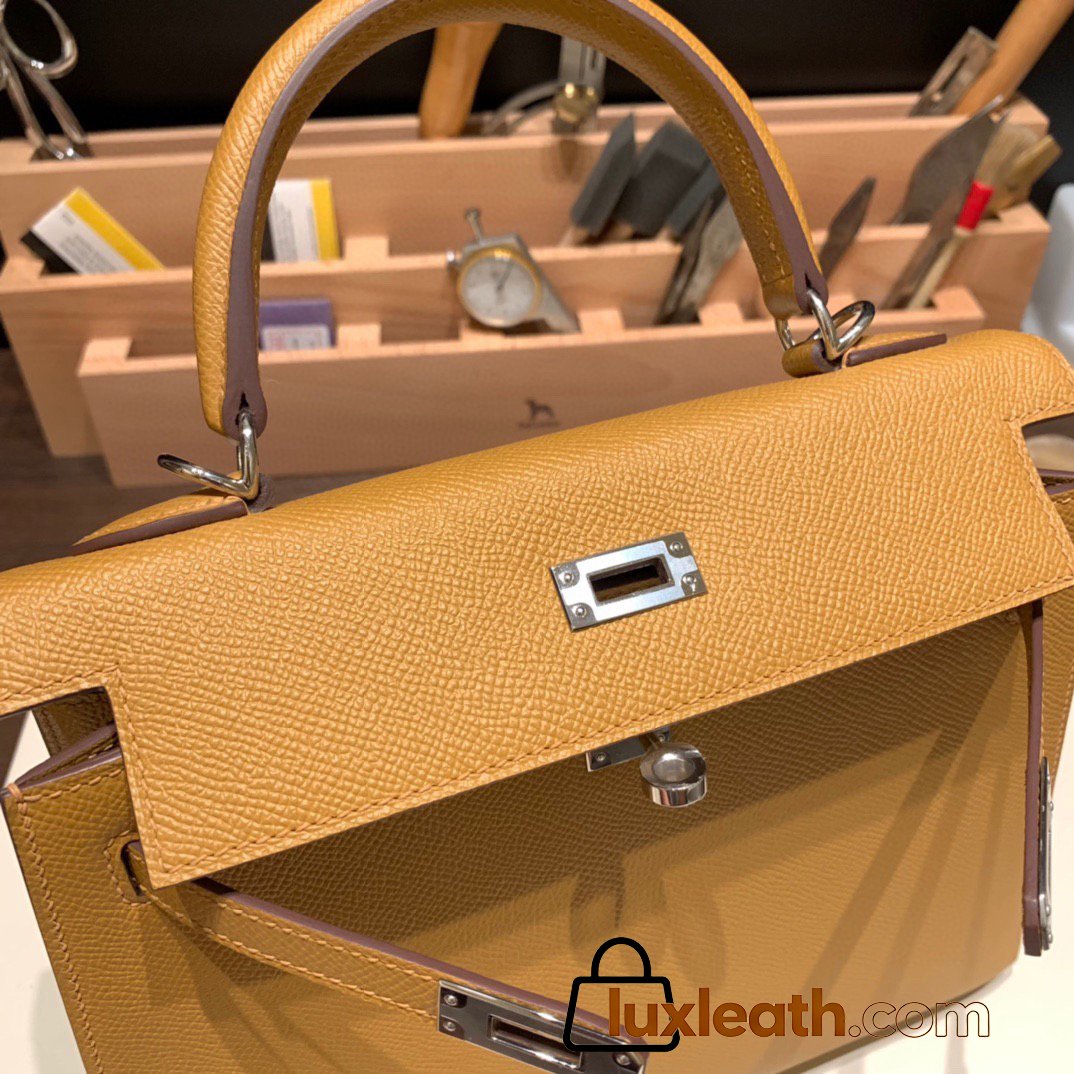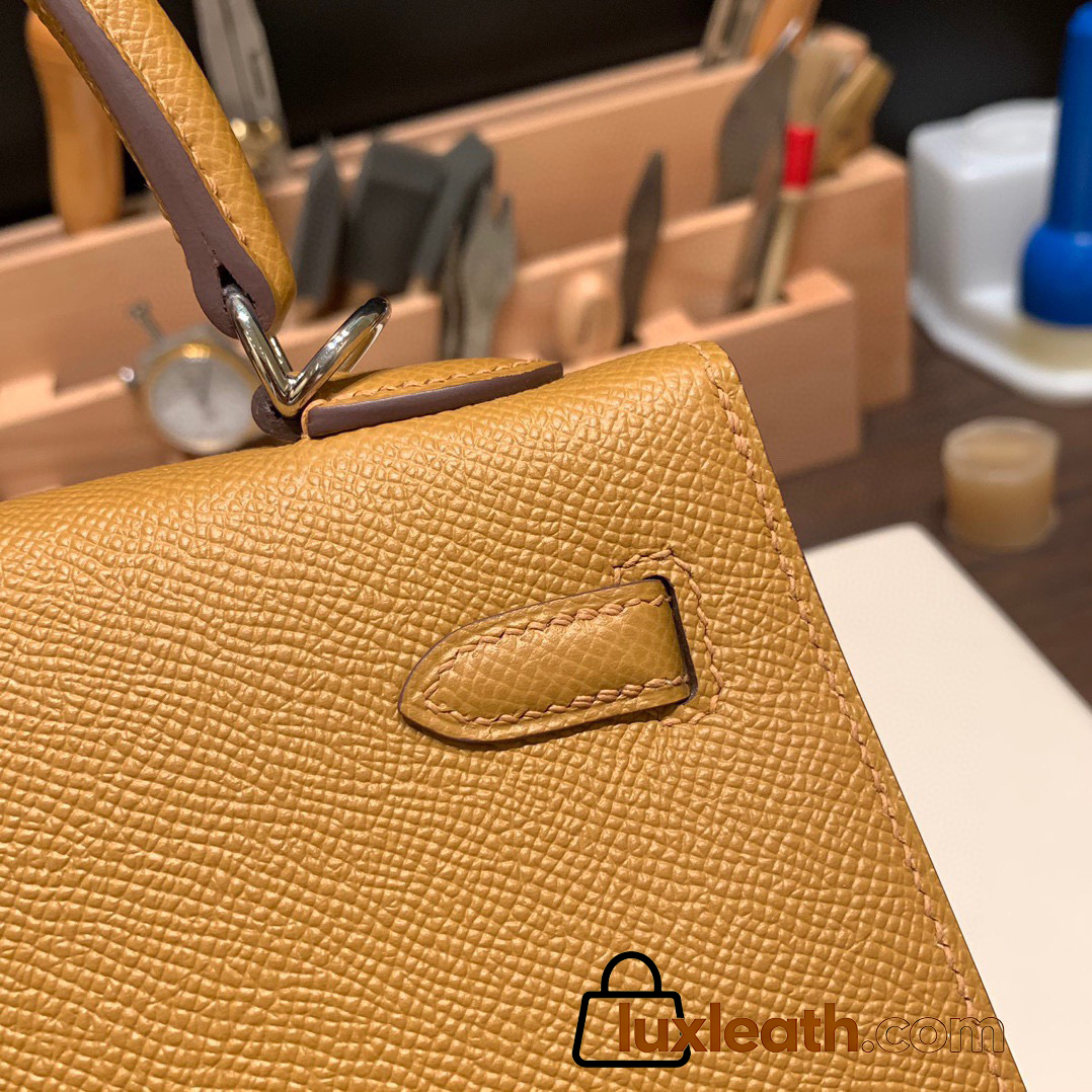 Hermes Kelly 25cm sellier Epsom 2S /Sesame Silver Hardware Full Handmade 108