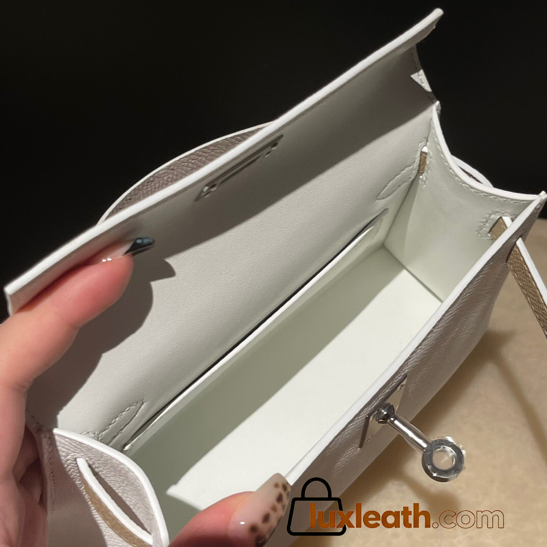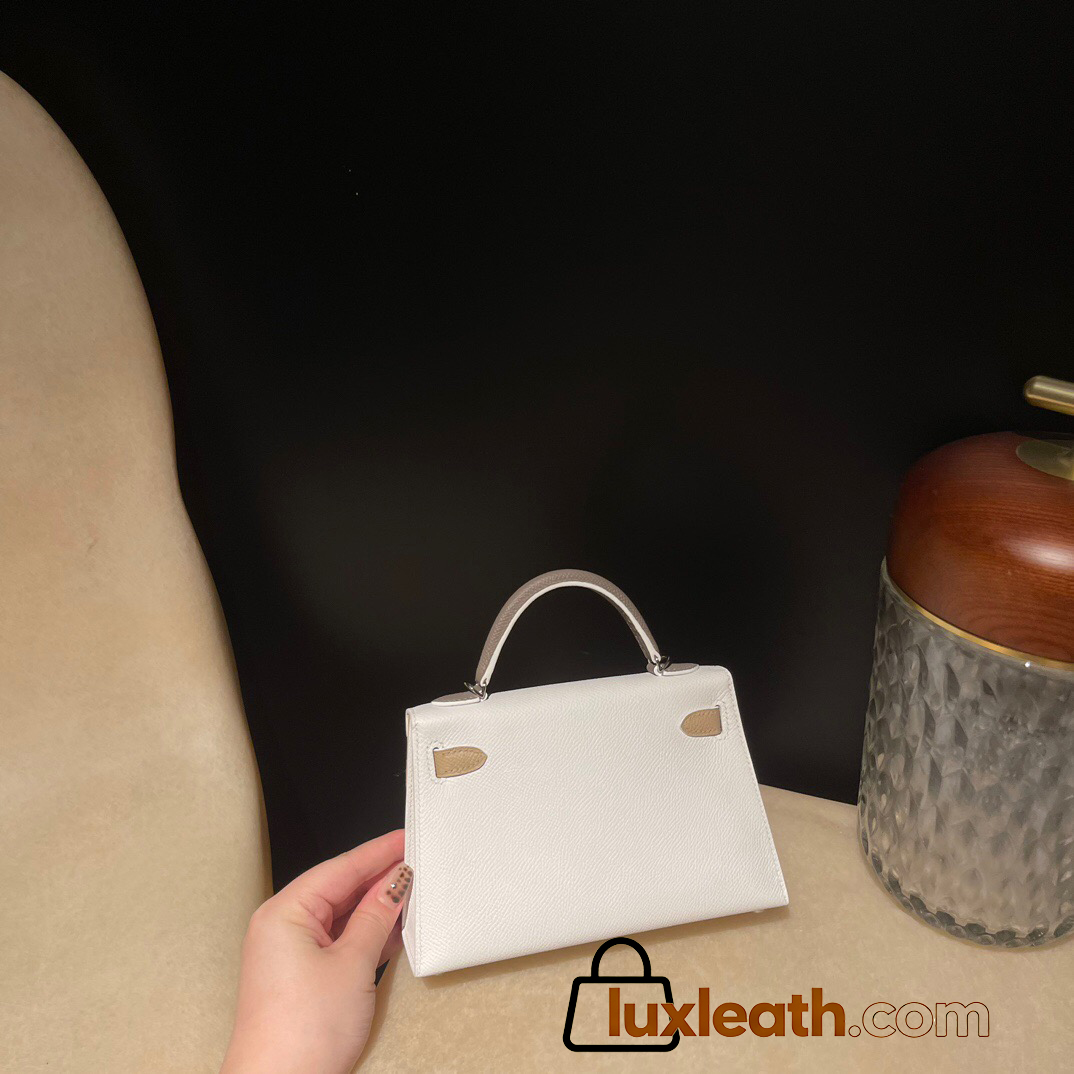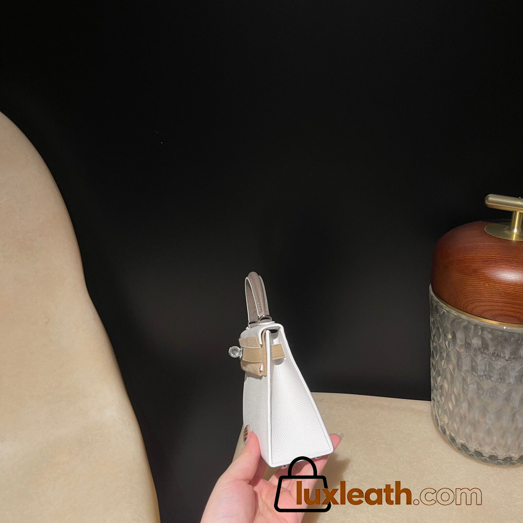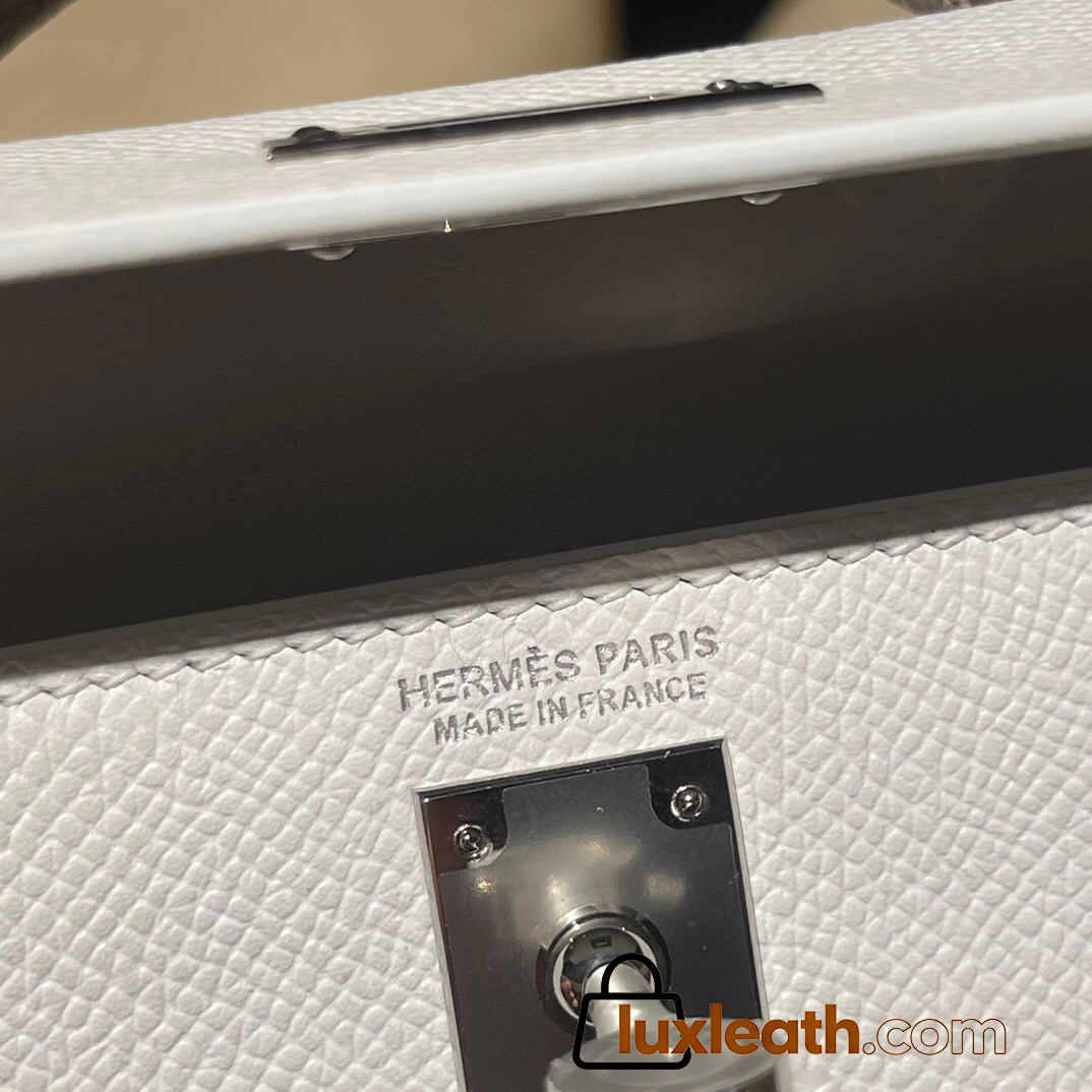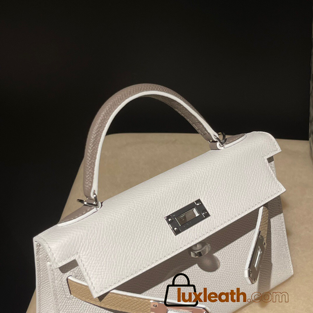 Silver Hardware 01/ White& S2/ Trench & M8/Gris Asphalt Epsom Full Handmade Kelly mini