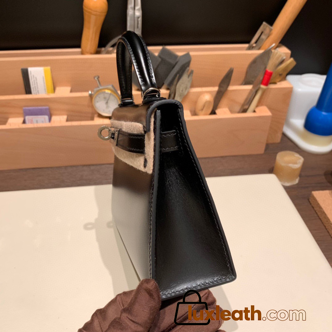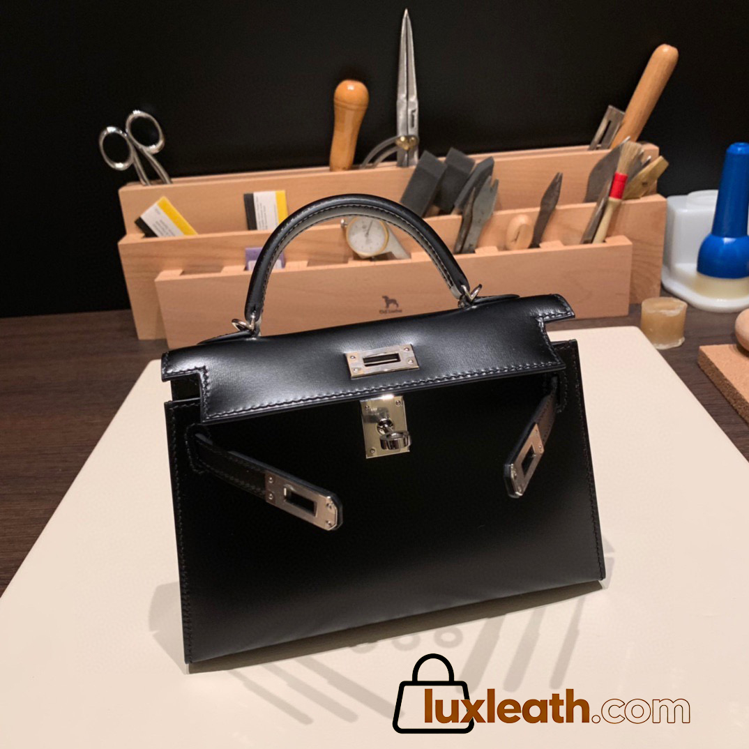 Hermes kelly20 box 19cm 89/ Black (Noir) Silver Hardware Full Handmade kellymini-011