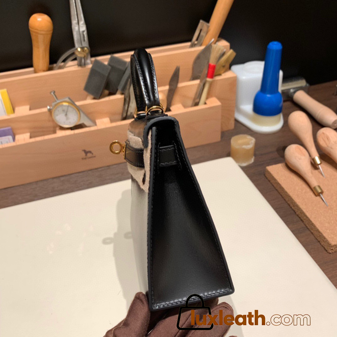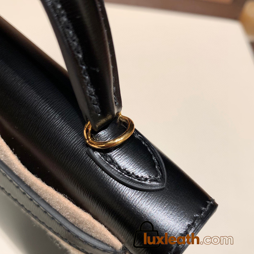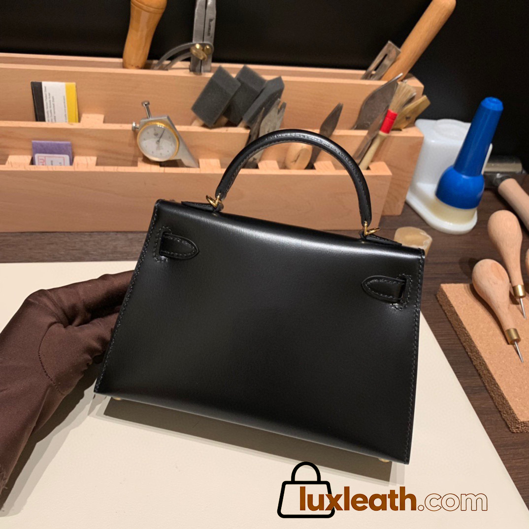 Hermes kelly20 box 19cm 89/ Black Gold Hardware Full Handmade kellymini-012