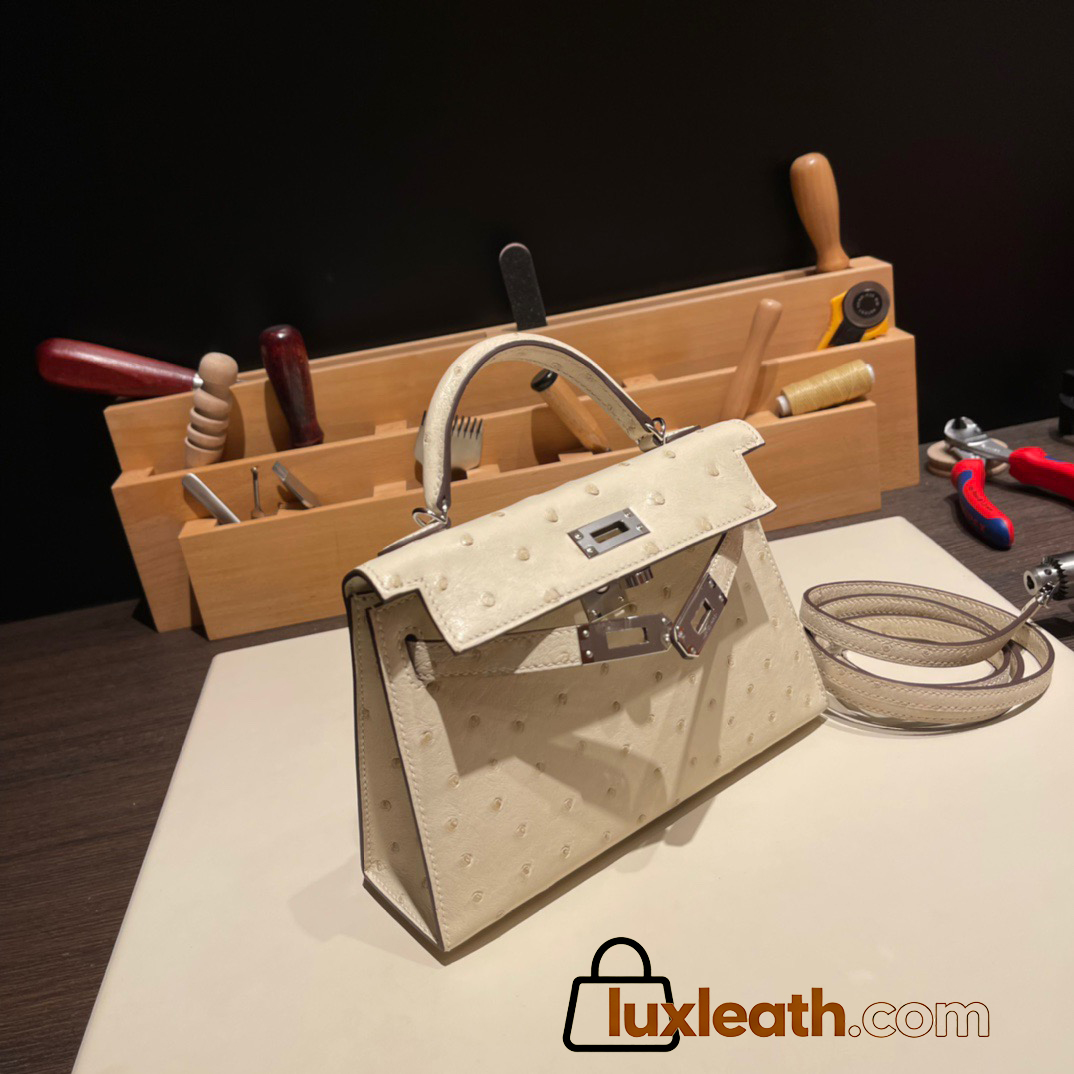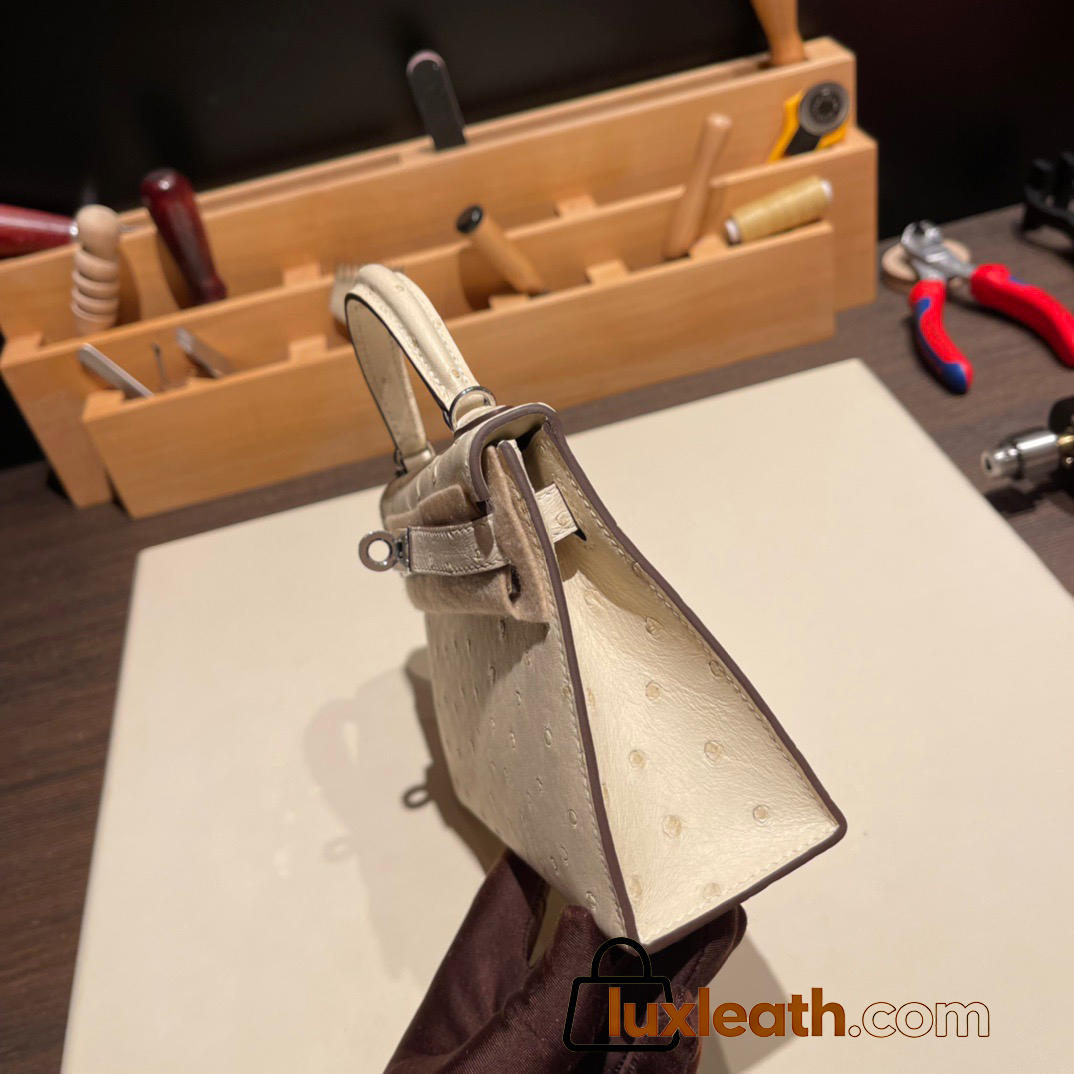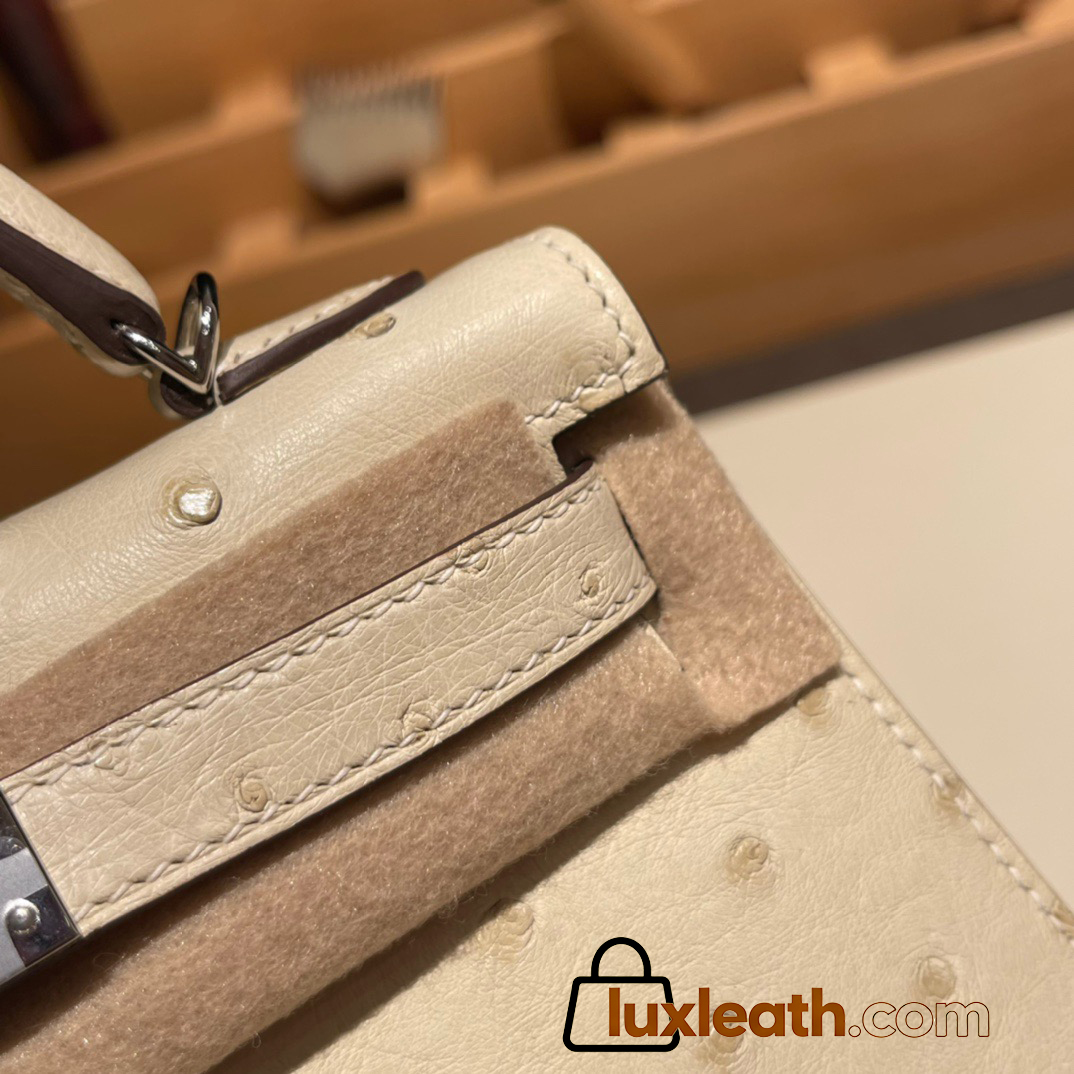 Hermes kelly20 ostrich 19cm 3C /Parchemin  Full Handmade kellymini-017
