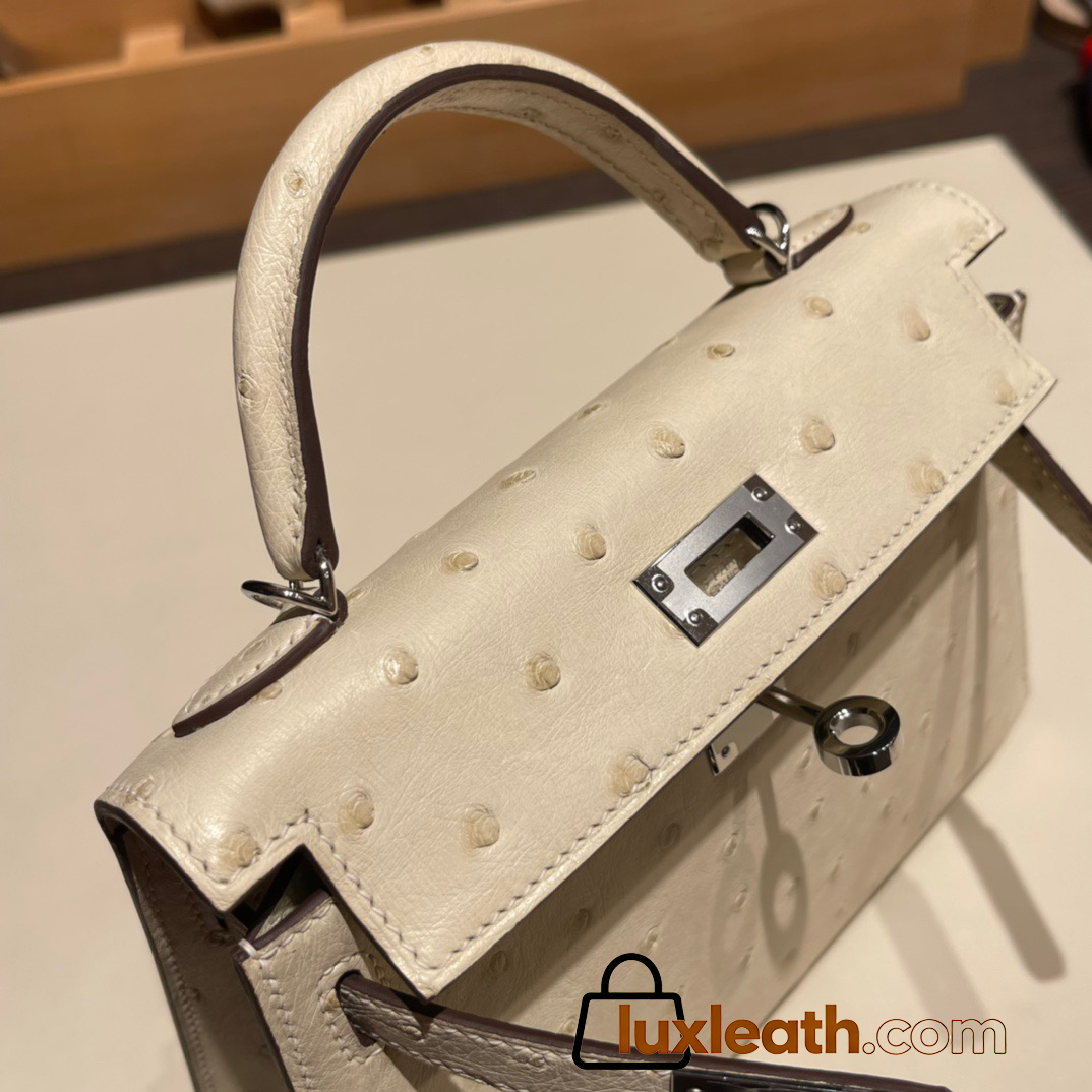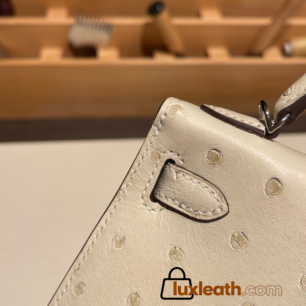 Hermes kelly20 ostrich 19cm 3C /Parchemin Full Handmade kellymini-017