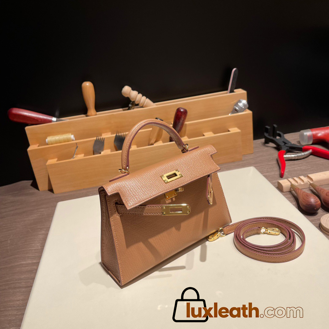Hermes kelly20 chevre 19cm 2J Quebracho Gold Hardware Full Handmade kellymini-030