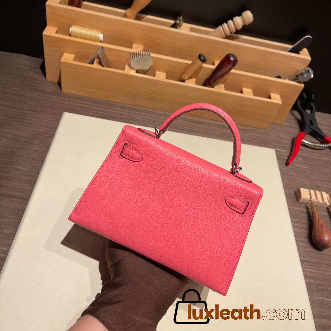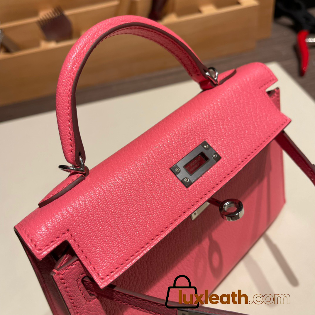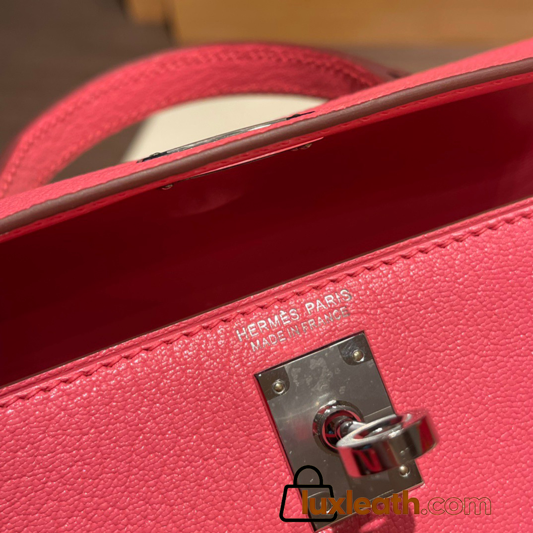 Hermes kelly20 chevre19cm 8W/ Rose Azalee Silver Hardware Full Handmade kellymini-032