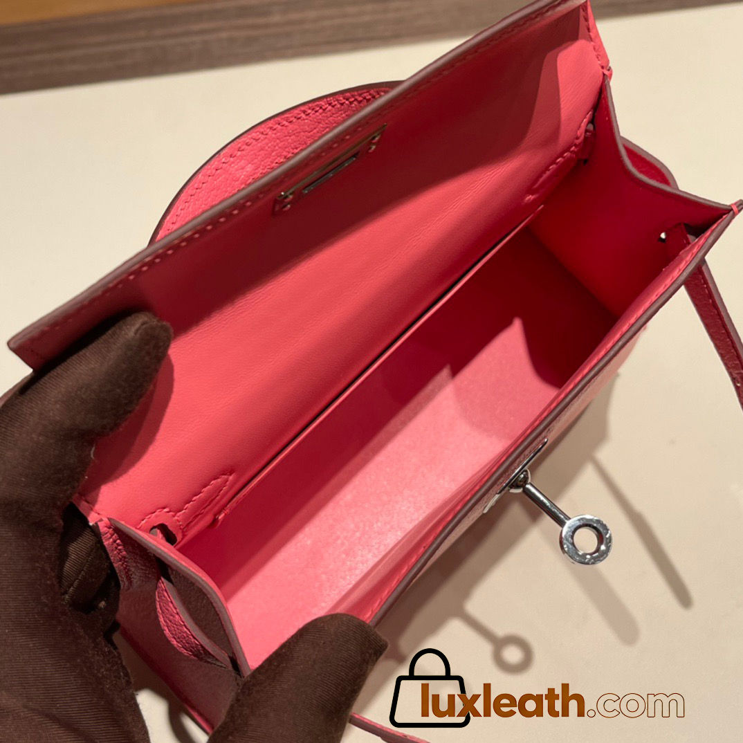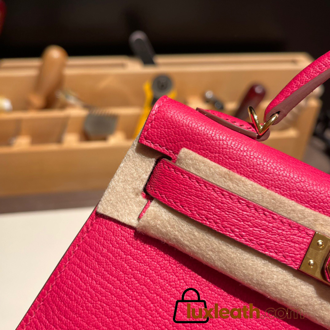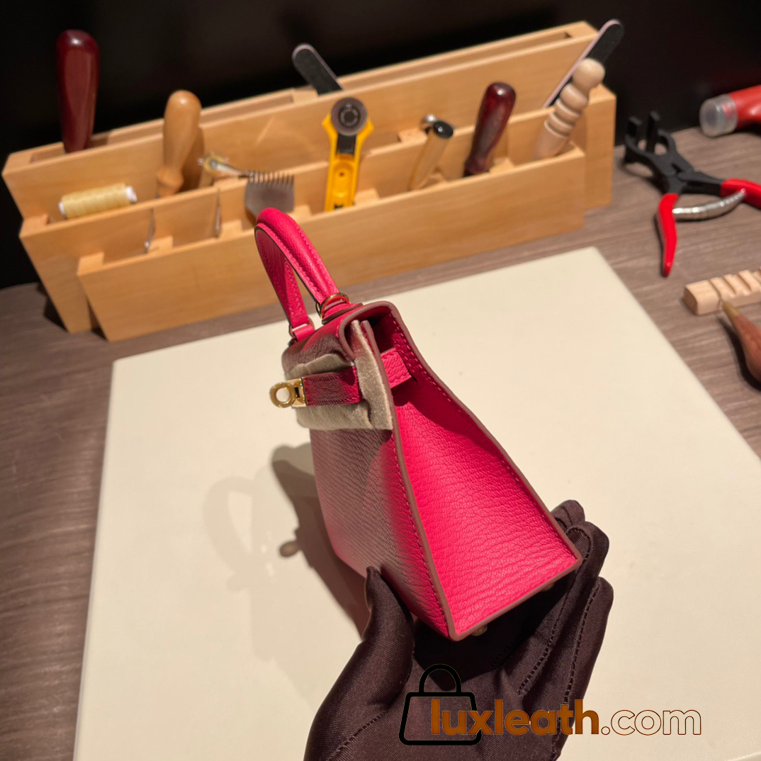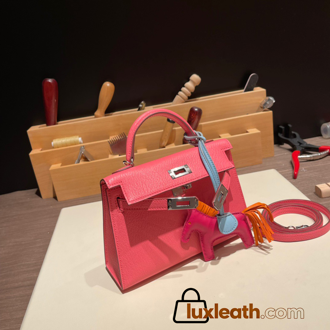 Hermes kelly20 chevre19cm 8W/ Rose Azalee Silver Hardware Full Handmade kellymini-032