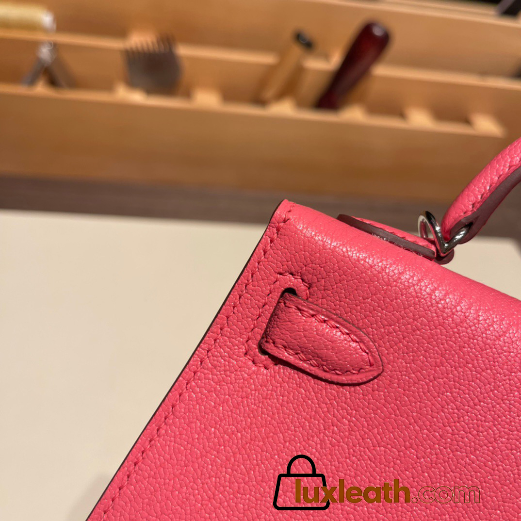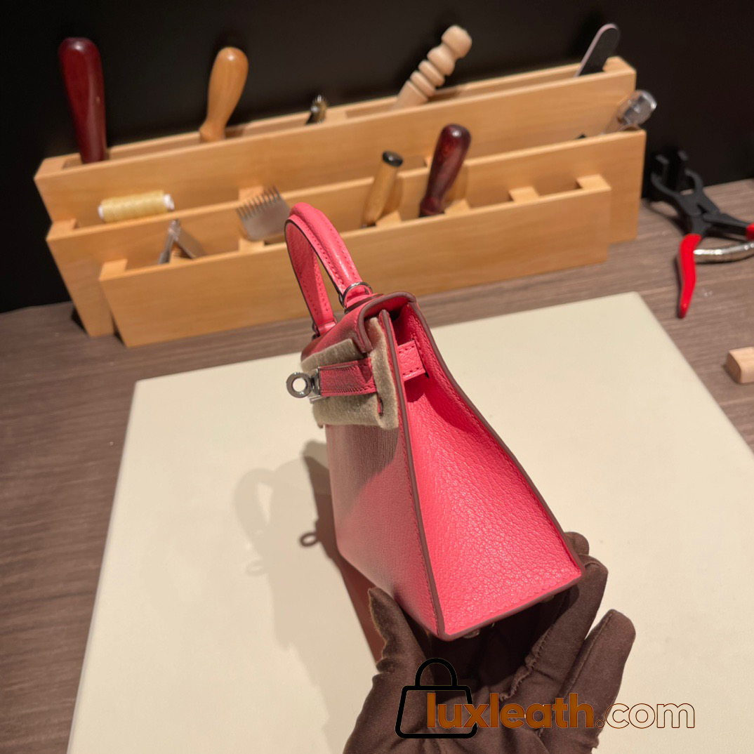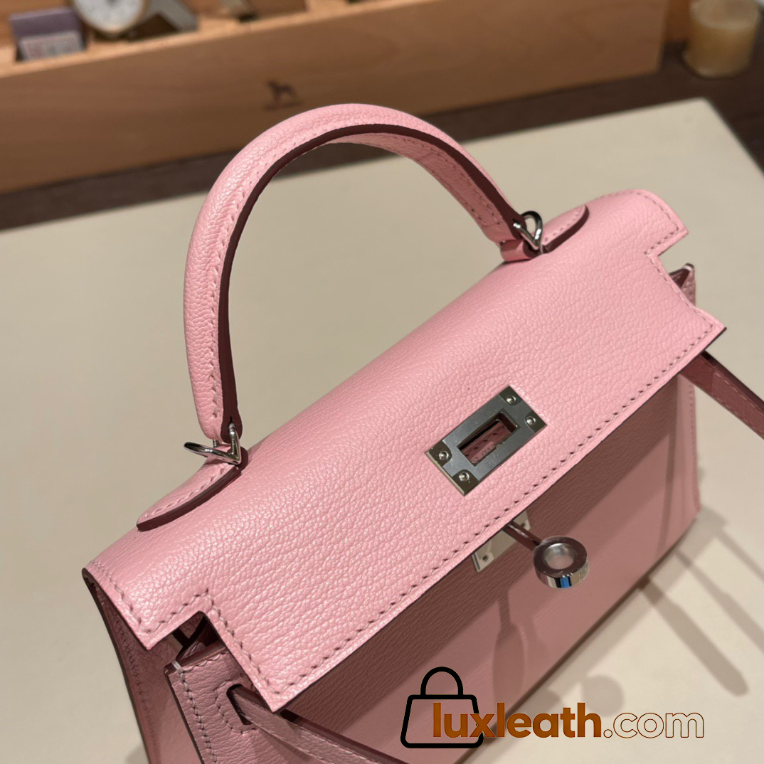 Hermes kelly20 chevre 19cm 3Q /Rose Sakura Silver Hardware Full Handmade kellymini-033