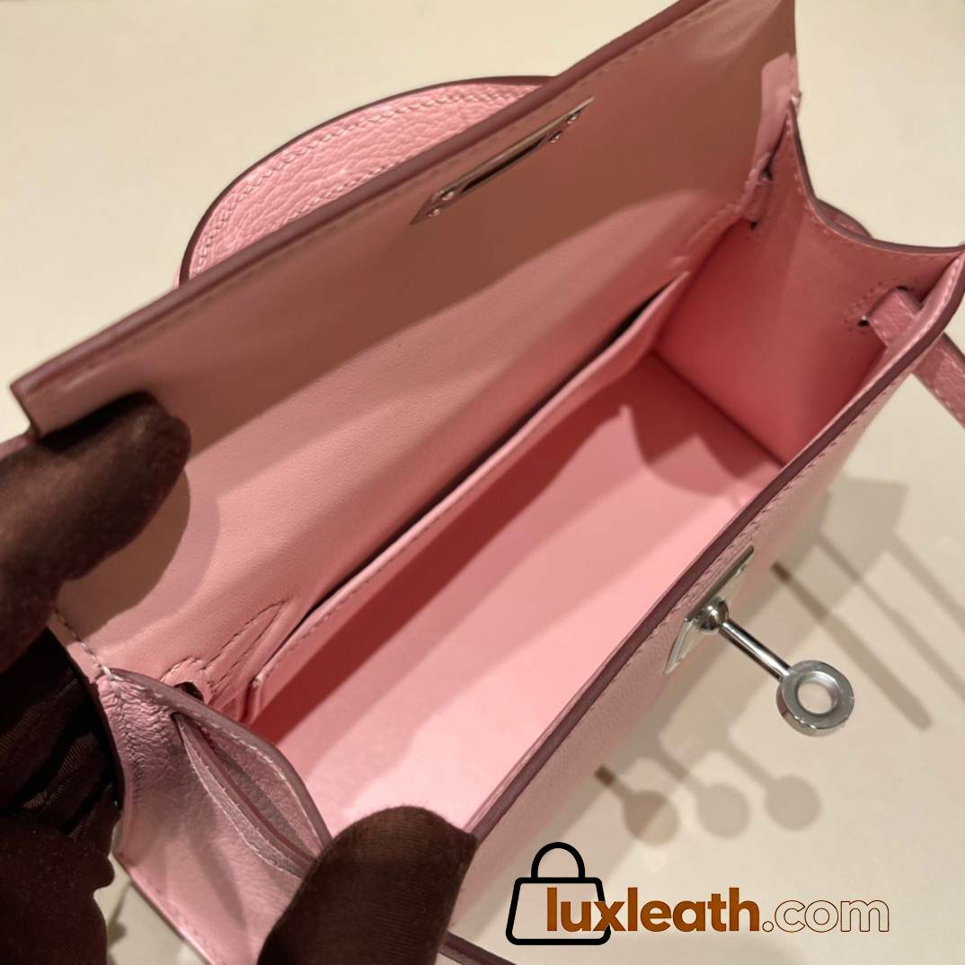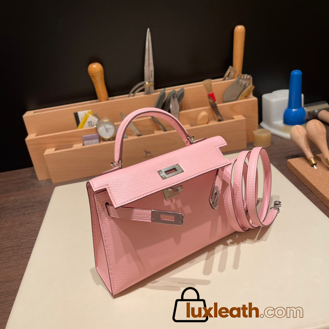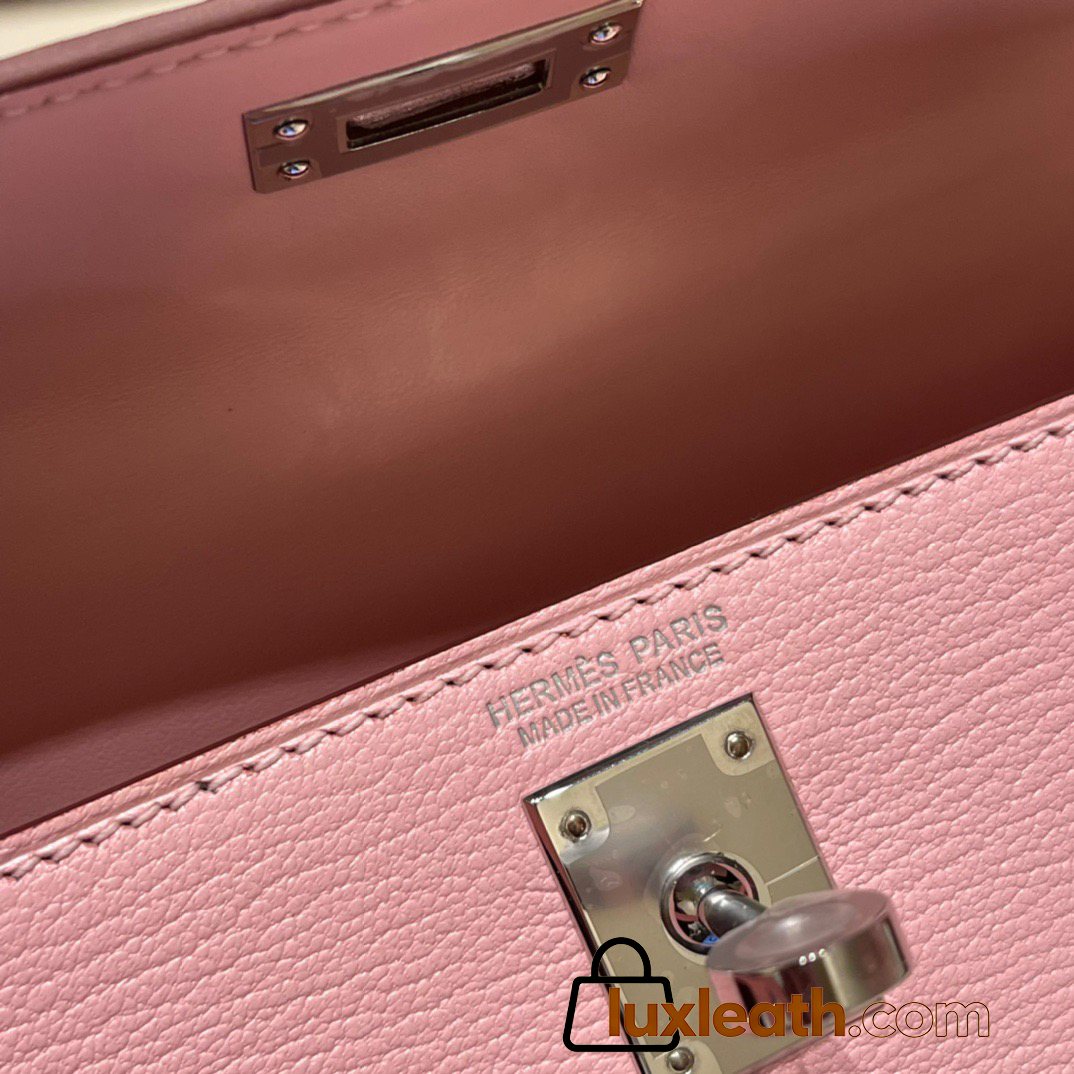 Hermes kelly20 chevre 19cm 3Q /Rose Sakura Silver Hardware Full Handmade kellymini-033