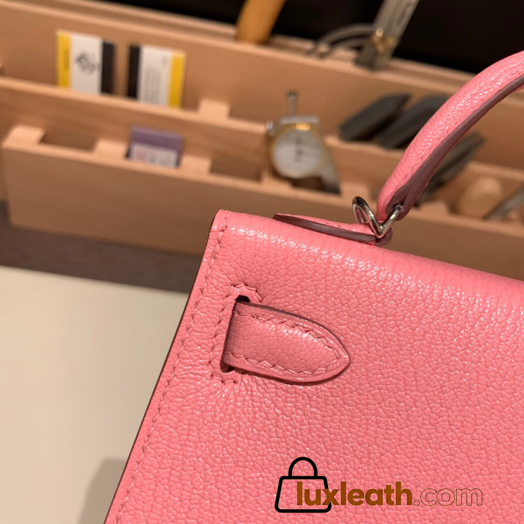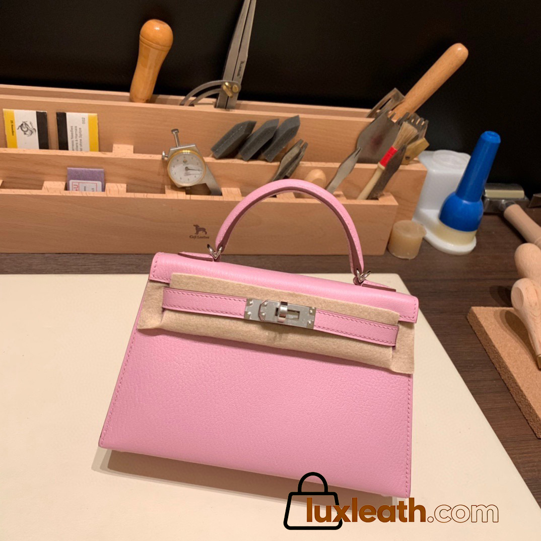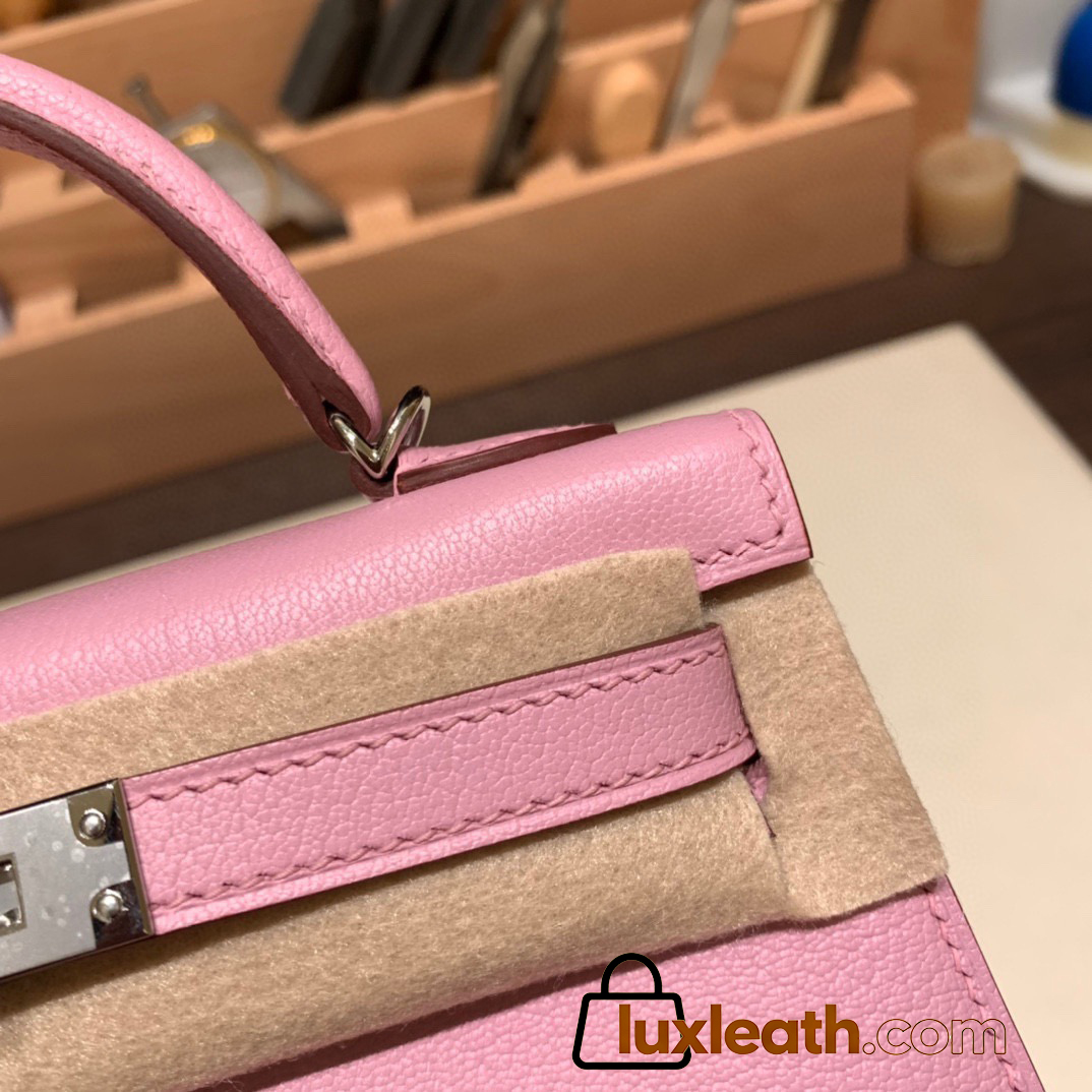 Hermes kelly20 chevre 19cm 1Q/Rose Confetti Silver Hardware Full Handmade kellymini-039