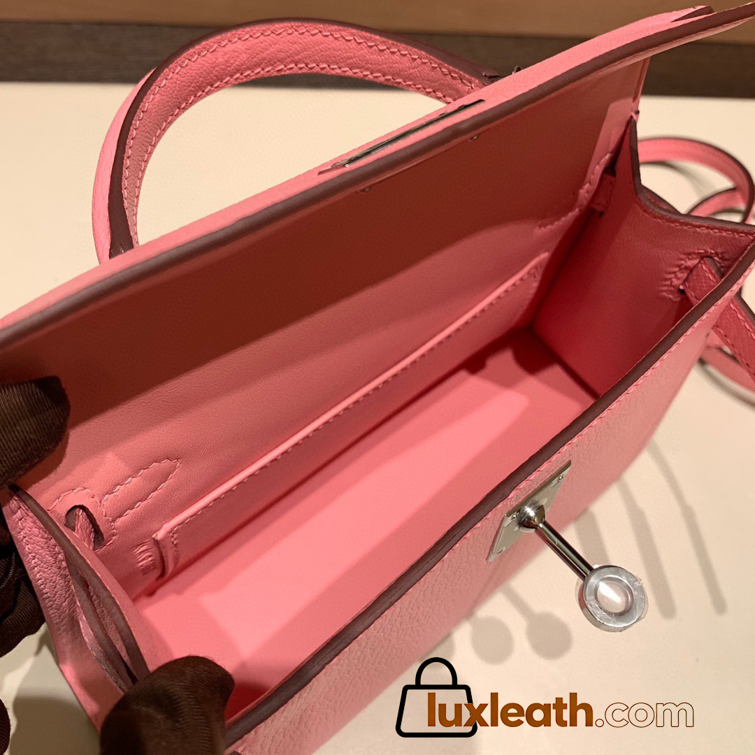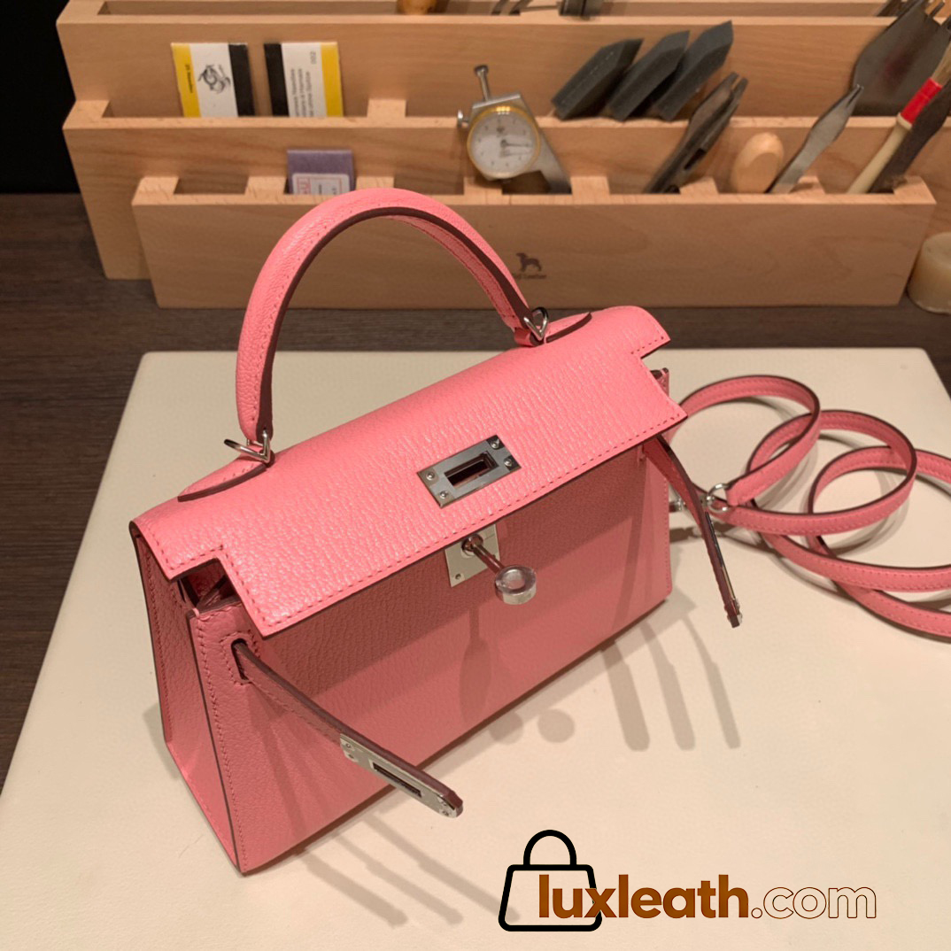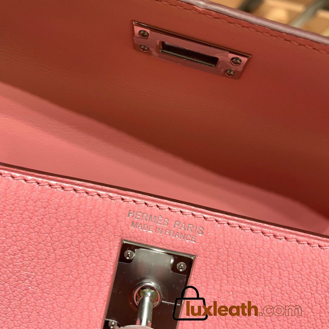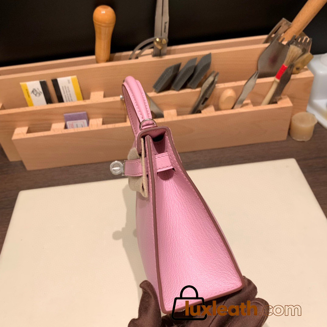 Hermes kelly20 chevre 19cm 1Q/Rose Confetti Silver Hardware Full Handmade kellymini-039