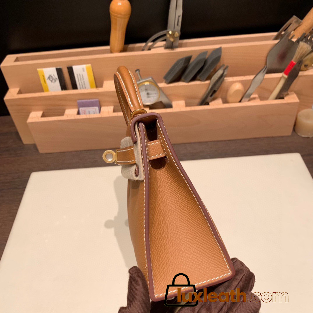 Hermes kelly20 epsom19cm 37 /Gold Silver Hardware  Full Handmade kellymini-042