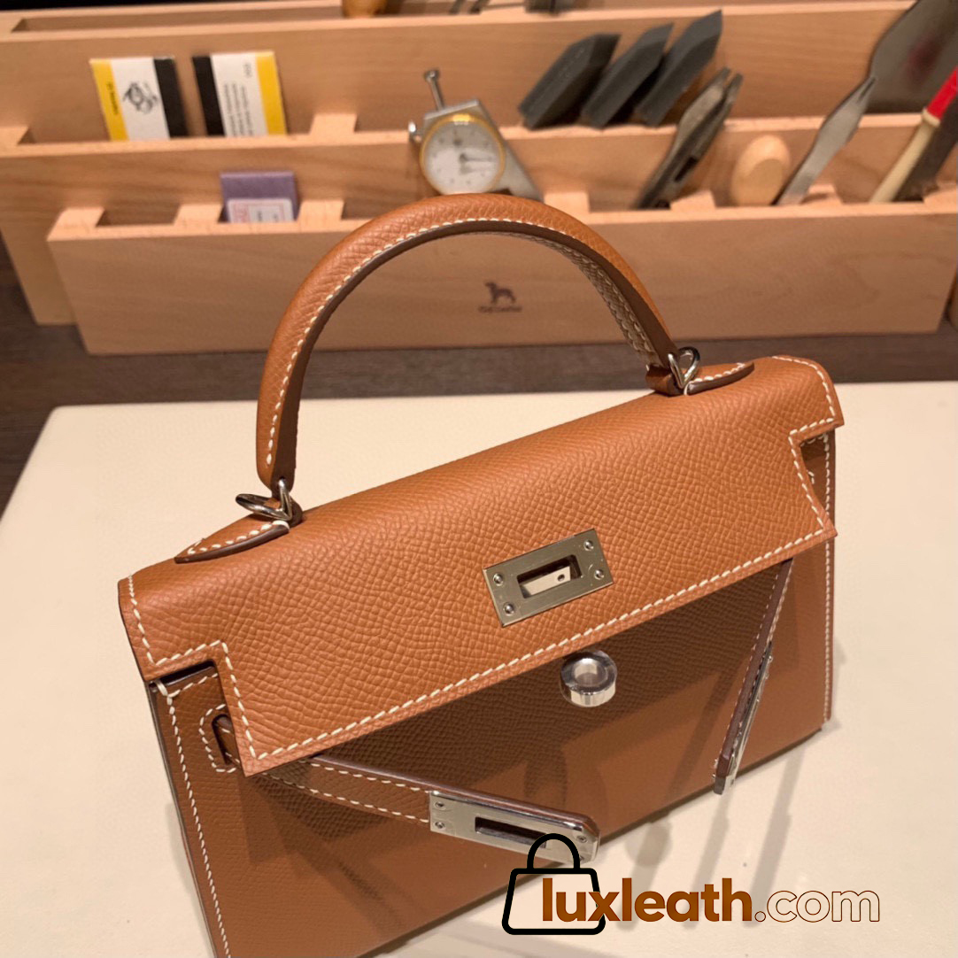 Hermes kelly20 epsom19cm 37 /Gold Silver Hardware Full Handmade kellymini-042