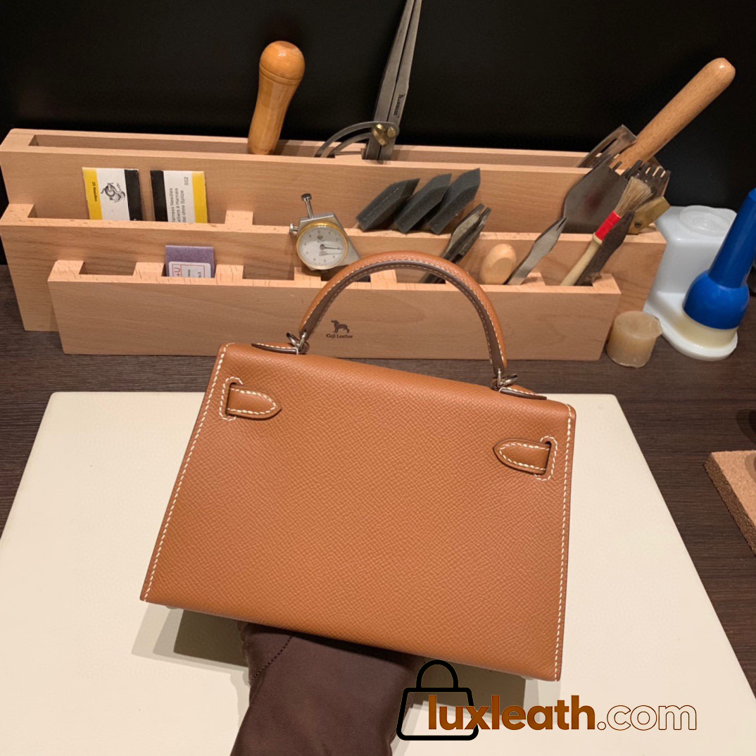 Hermes kelly20 epsom19cm ck37 /Gold Silver Hardware Full Handmade kellymini-051