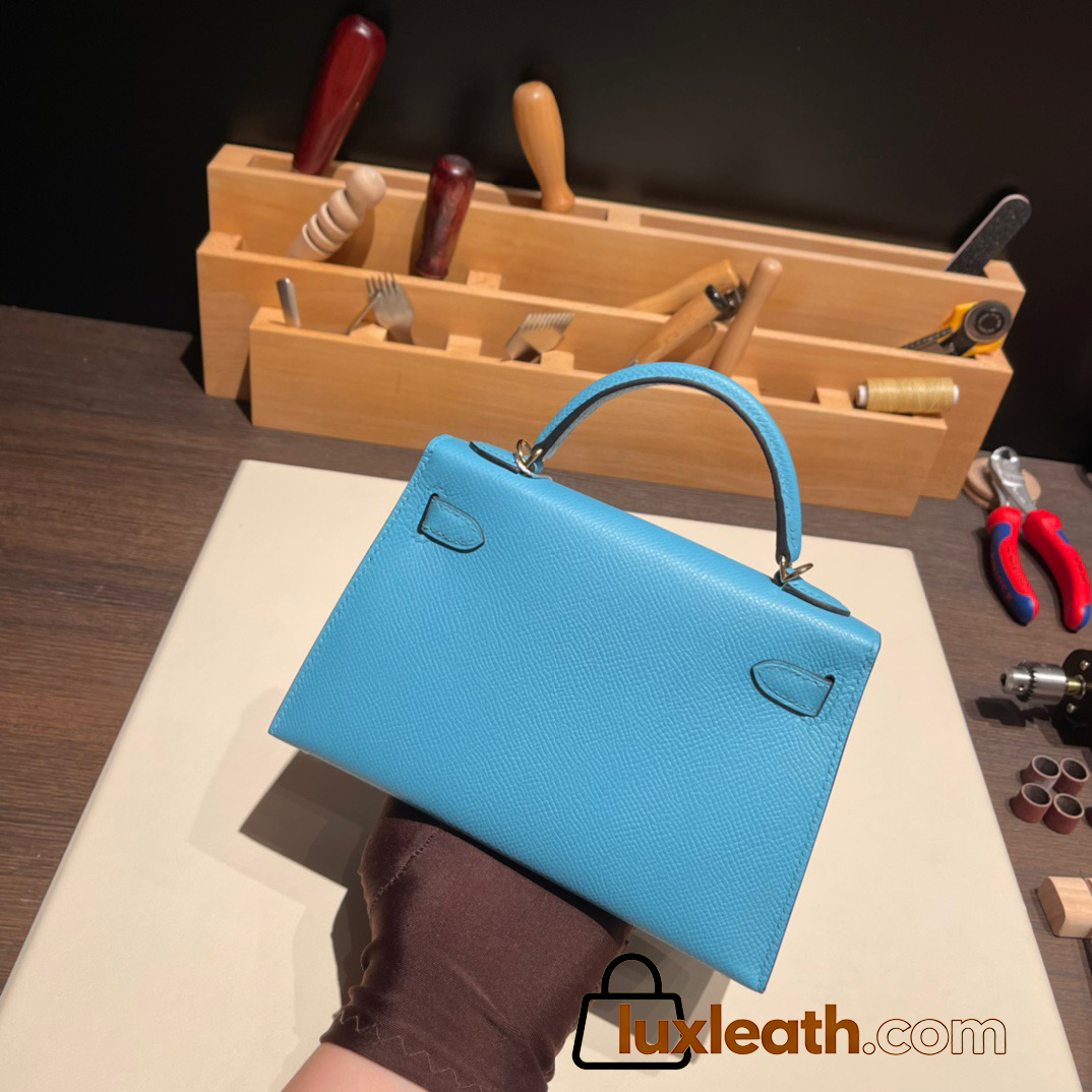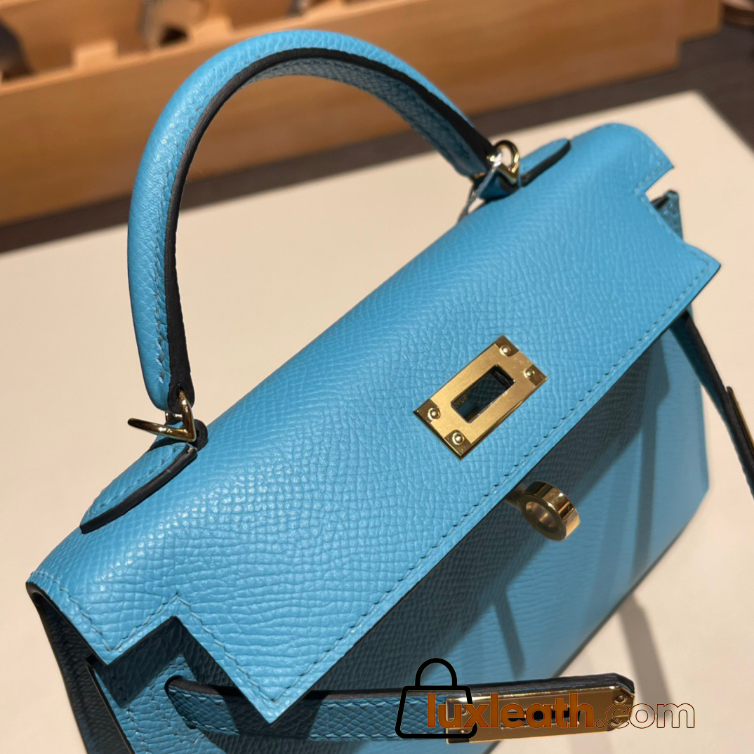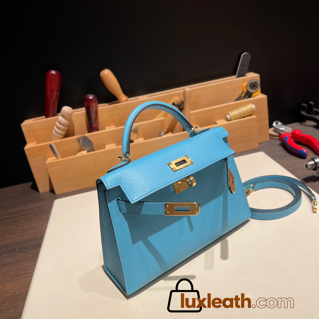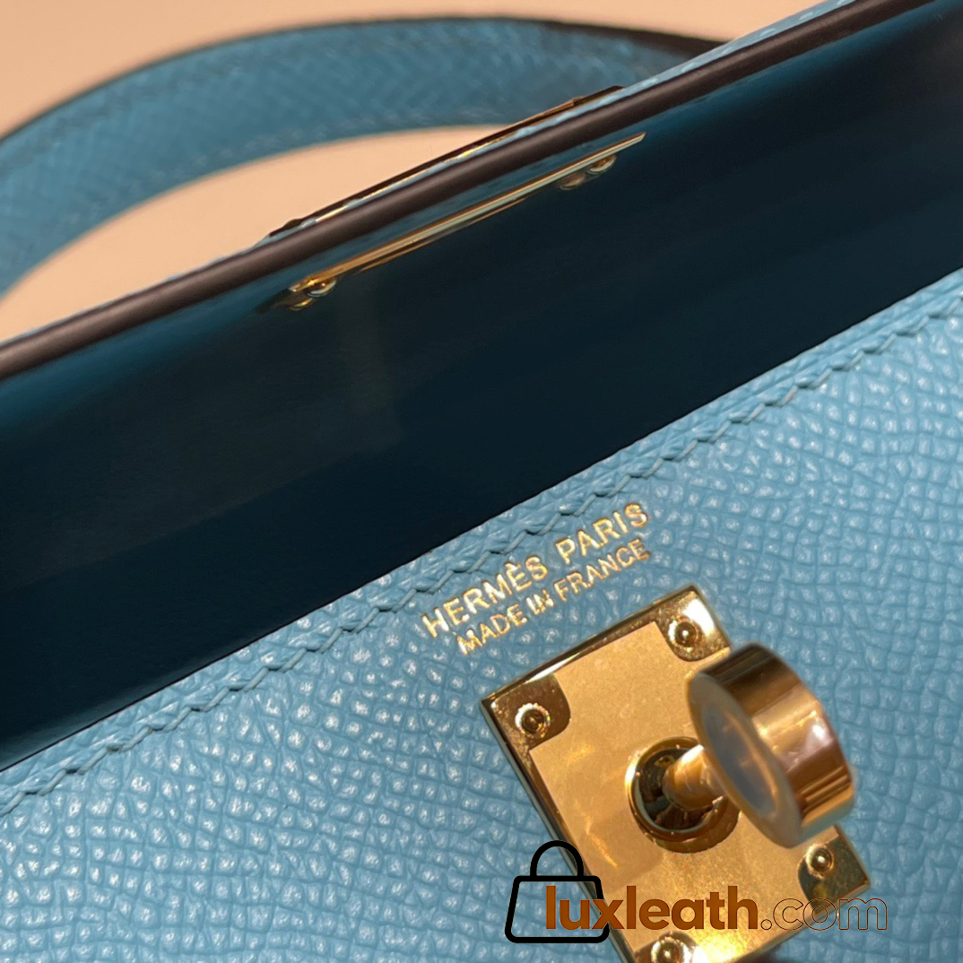 Hermes kelly20 epsom19cm7N /Celeste Gold Hardware Full Handmade kellymini-059
