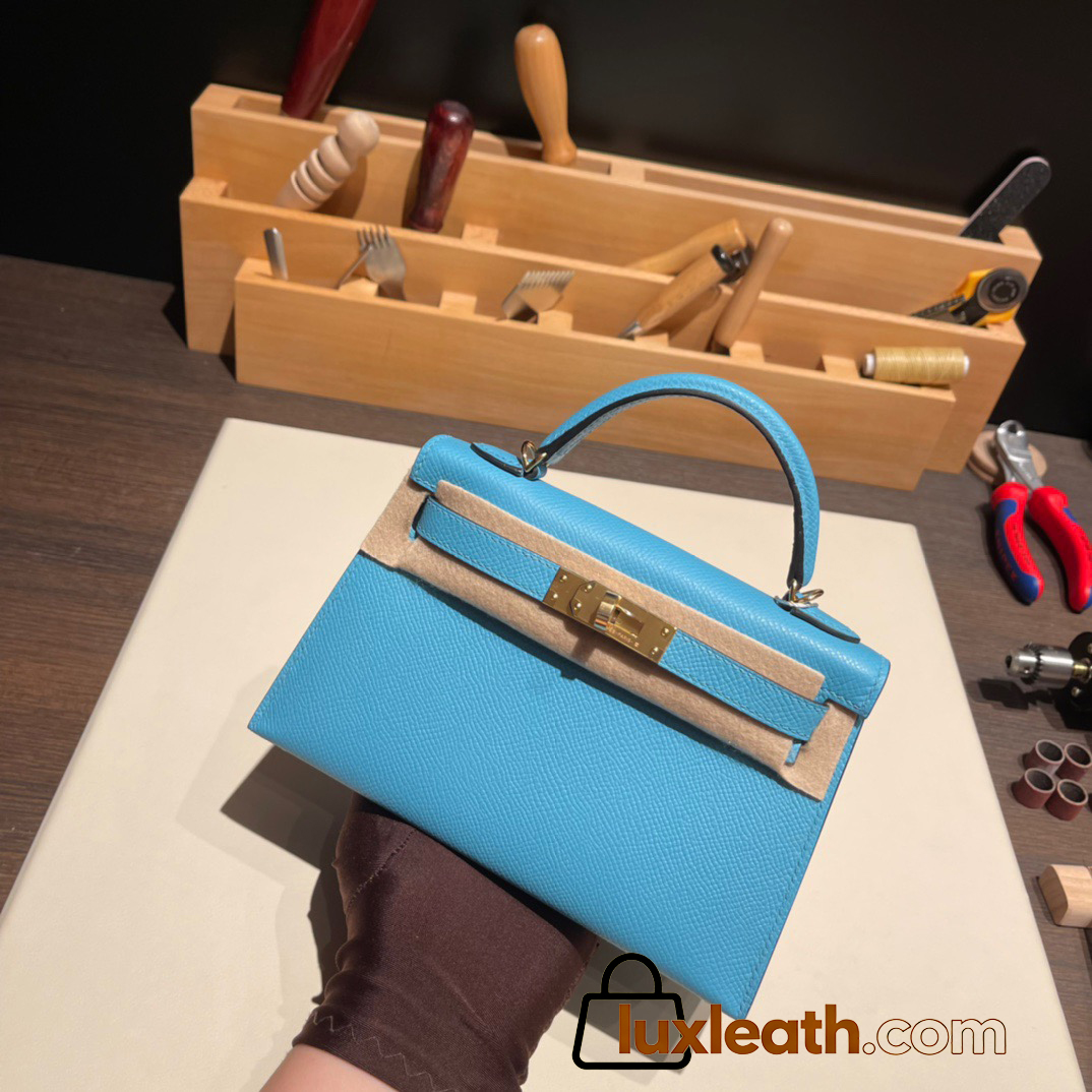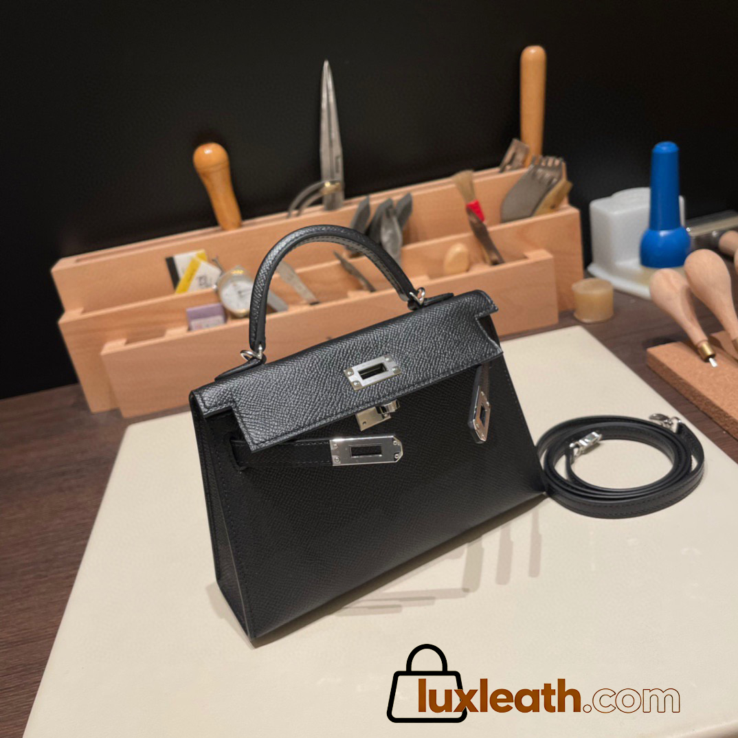 Hermes kelly20 epsom19cm 89 /Black (Noir) Silver Hardware  Full Handmade kellymini-064