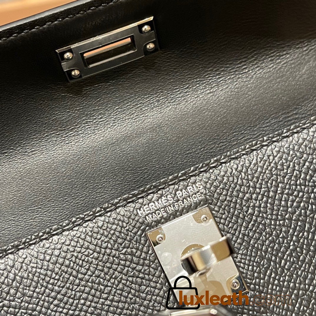 Hermes kelly20 epsom19cm 89 /Black (Noir) Silver Hardware Full Handmade kellymini-064