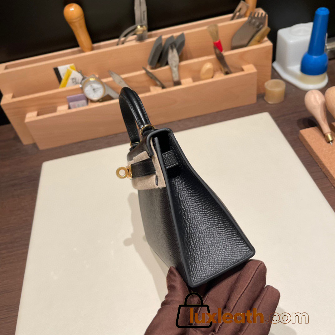 Hermes kelly20 epsom19cm 10/ Craie & 89 /Black (Noir) Silver Hardware Full Handmade kellymini-071