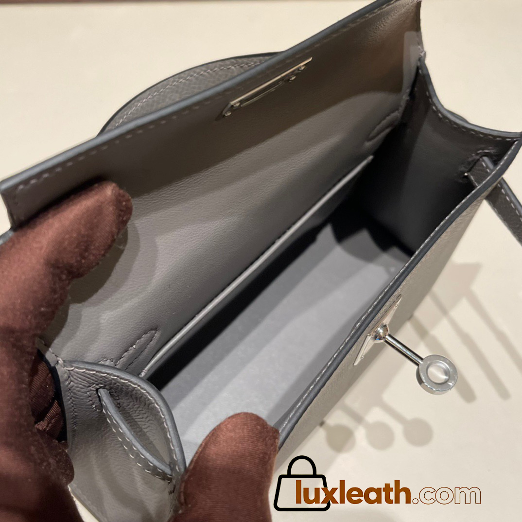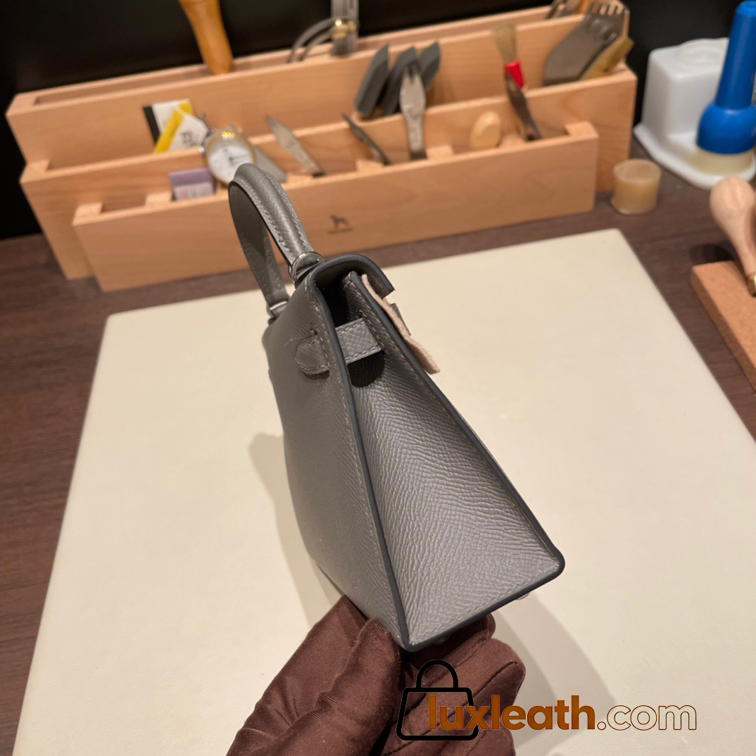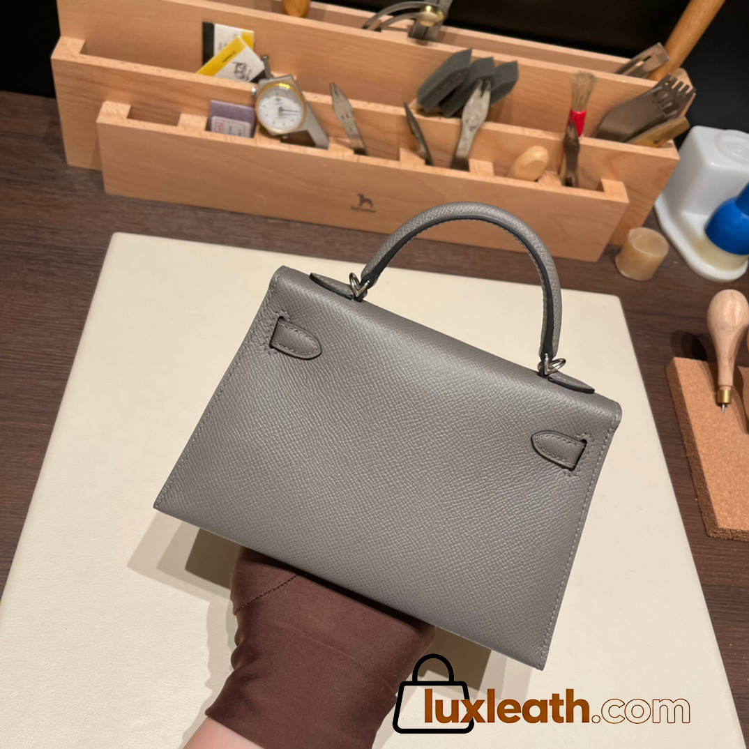 Hermes kelly20 epsom19cm 10/ Craie & 89 /Black (Noir)  Silver Hardware  Full Handmade kellymini-071