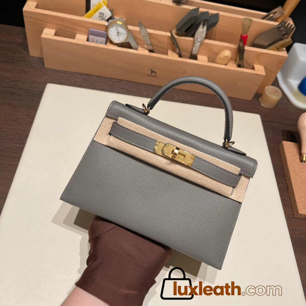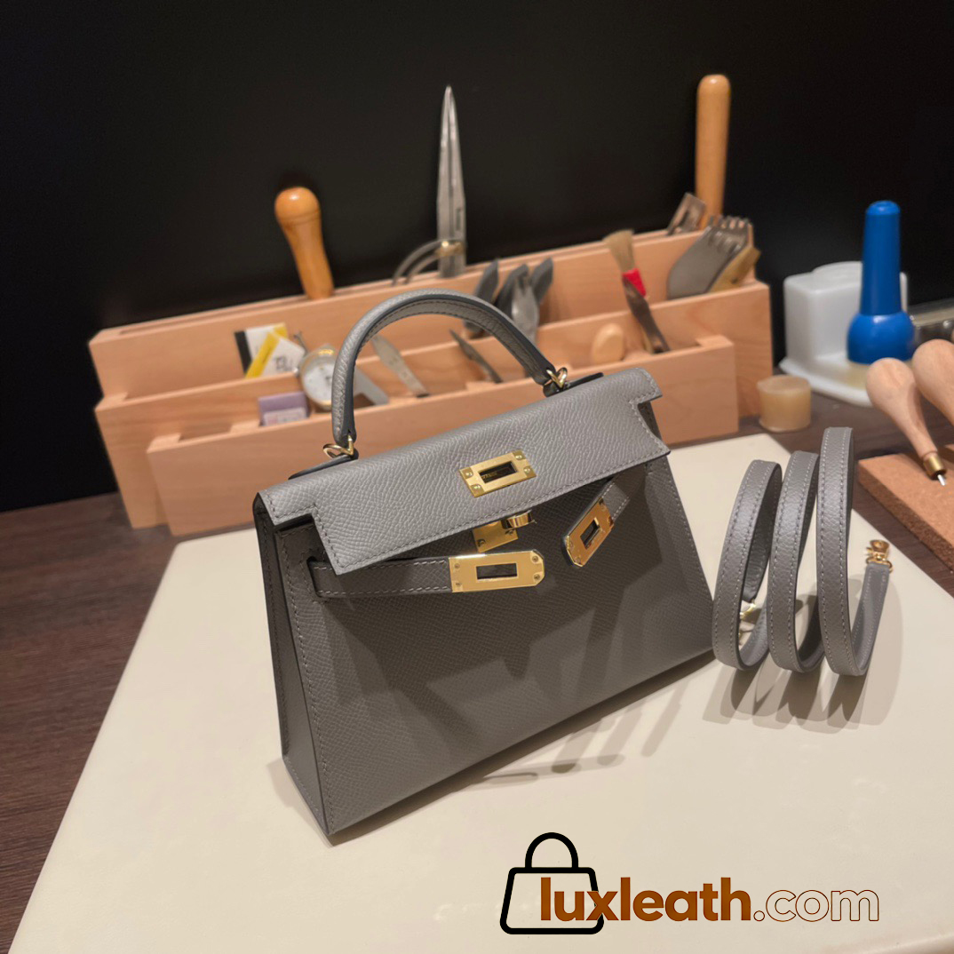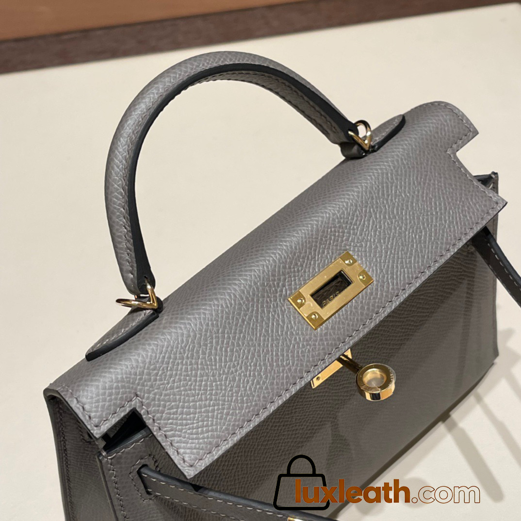 Hermes kelly20 epsom19cm 0L/ Gris Meyer Silver Hardware Full Handmade kellymini-075