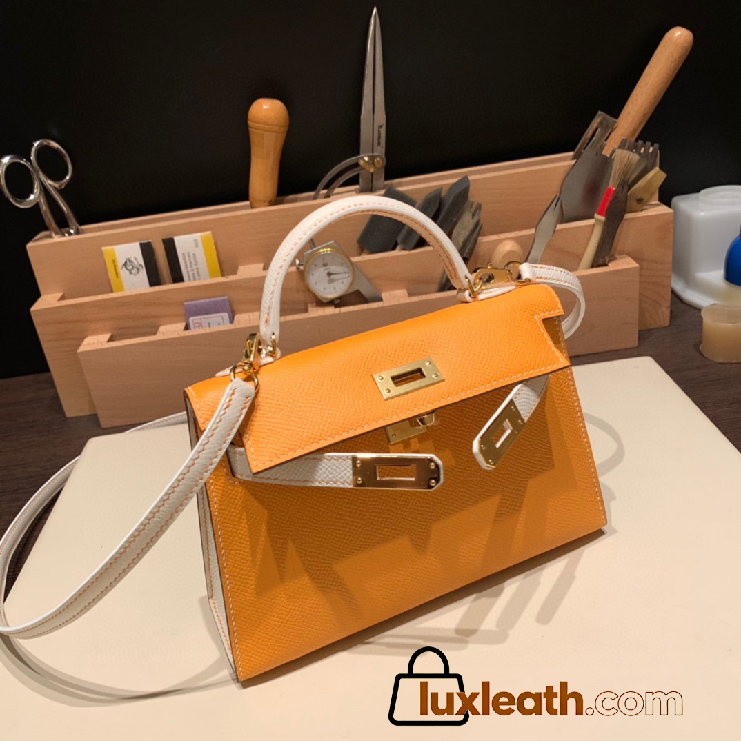 Hermes kelly20 epsom19cm 7N /Celeste Gold Hardware Full Handmade kellymini-086