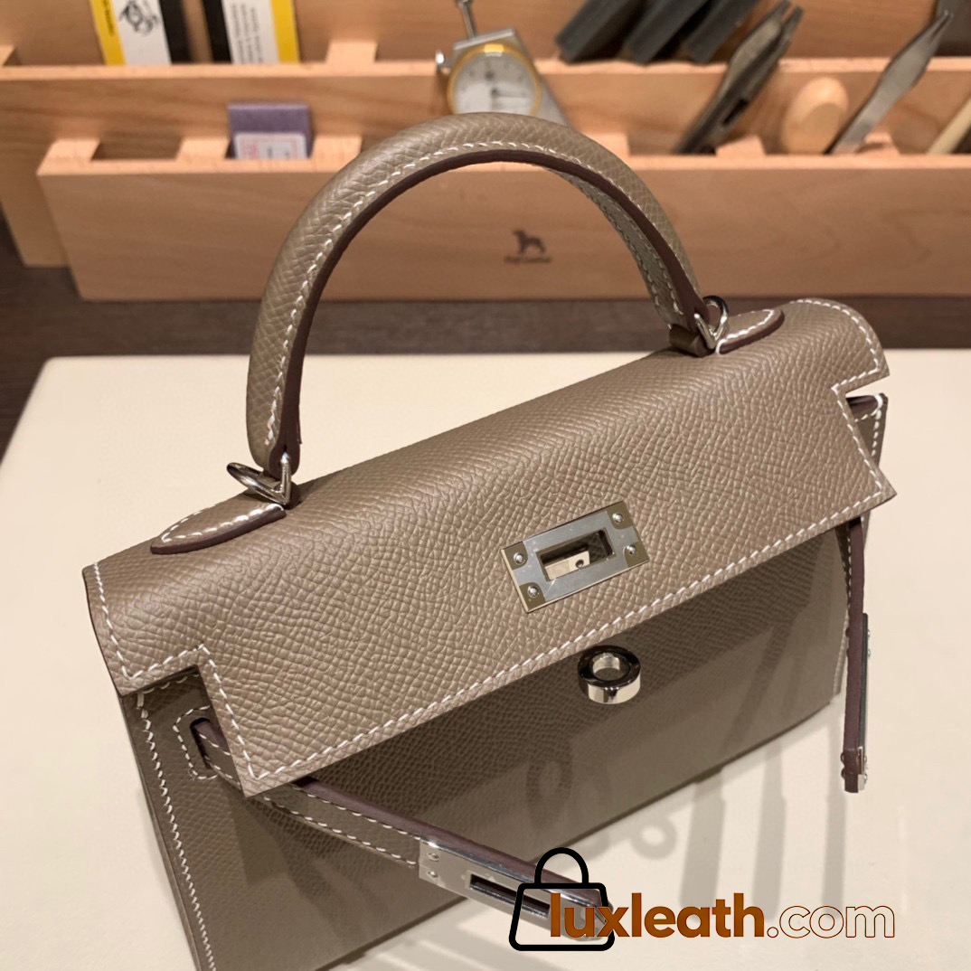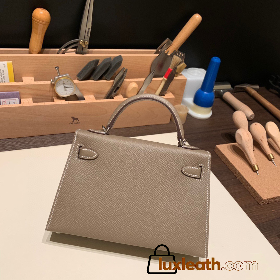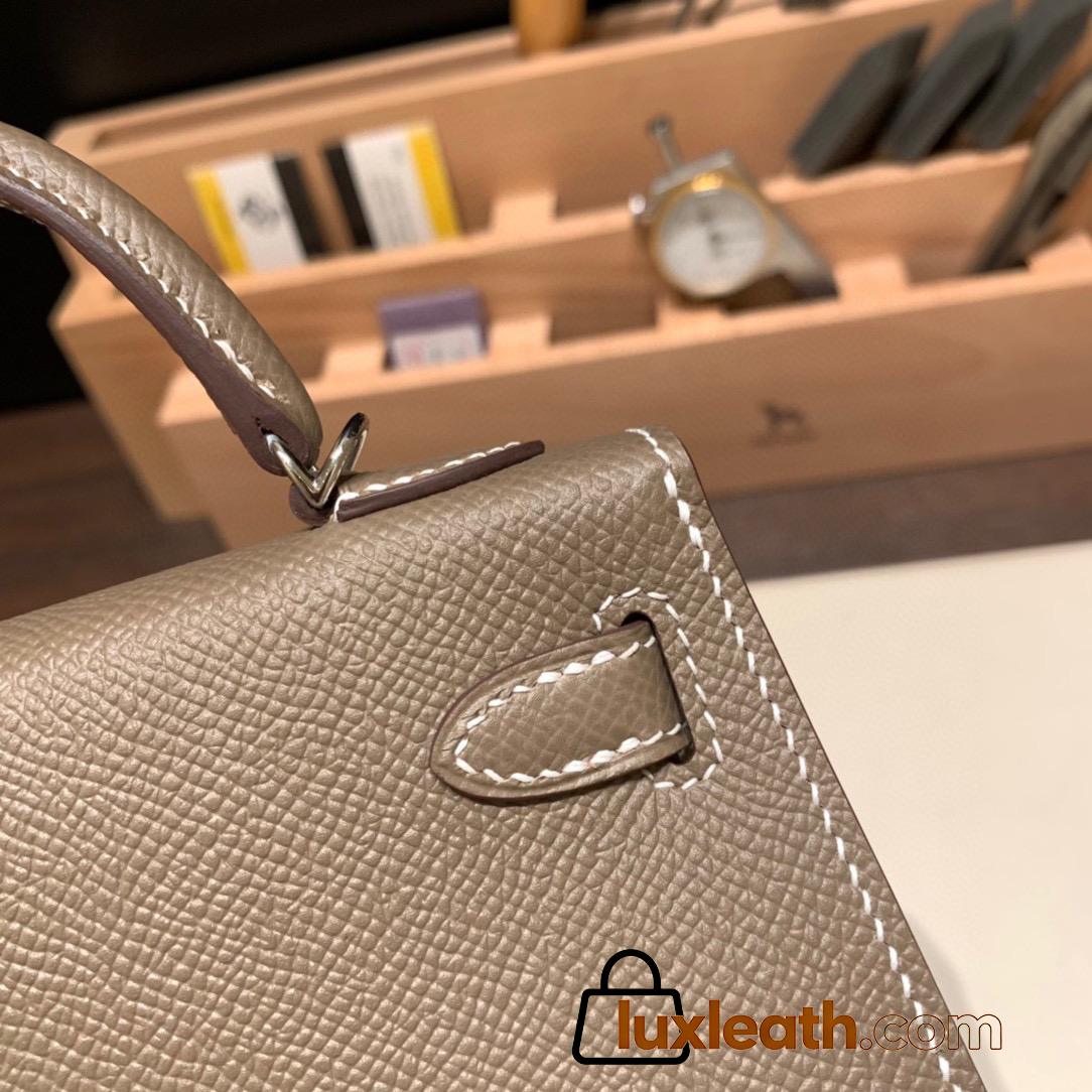 Hermes kelly20 epsom19cm 18/Étoupe Grey Gold Hardware Full Handmade kellymini-088