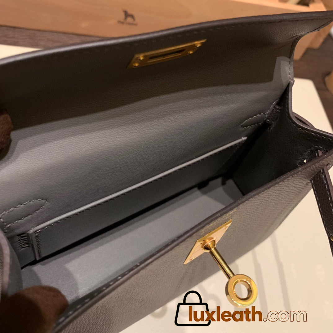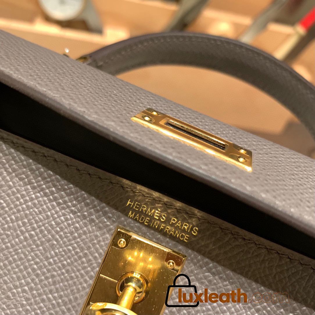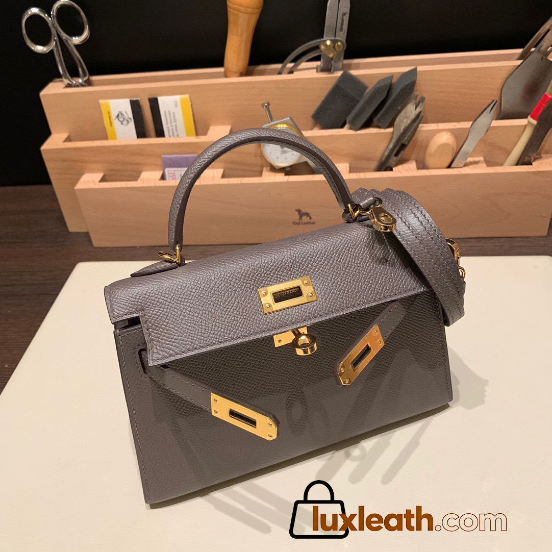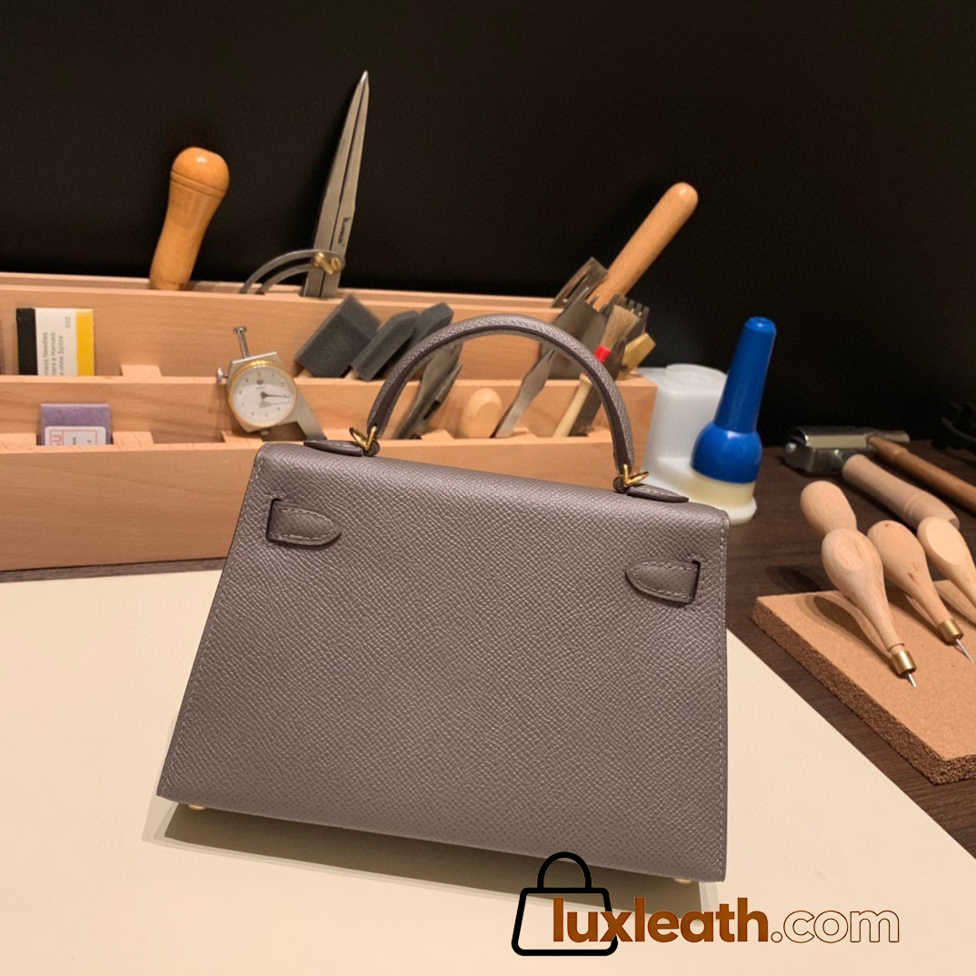 Hermes kelly20 epsom19cm Silver Hardware 18 /Étoupe Grey Silver Hardware Full Handmade kellymini-089