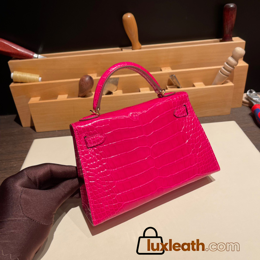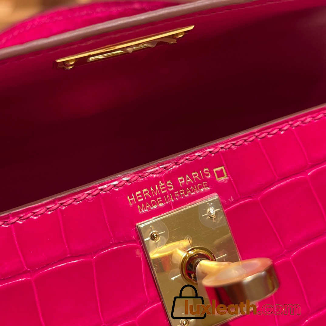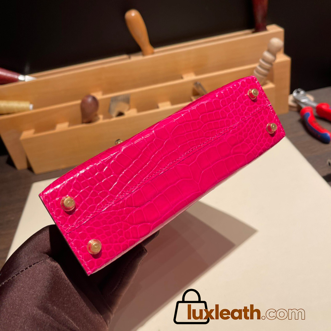 Hermes kelly20 Alligateor Crocodile 19cm 4G /Brulee Gold Hardware Full Handmade kellymini-097