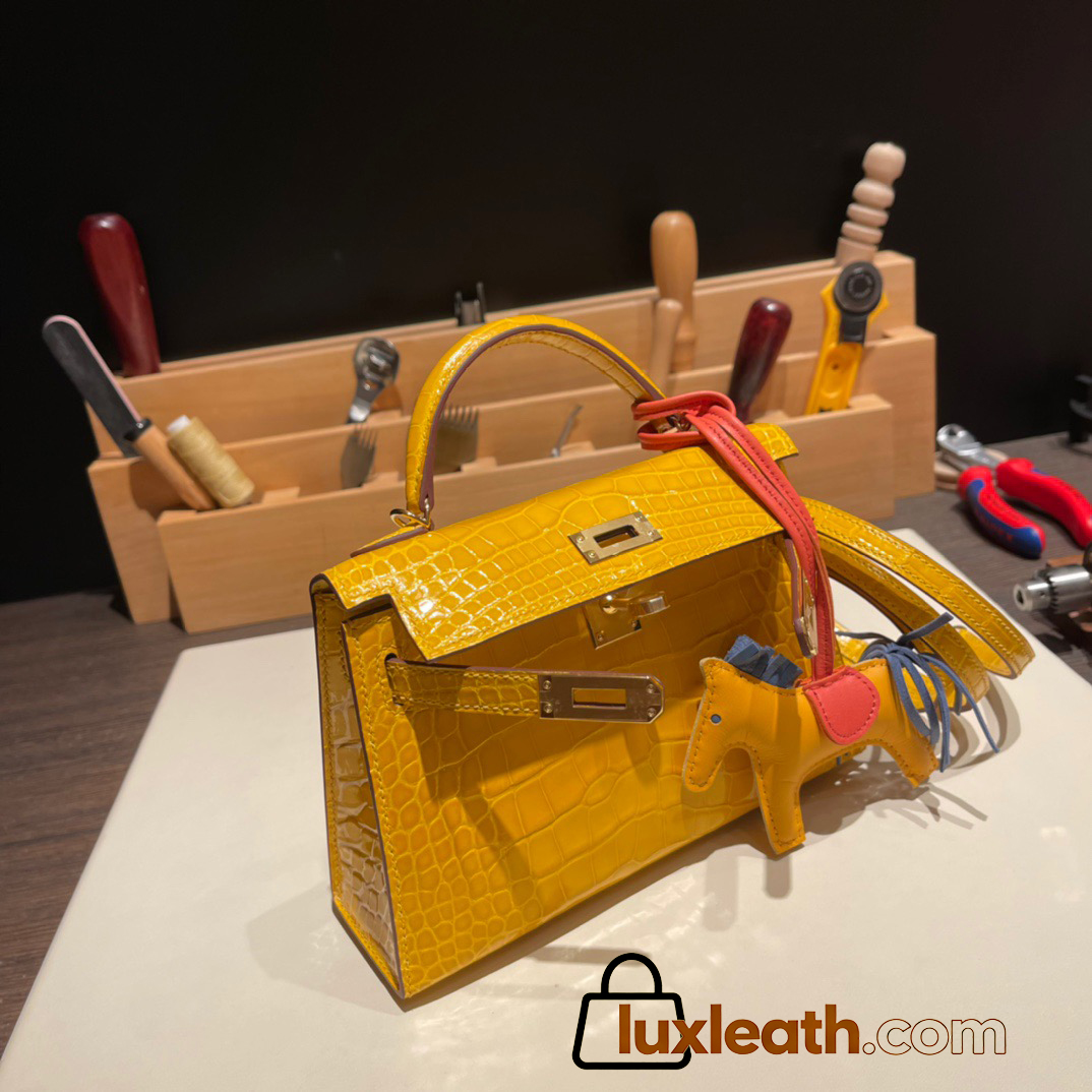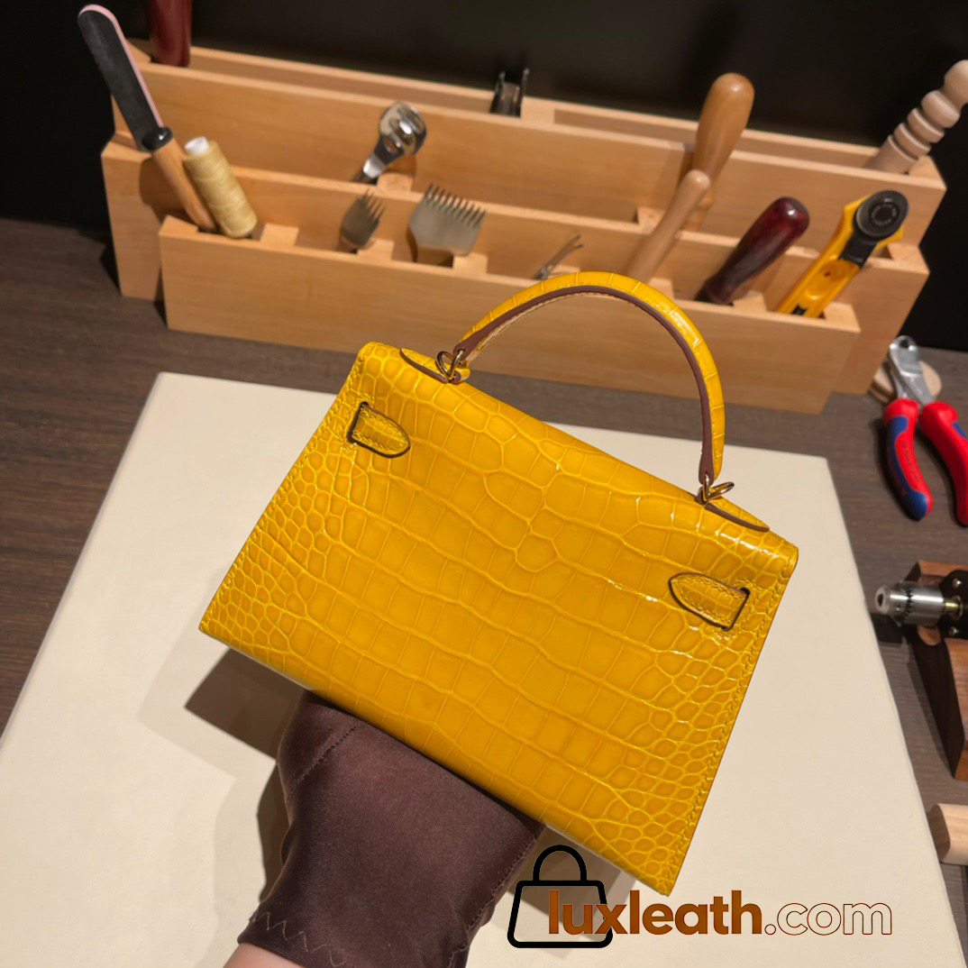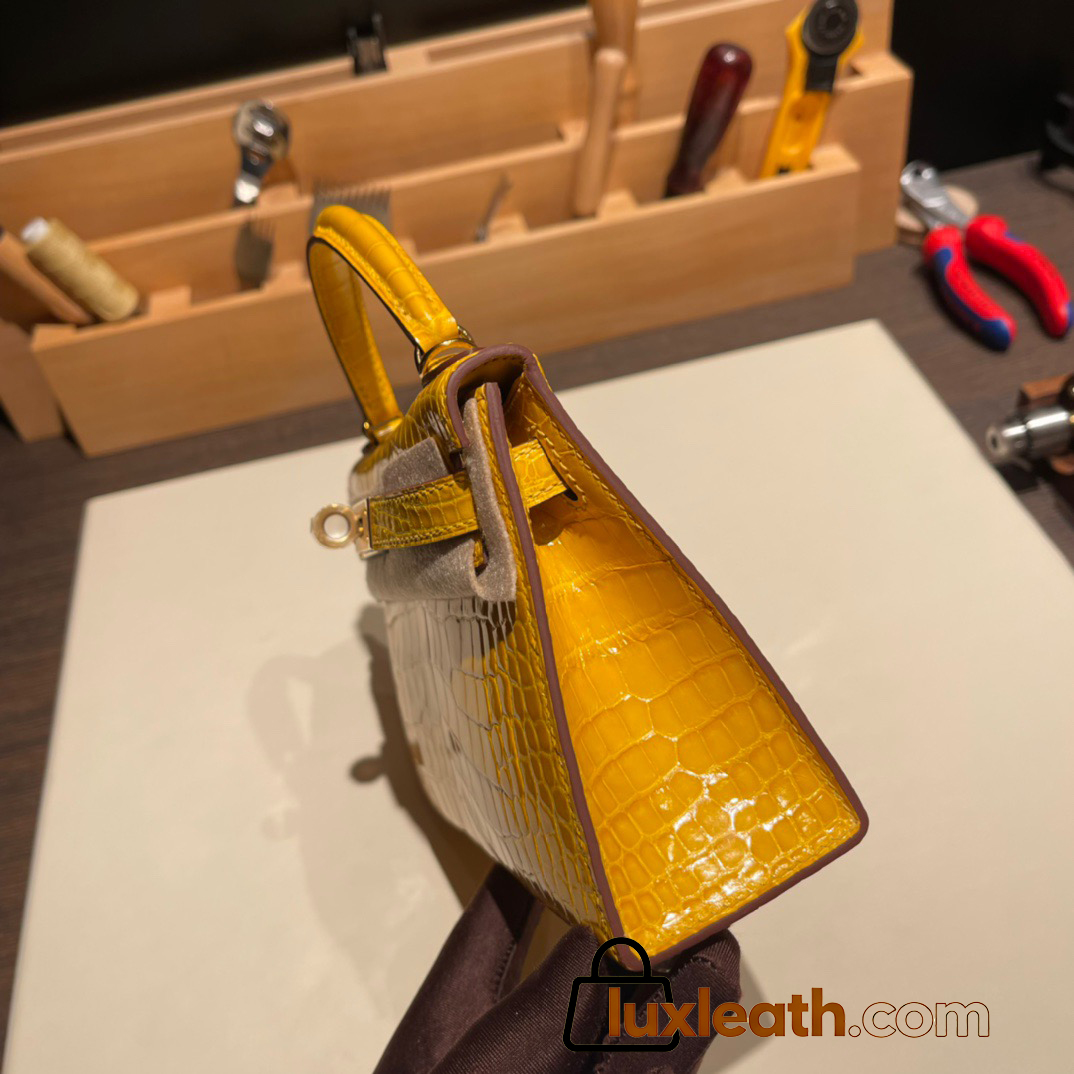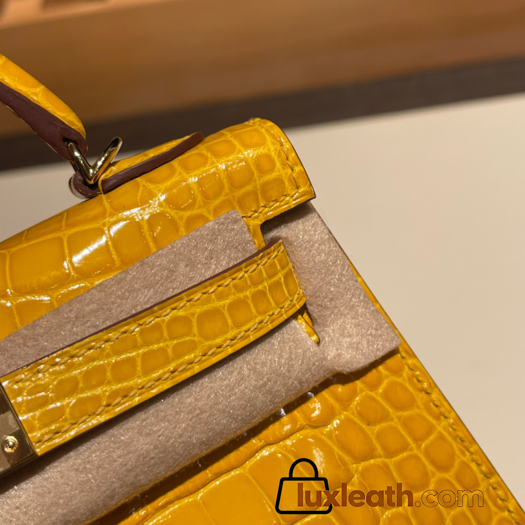 Hermes kelly20 Alligateor Crocodile 19cm J5 /Rose Scheherazade Gold Hardware Full Handmade kellymini-098