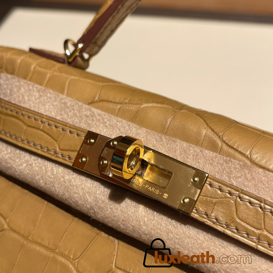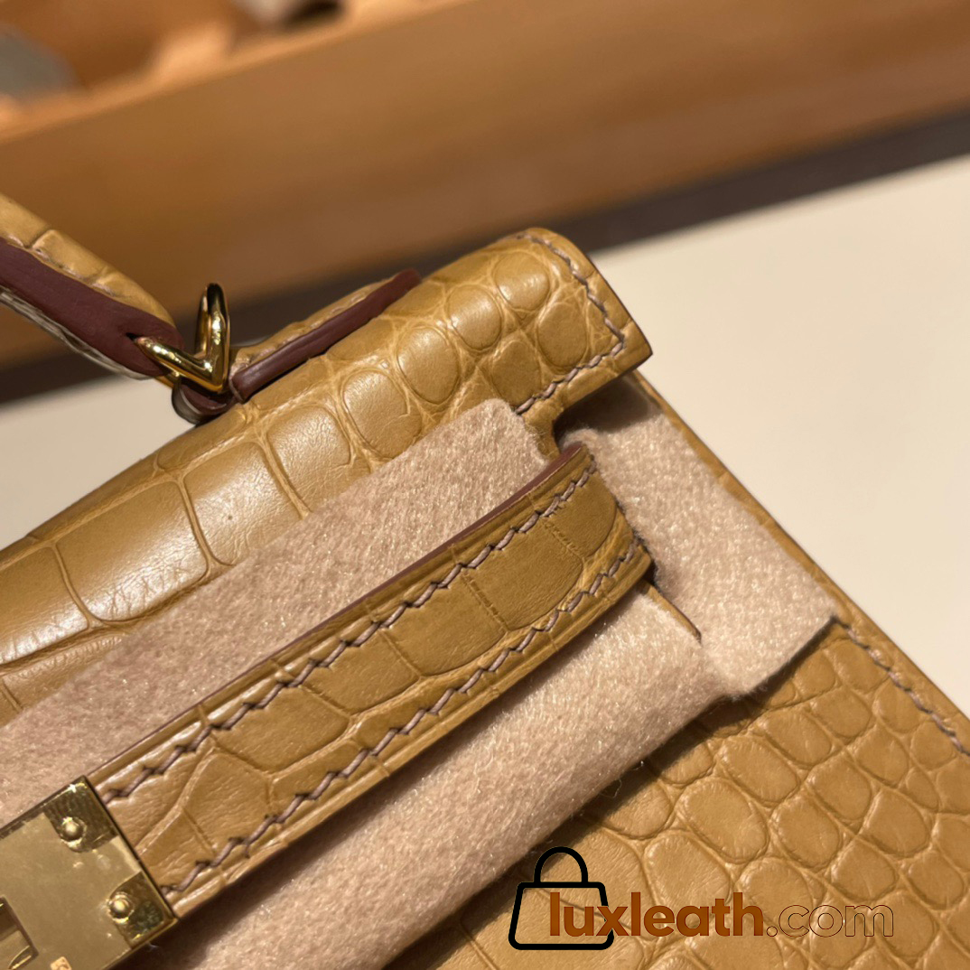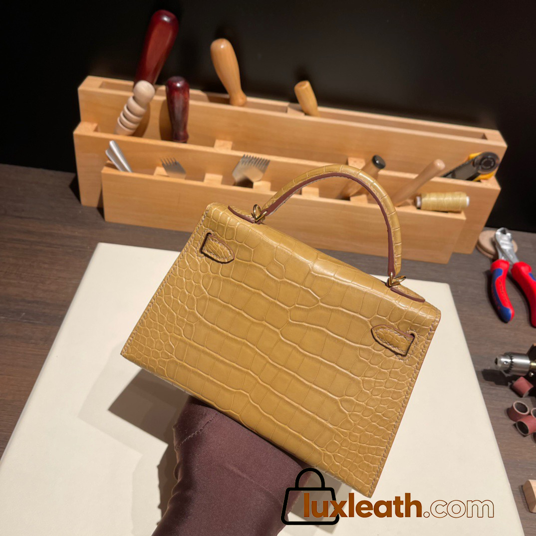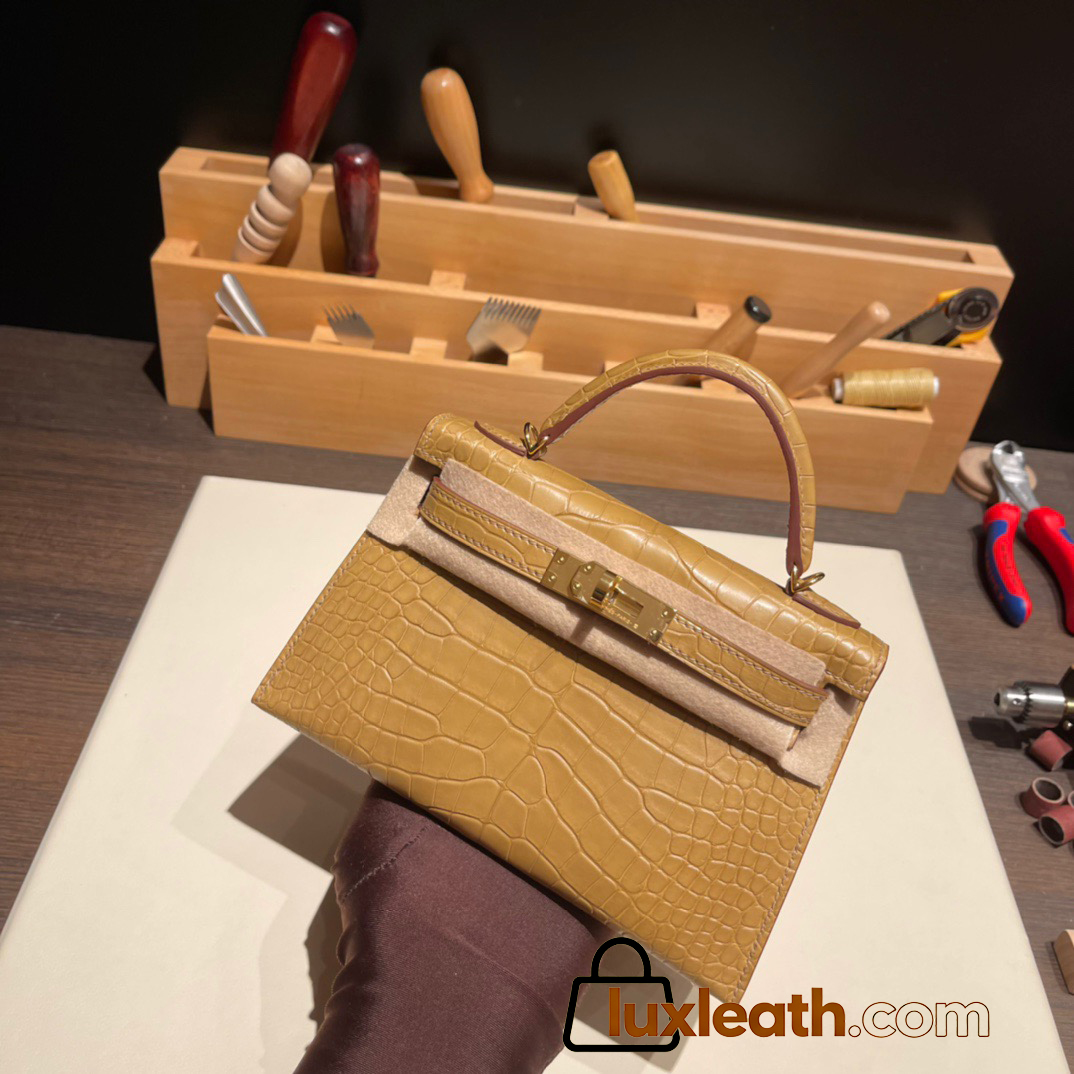 Hermes kelly20 Alligateor Crocodile 19cm 9D /Jaune Ambre Gold Hardware  Full Handmade kellymini-099