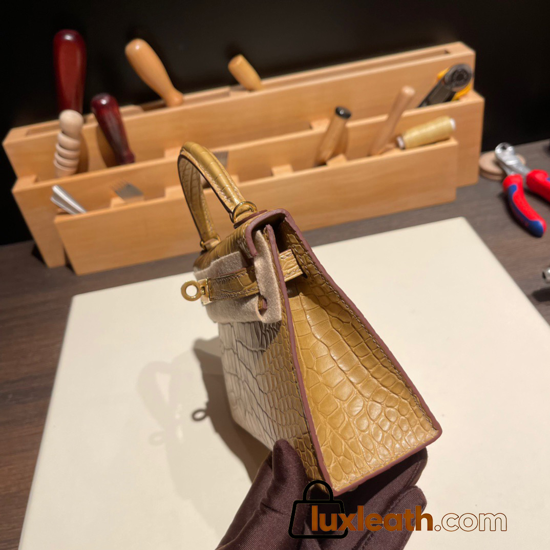 Hermes kelly20 Alligateor Crocodile 19cm 9D /Jaune Ambre Gold Hardware Full Handmade kellymini-099
