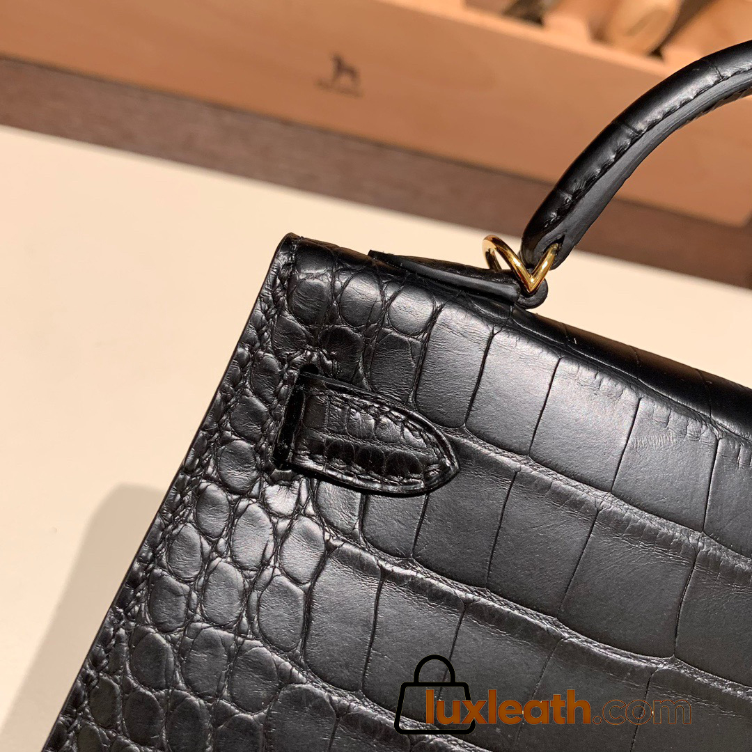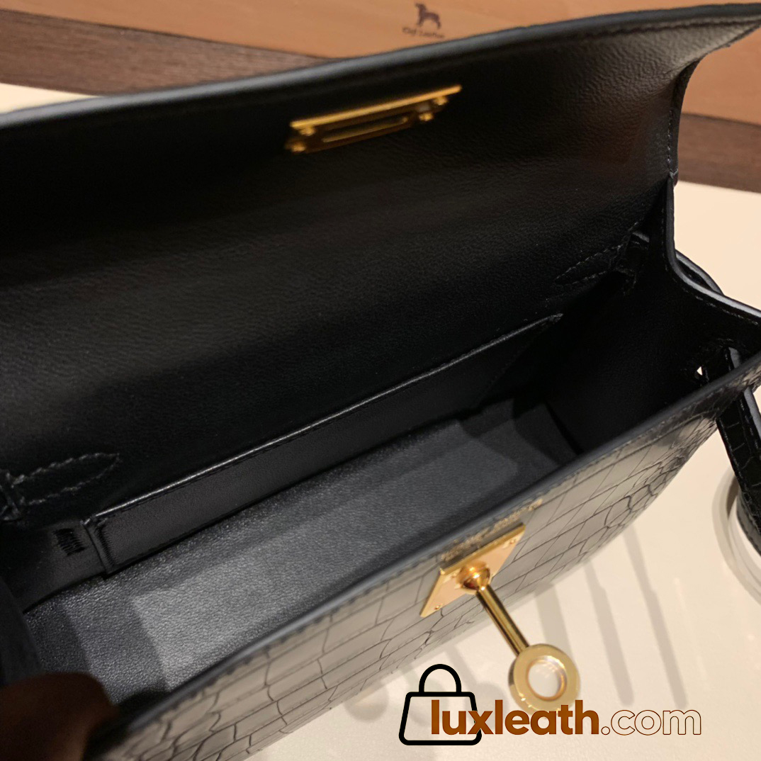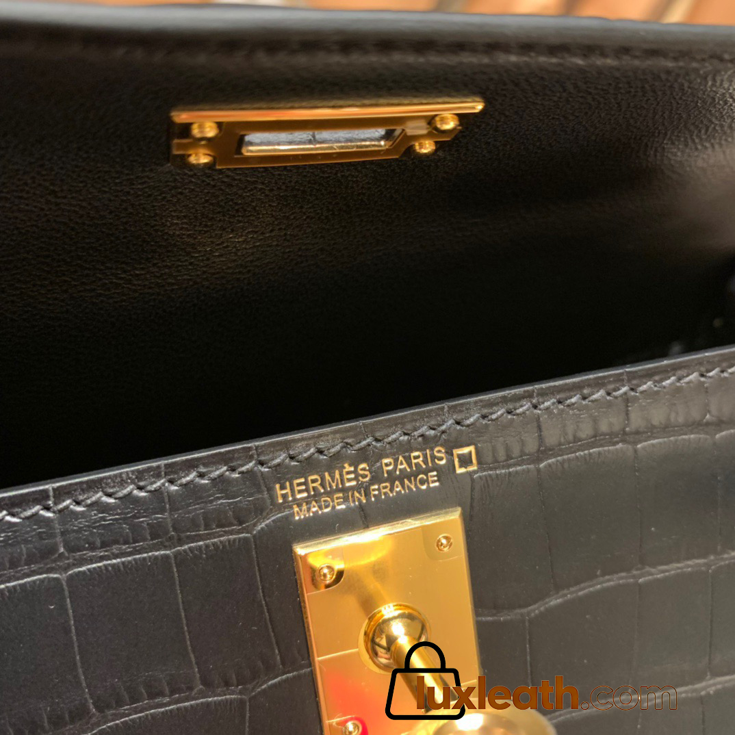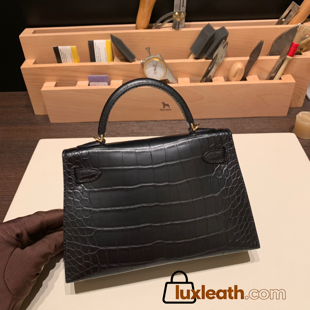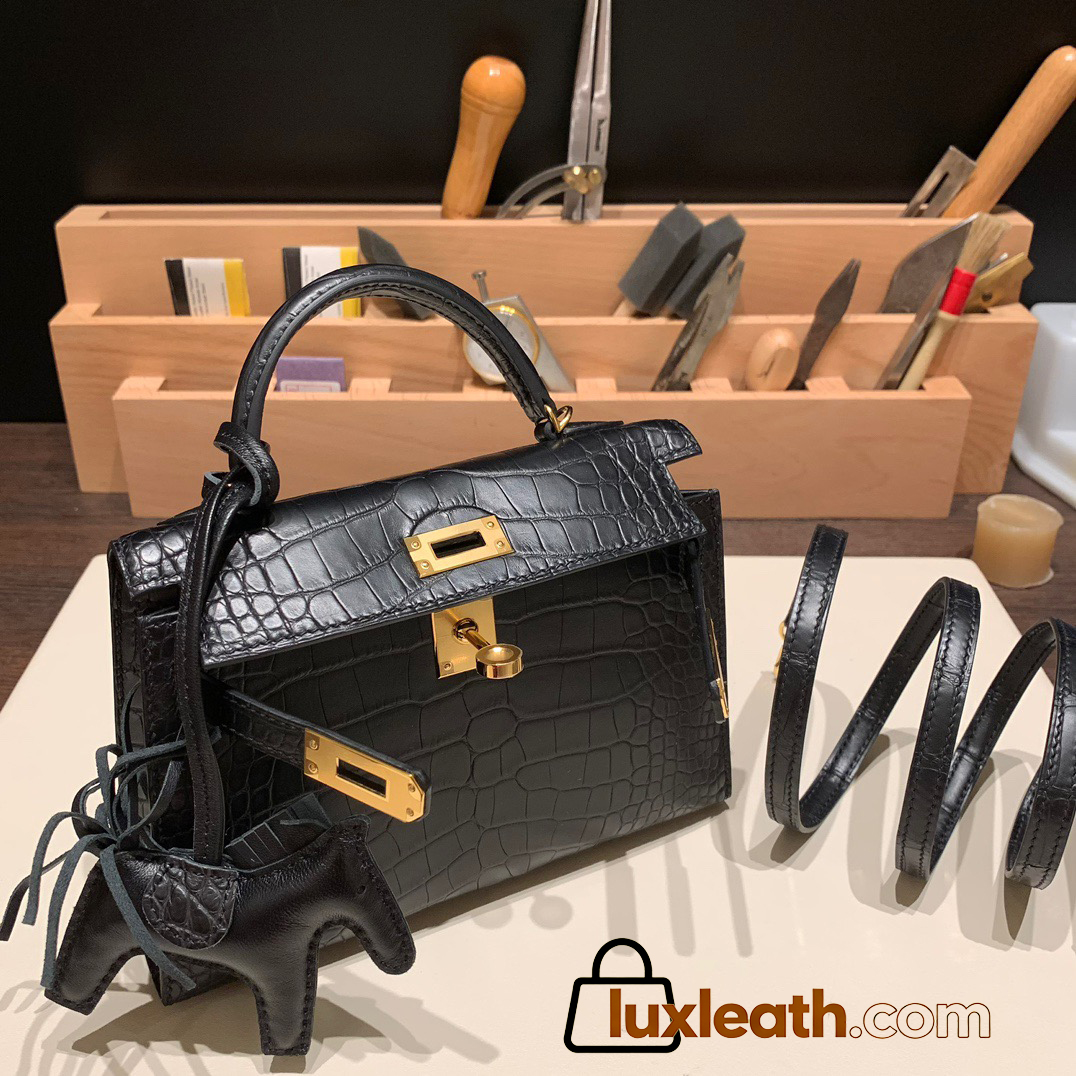 Hermes kelly20 Matte Mini Kelly Alligateor crocodile 5P /Pink Gold Hardware Full Handmade kellymini-109