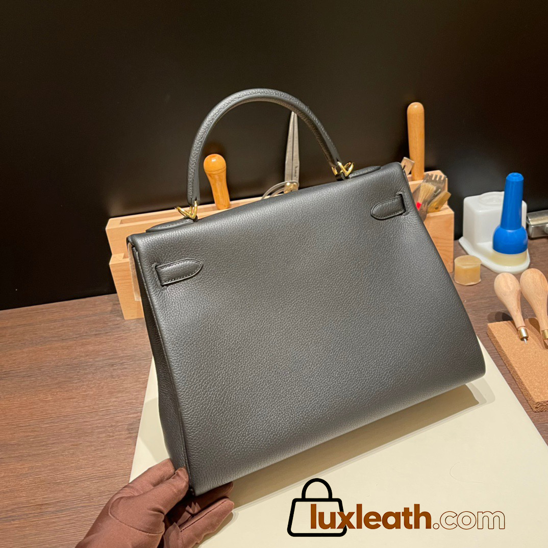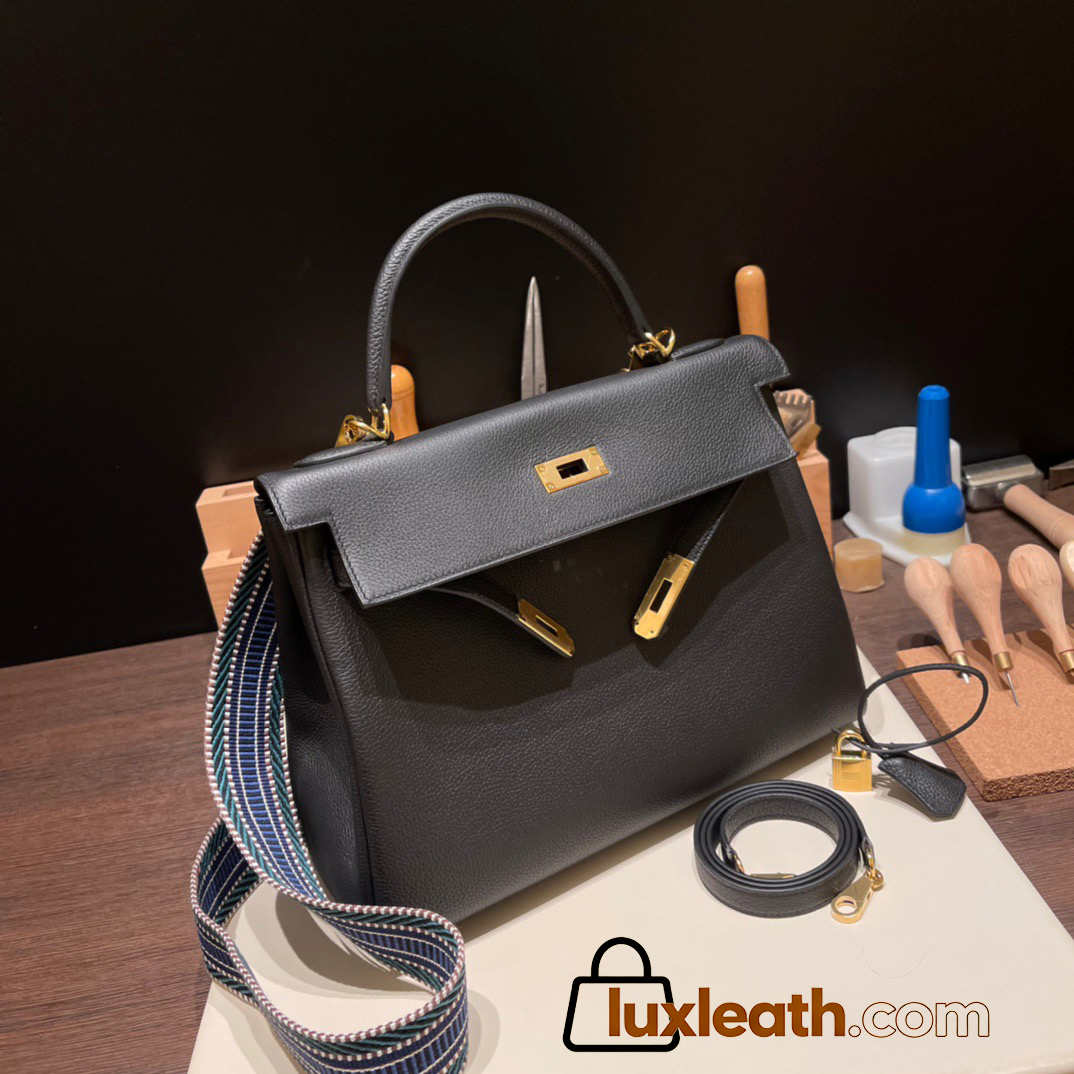 Hermes Kelly 32cm black Gold Hardware 89 /Black (Noir) Full Handmade