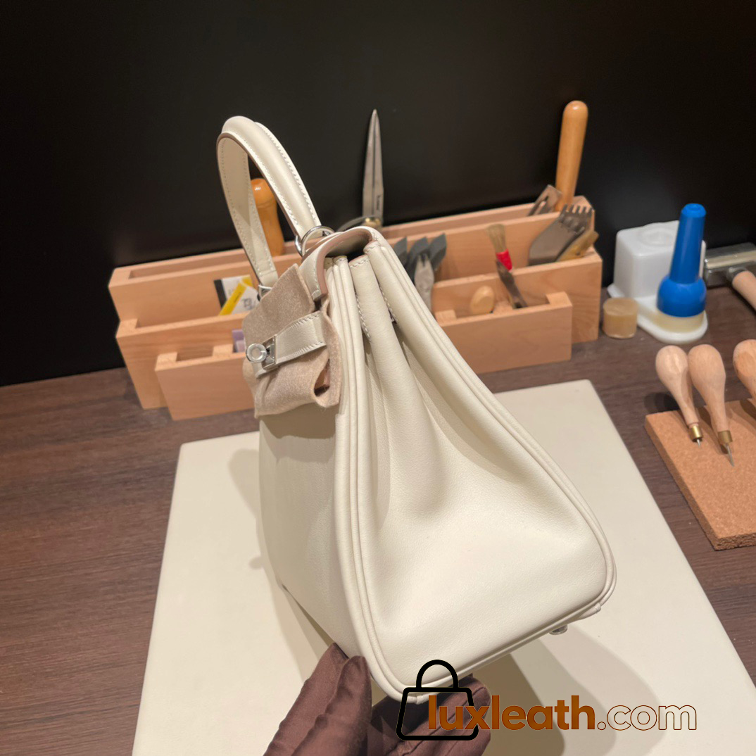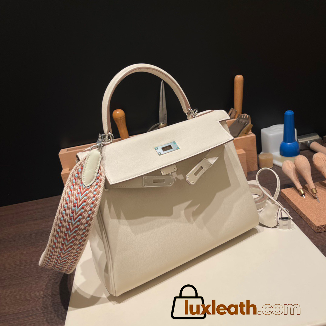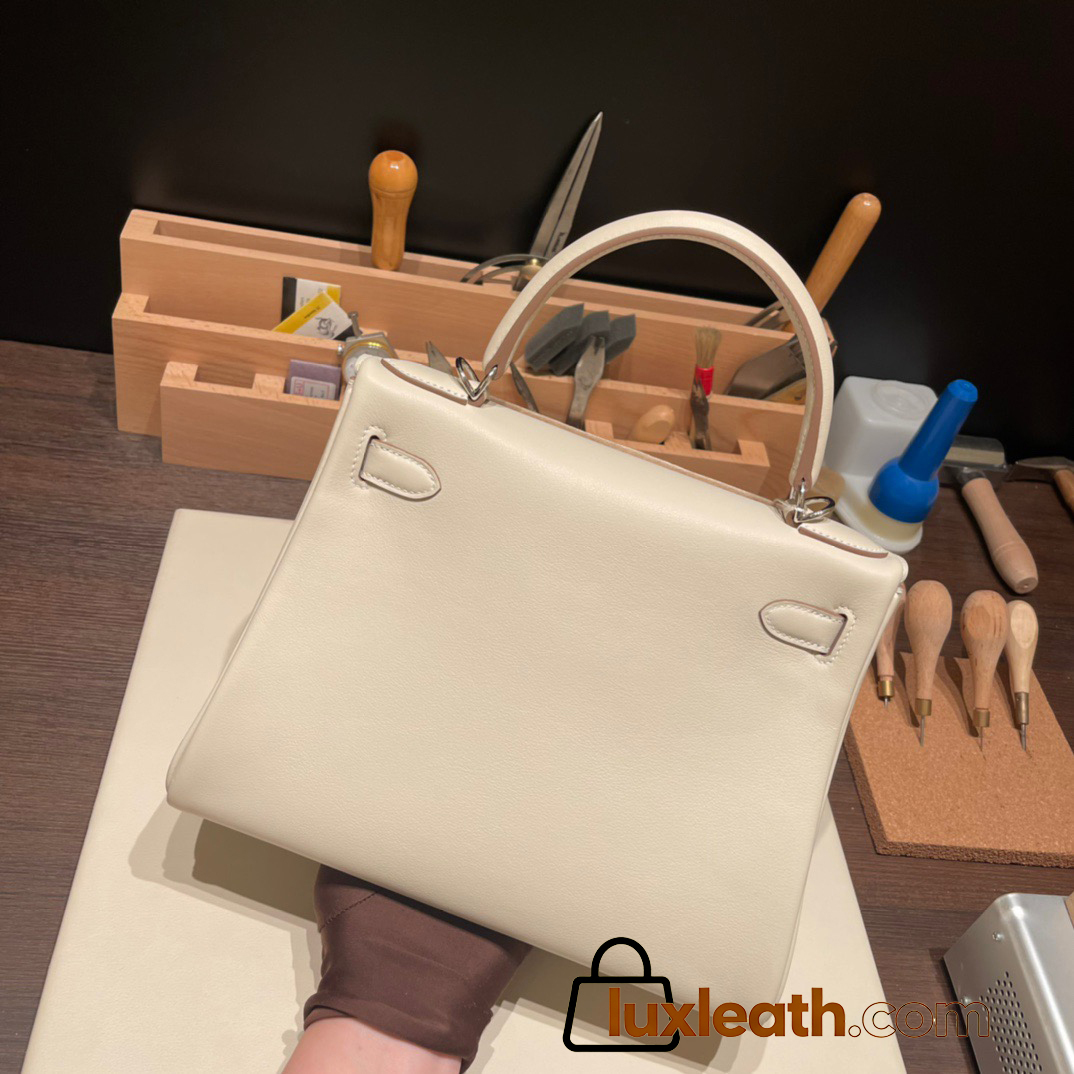 Hermes Kelly 28CM swift 10 /Craie swift SilverHardware FullHandmade