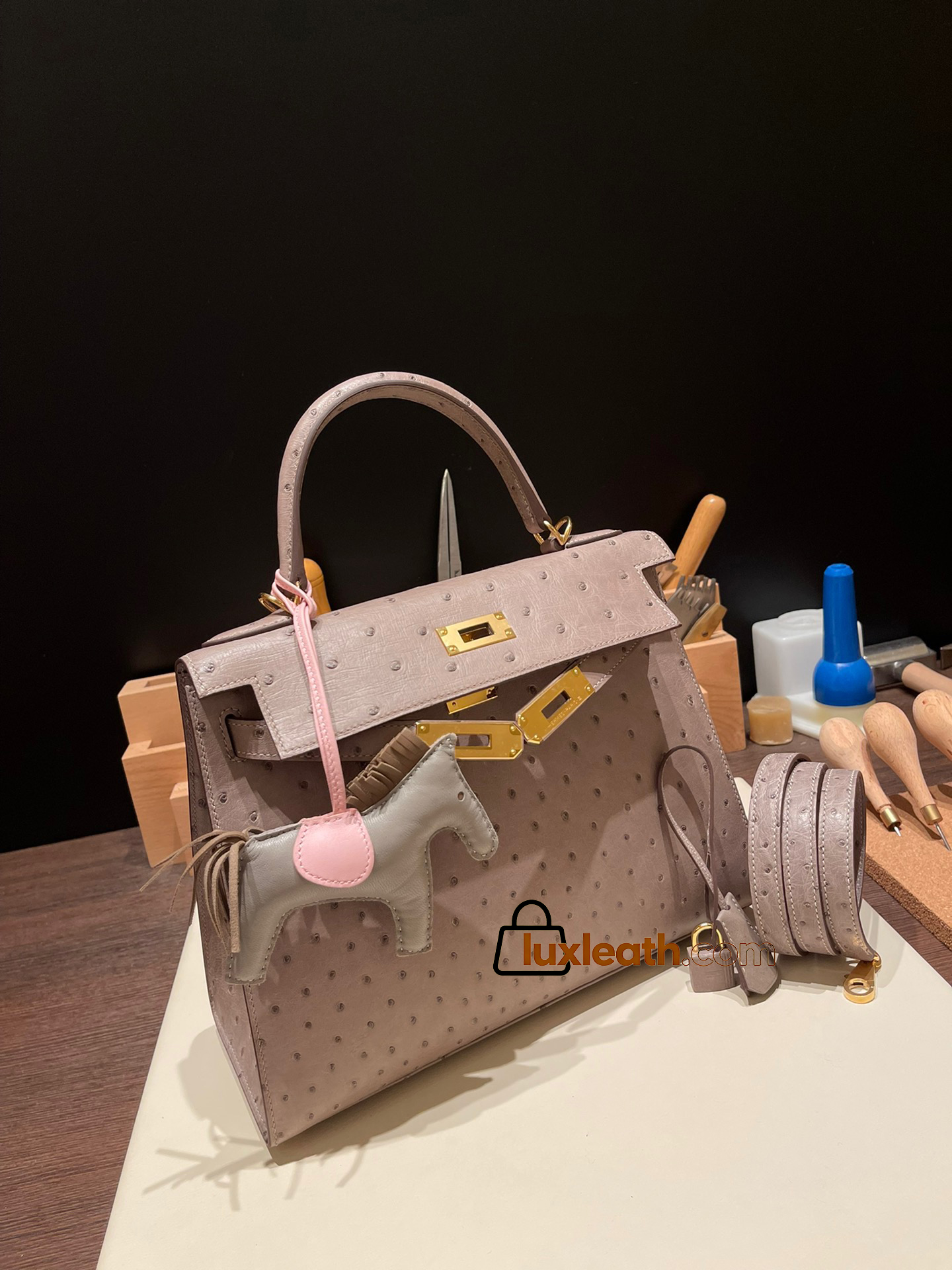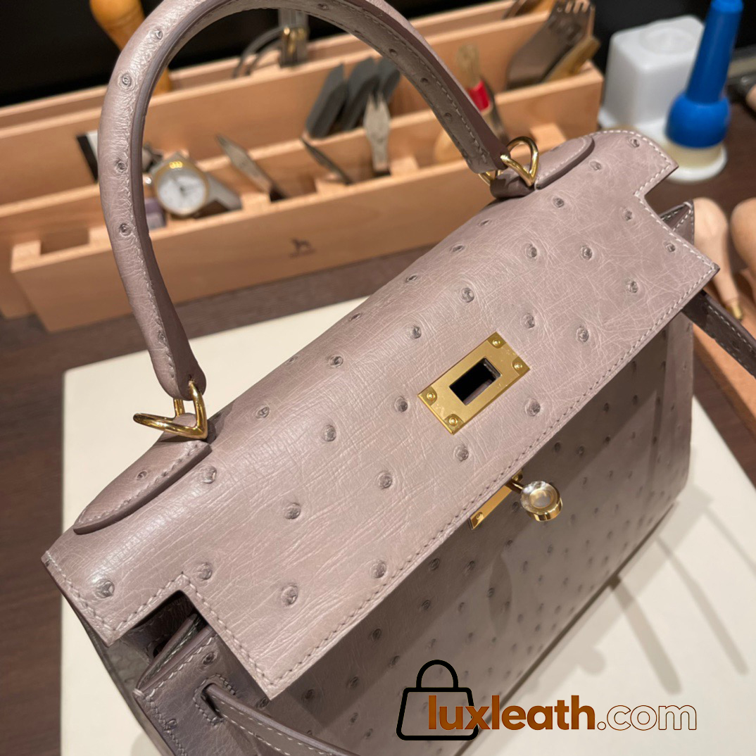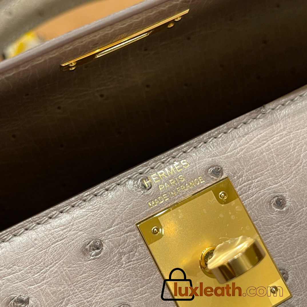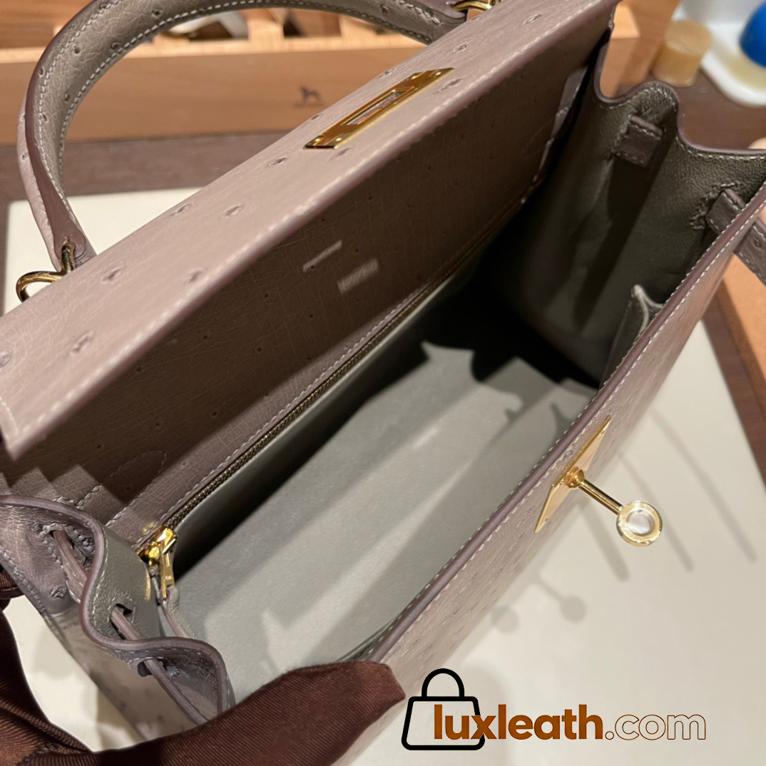 Hermes Kelly 28CM Ostrich M8/ Gris Asphalt GoldHardware FullHandmade 006