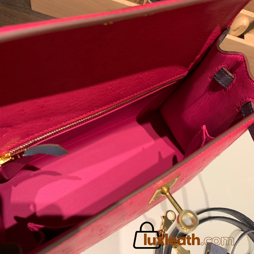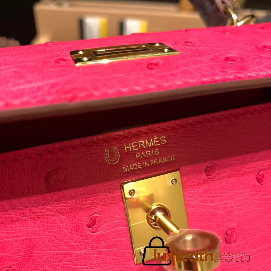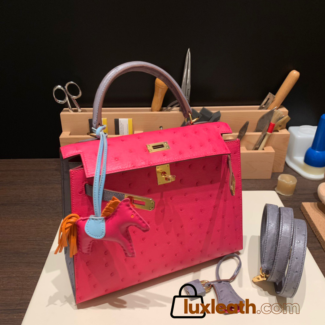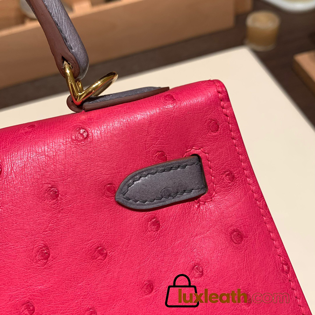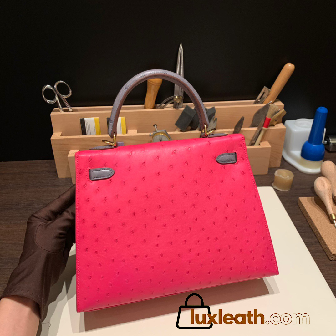 Hermes Kelly 25cm sellier Ostrich 82 /Gris Agate& 0D/Rose Mexico Gold Hardware Full Handmade 012