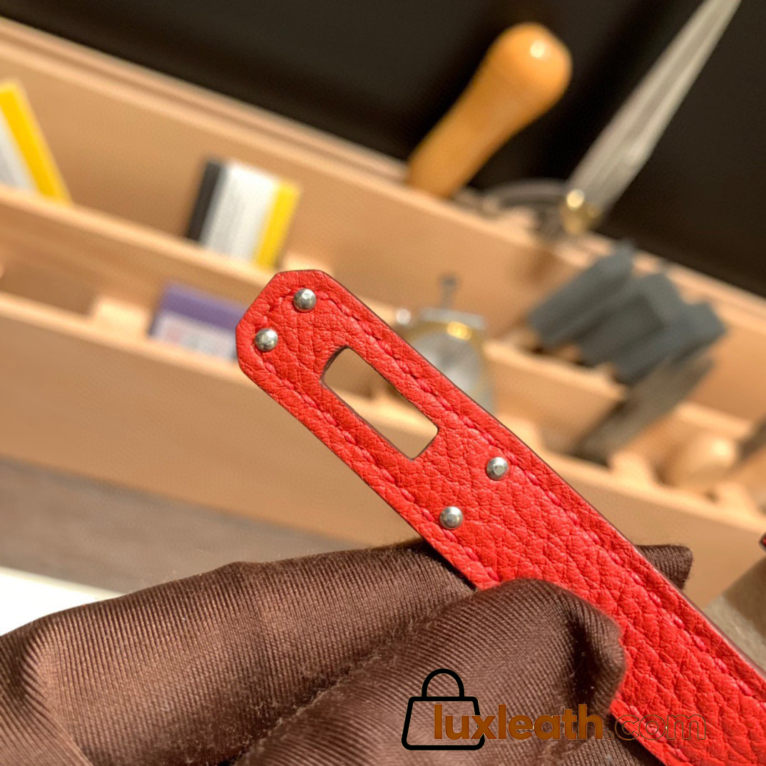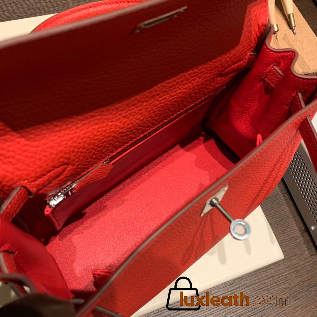 Hermes Kelly 25cm togo S3/Rouge Cœur Silver Hardware Full Handmade 039