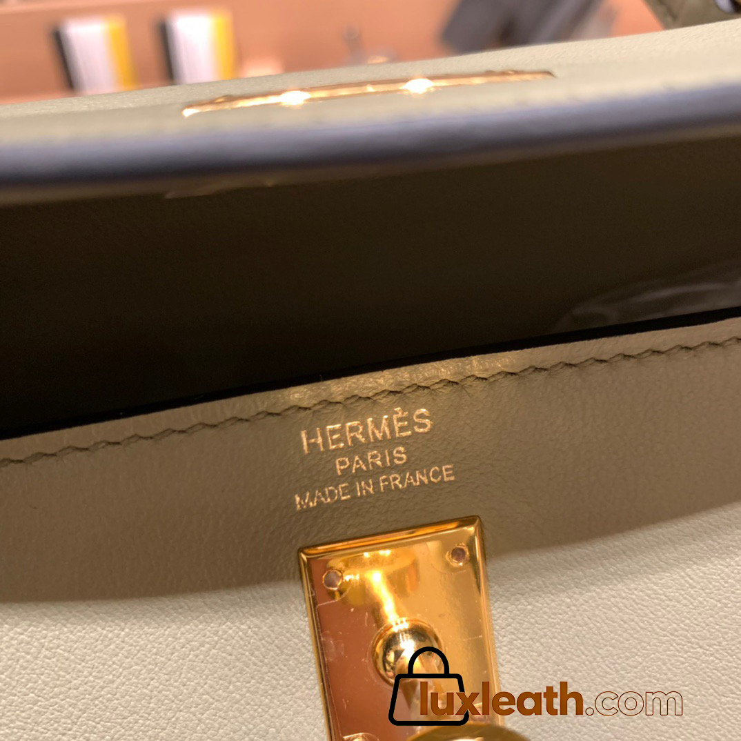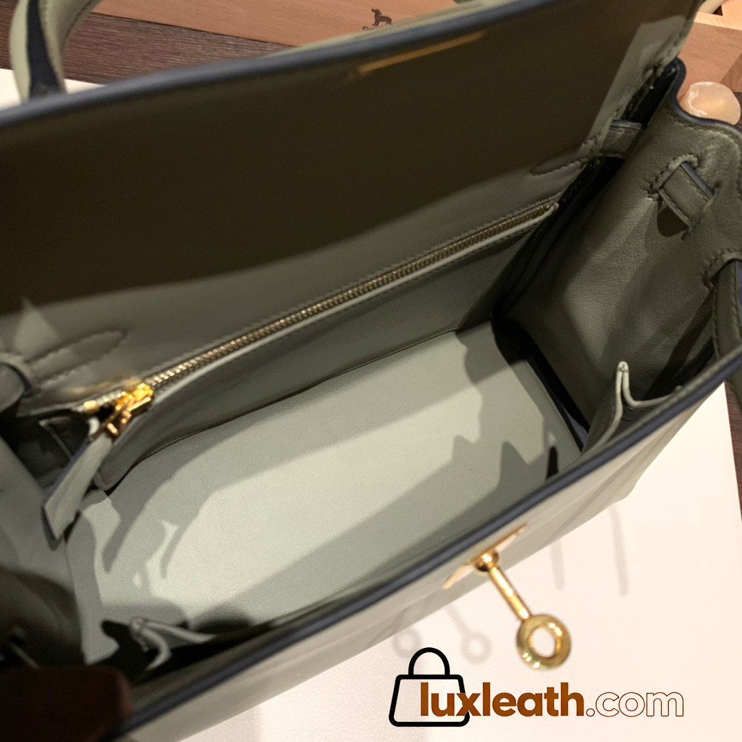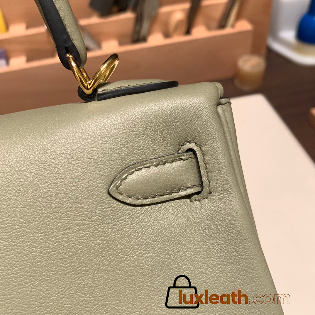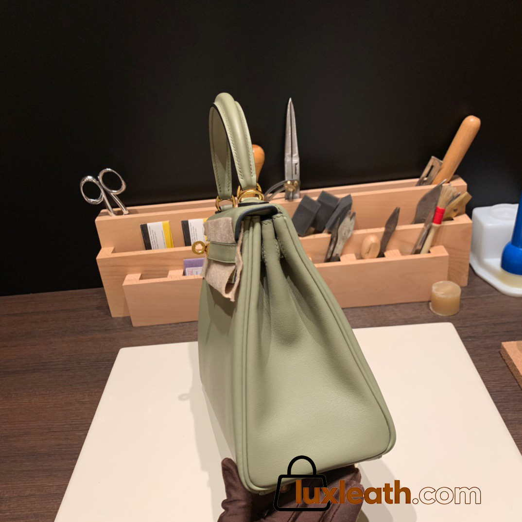 Hermes Kelly 25cm swift Q1 /Sauge Gold Hardware Full Handmade 048